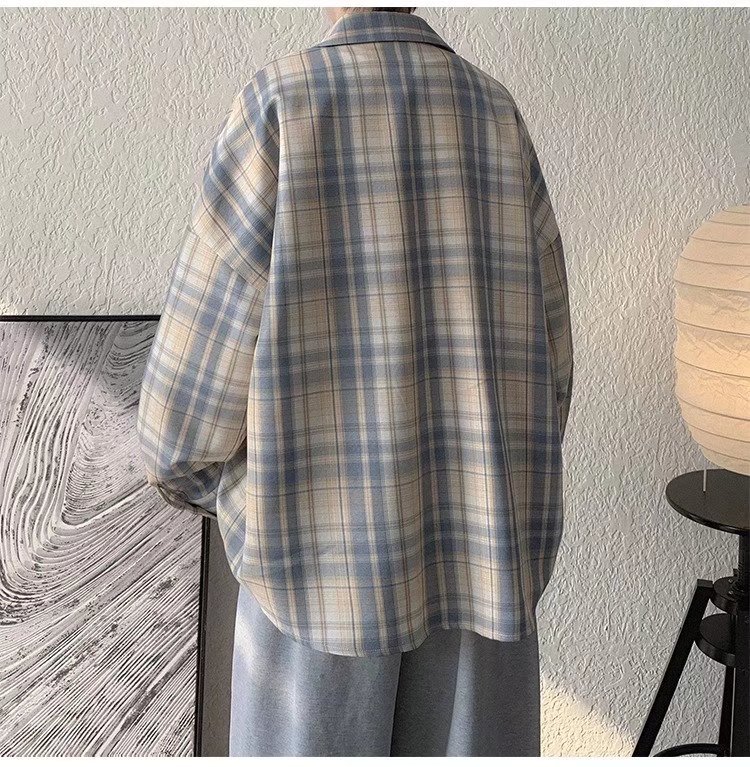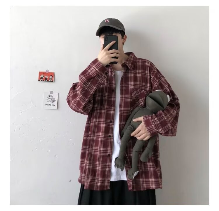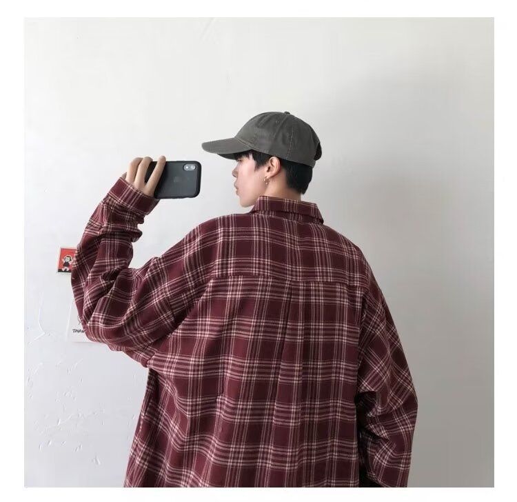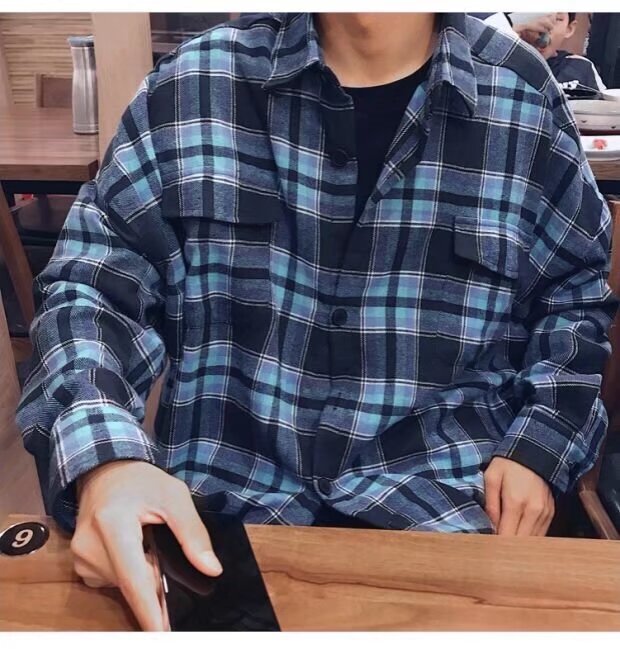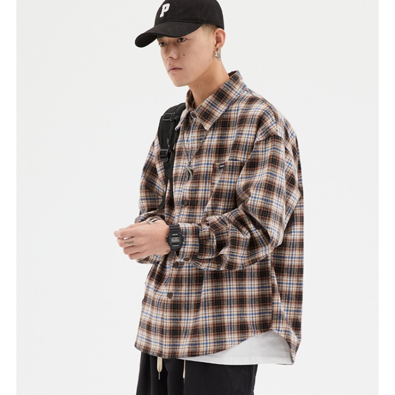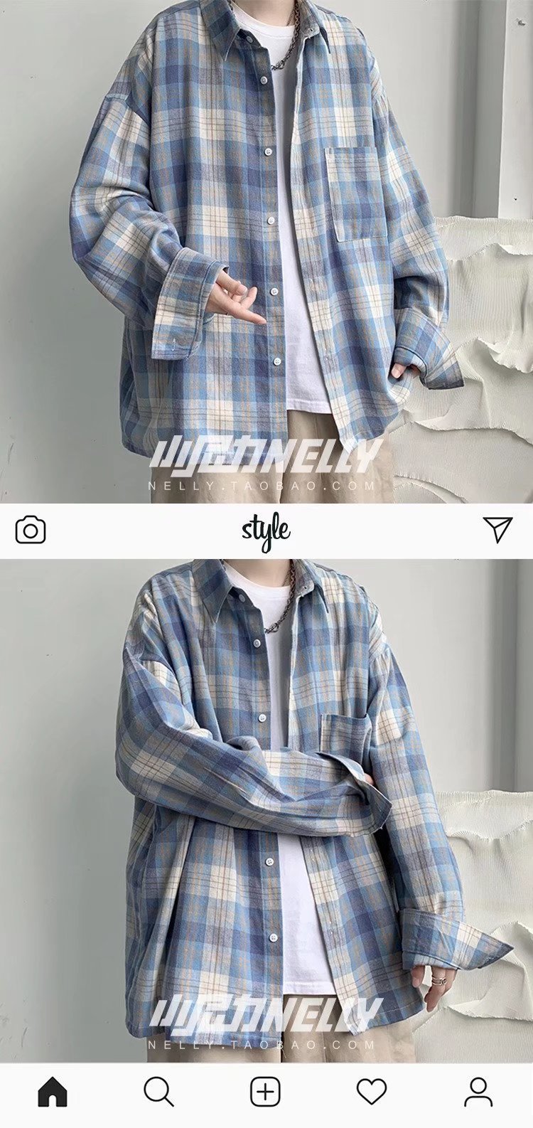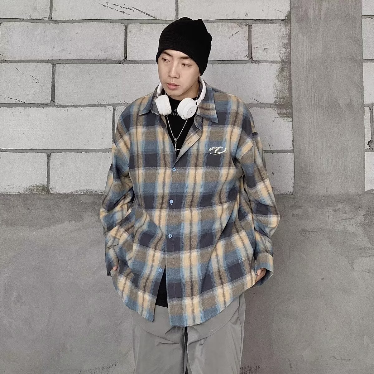 미국 봄, 가을 일본식 긴팔 체크 무늬 셔츠 남성용 한국 스타일 트렌디 인터넷 연예인 캐주얼 셔츠 재킷스토어 가기