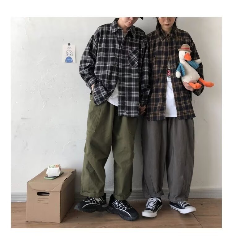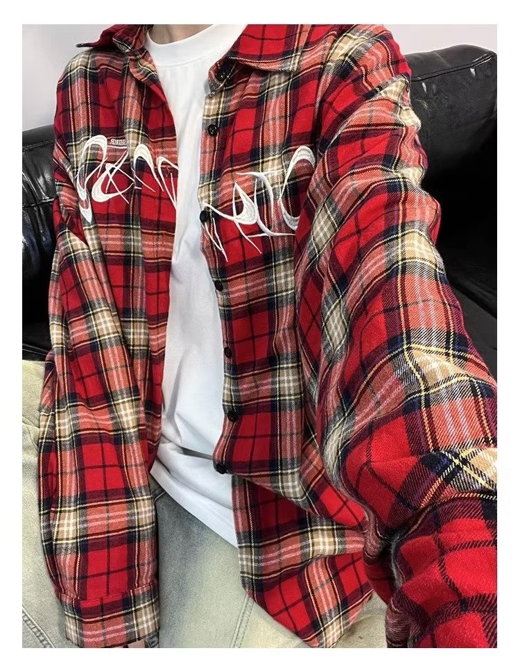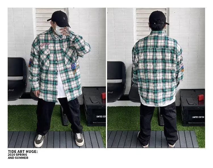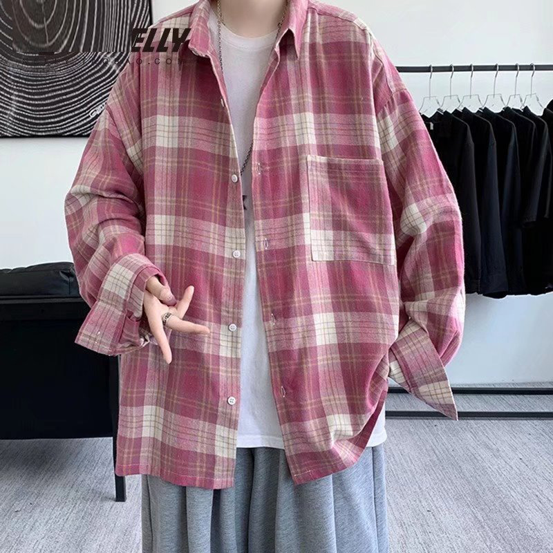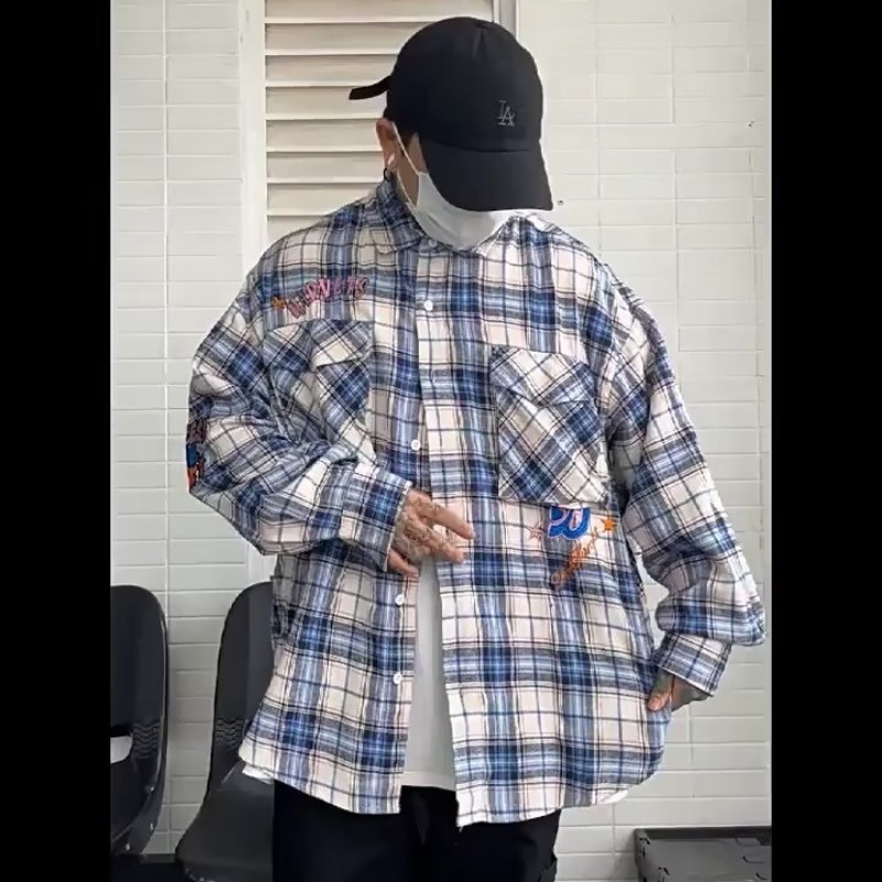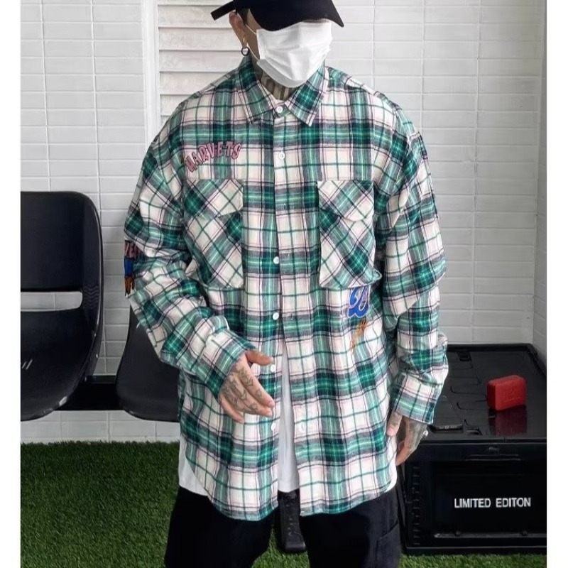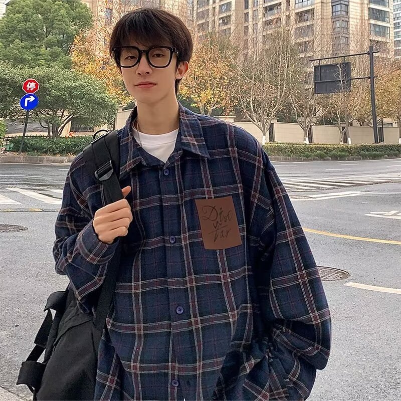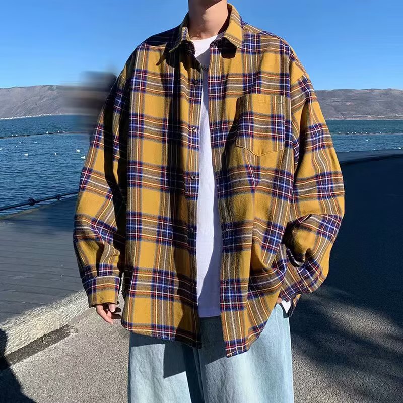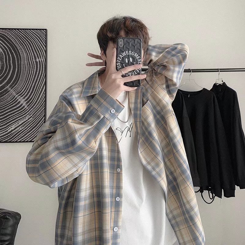 미국 봄, 가을 일본식 긴팔 체크 무늬 셔츠 남성용 한국 스타일 트렌디 인터넷 연예인 캐주얼 셔츠 재킷스토어 가기