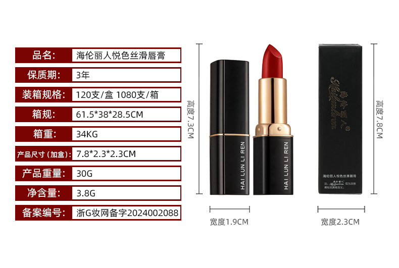 헬렌 아름다움 작은 검은 튜브 립스틱 벨벳 매트 매트 컬러 중국 브랜드 립스틱 메이크업 도매 세대
