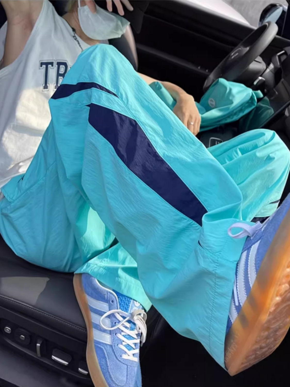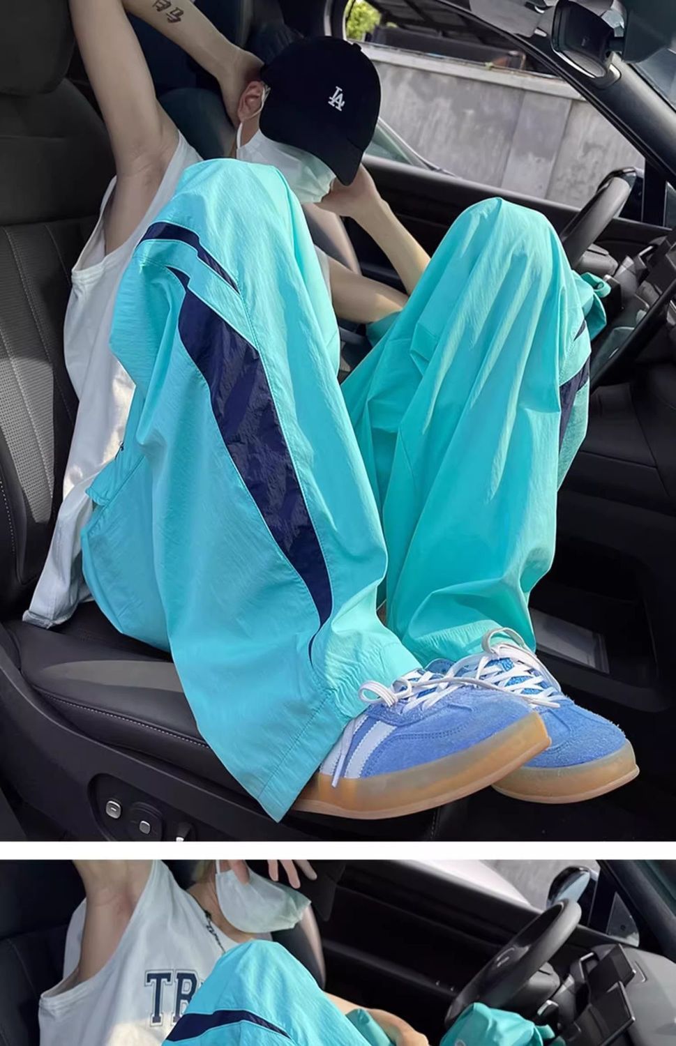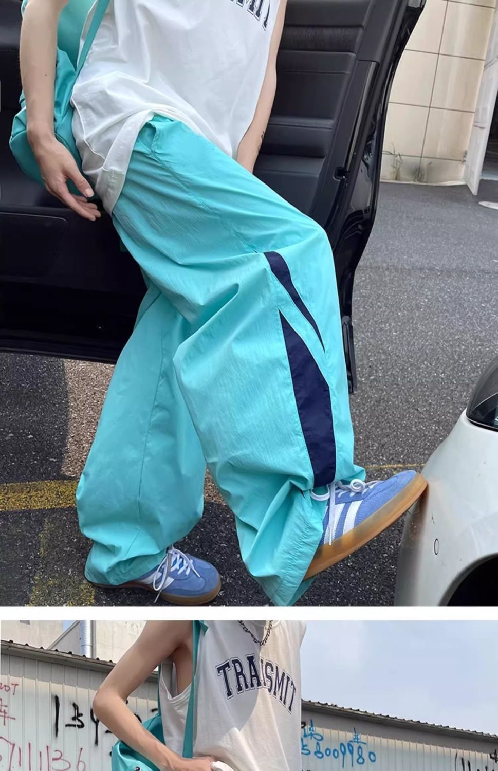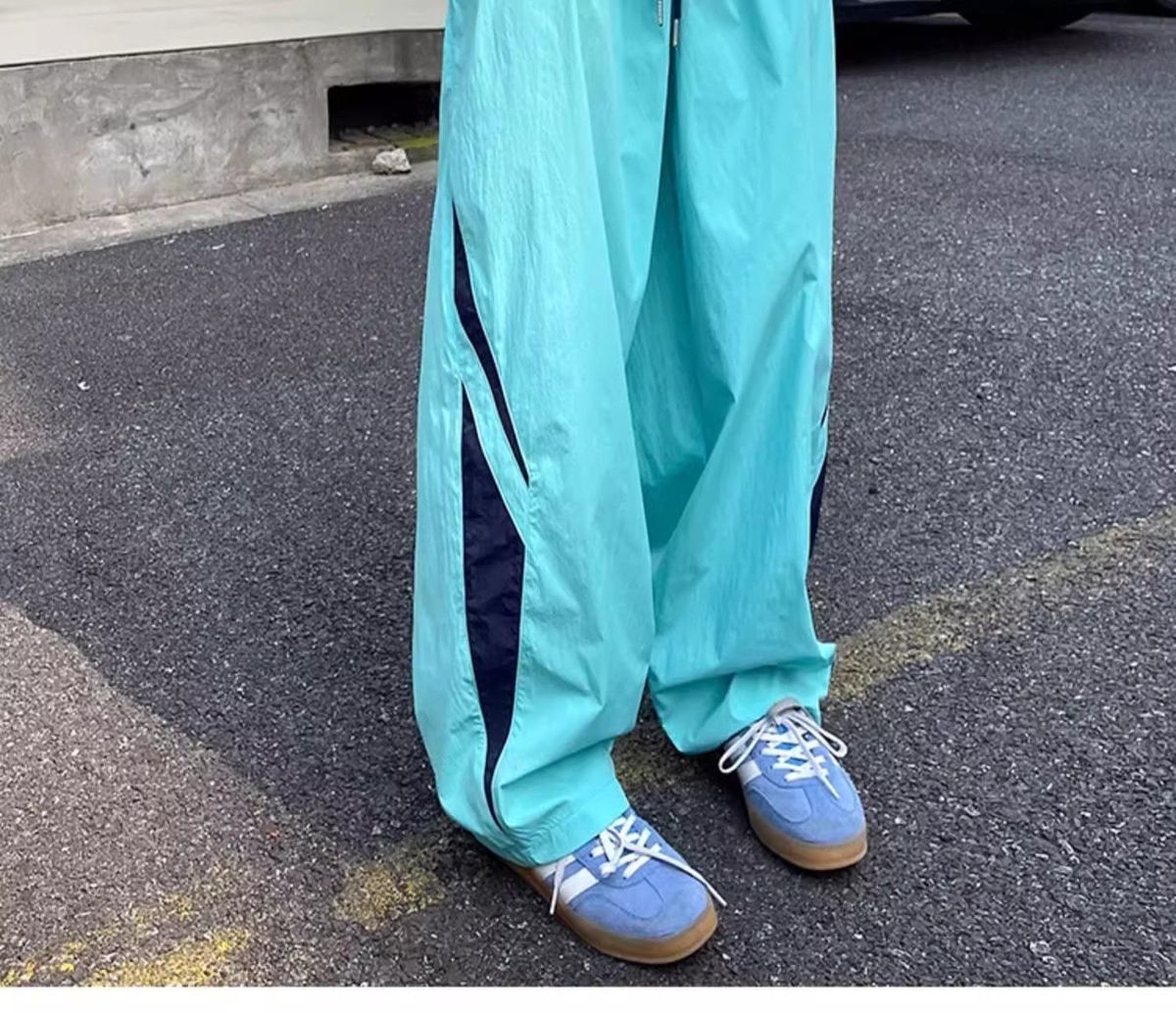 기능성 바람 대비 아이스 실크 바지 여성 여름 미국 캐주얼 느슨한 충전 스포츠 바지 학생 착륙 낙하산 바지스토어 가기