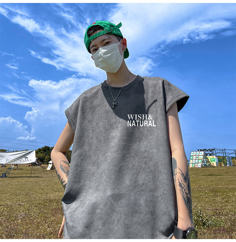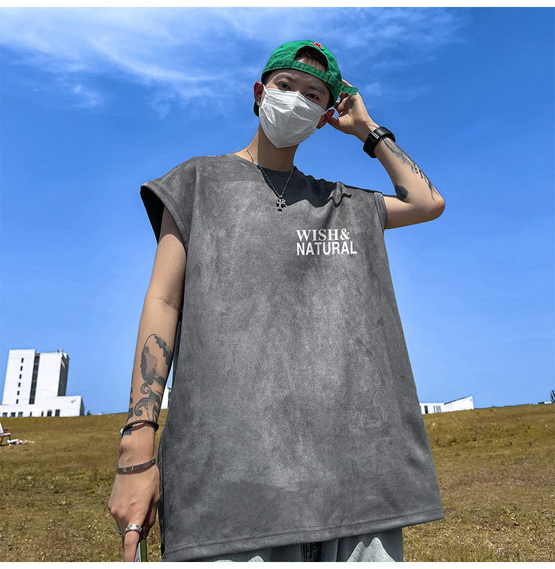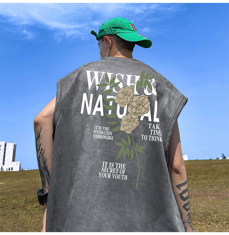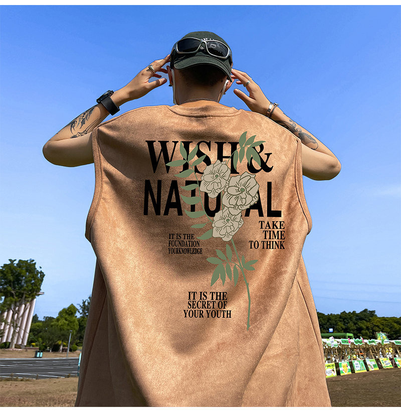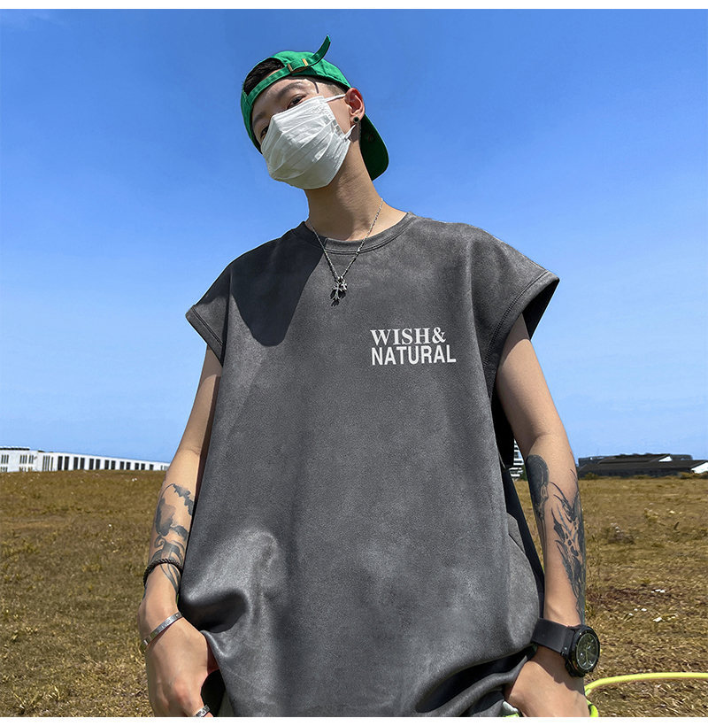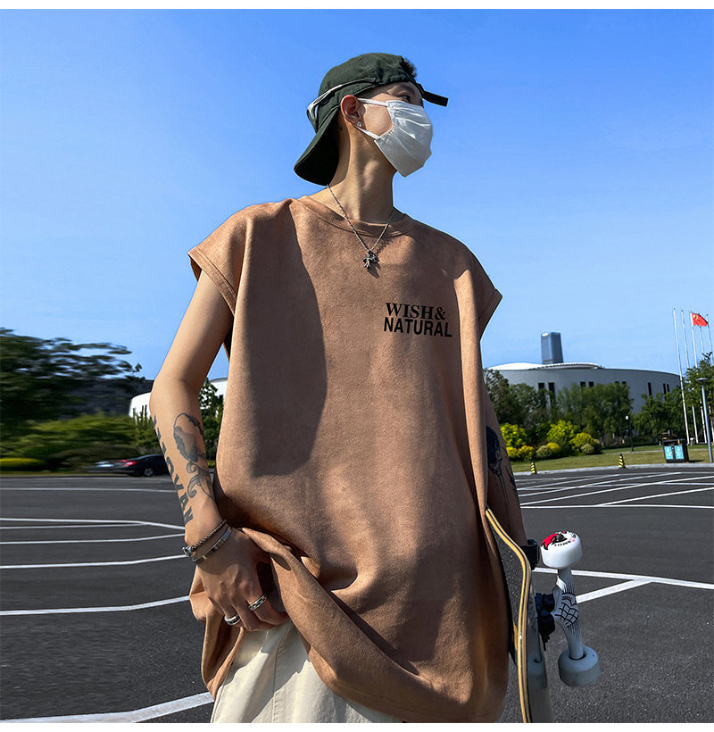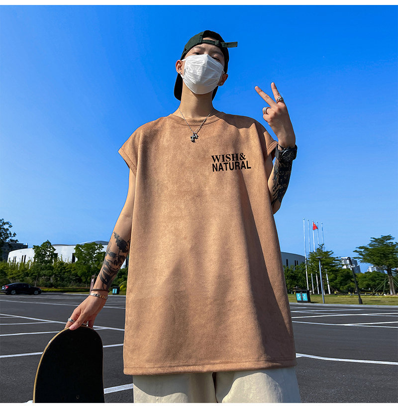 추가 크기 300kg 미국 패션 브랜드 스웨이드 민소매 티셔츠 남성과 여성 여름 새로운 커플 스포츠 양복 조끼