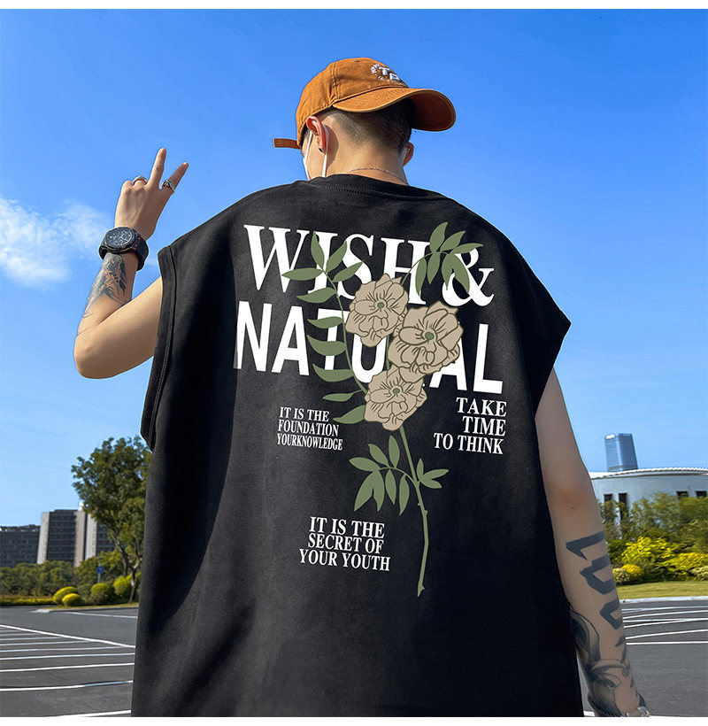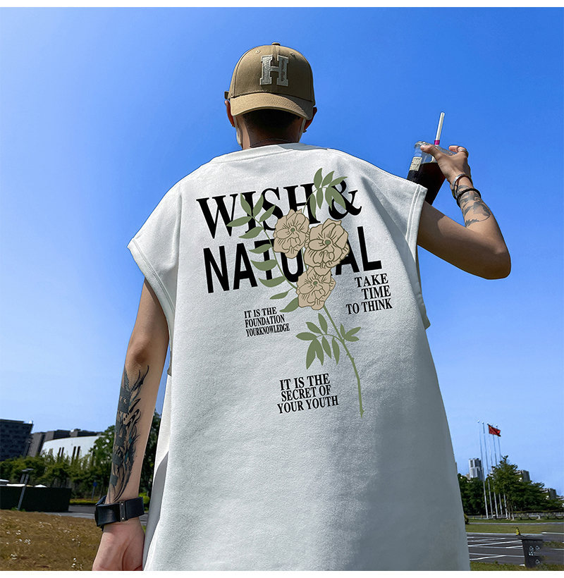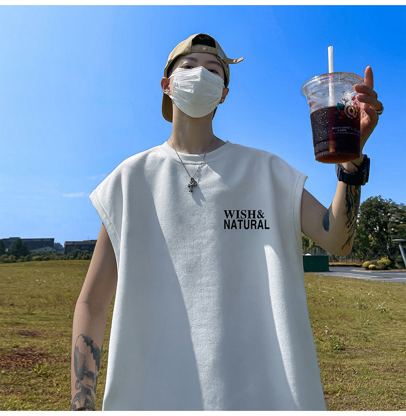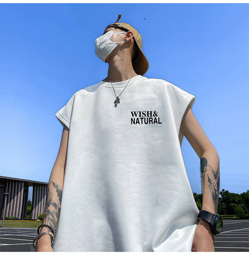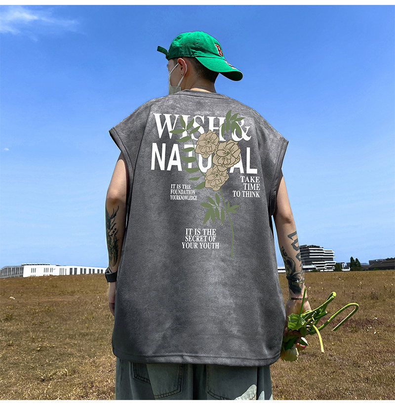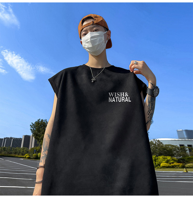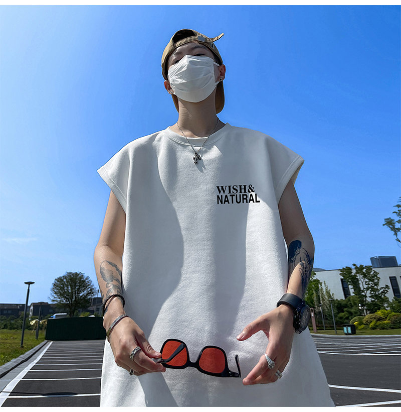 추가 크기 300kg 미국 패션 브랜드 스웨이드 민소매 티셔츠 남성과 여성 여름 새로운 커플 스포츠 양복 조끼