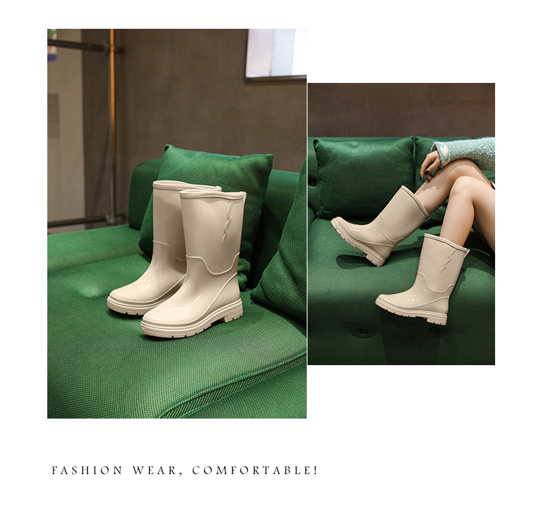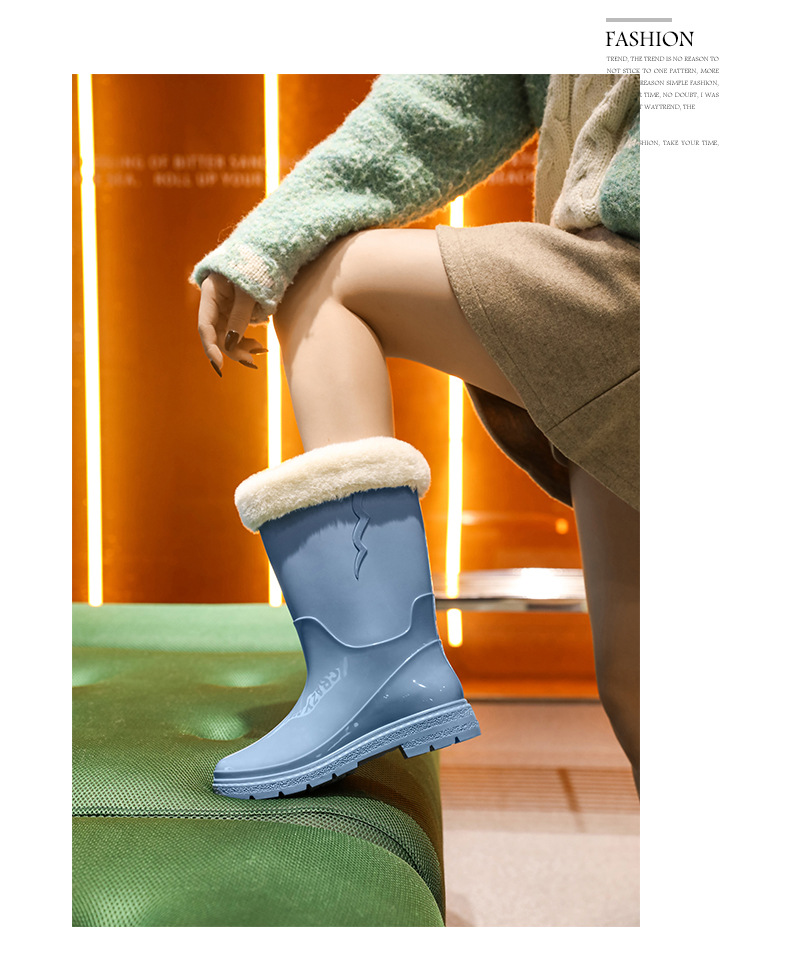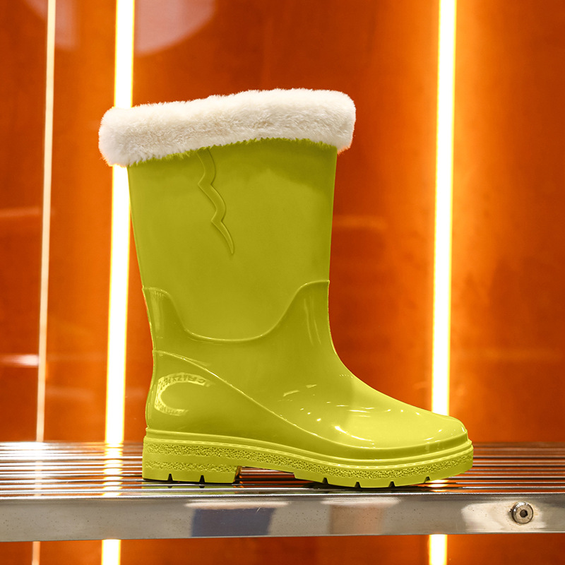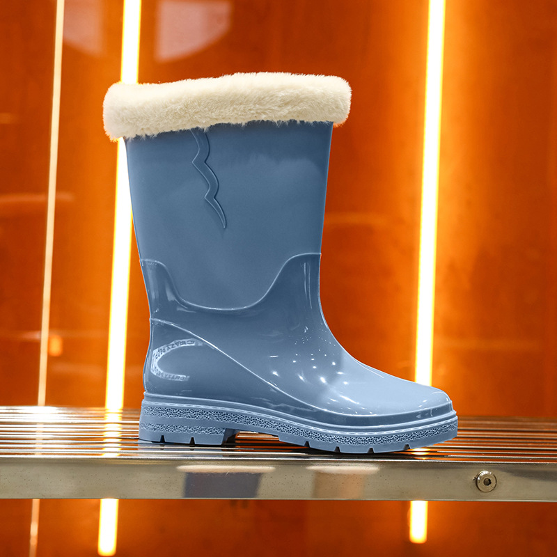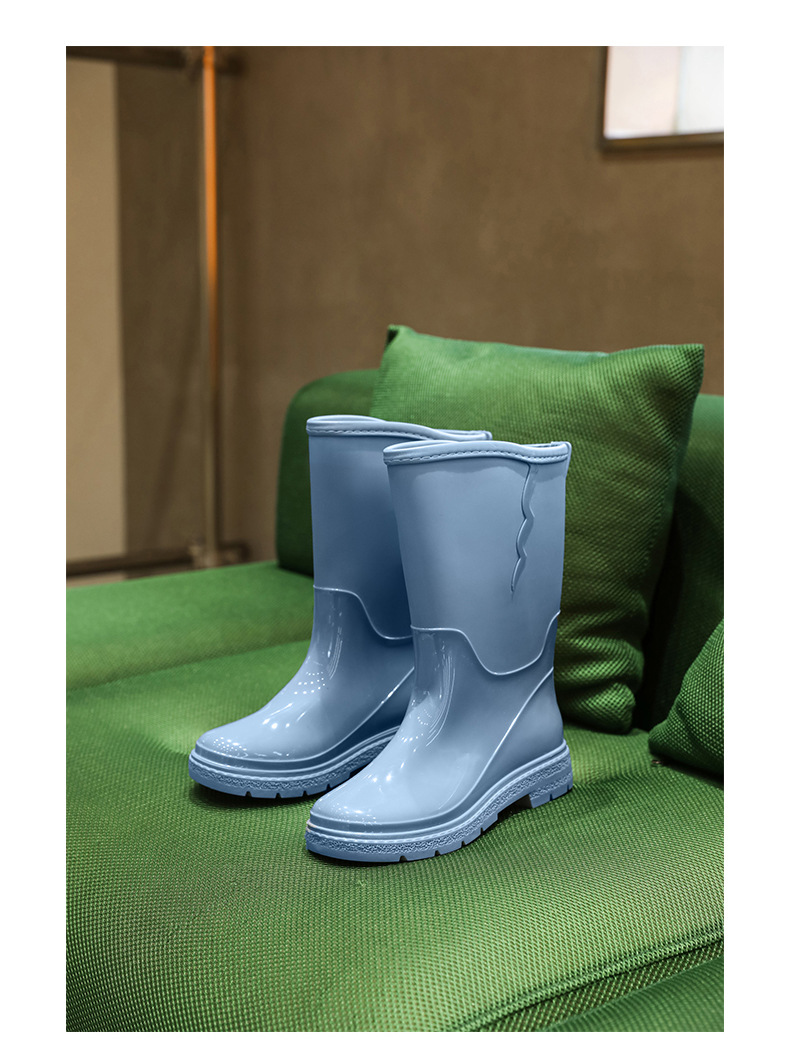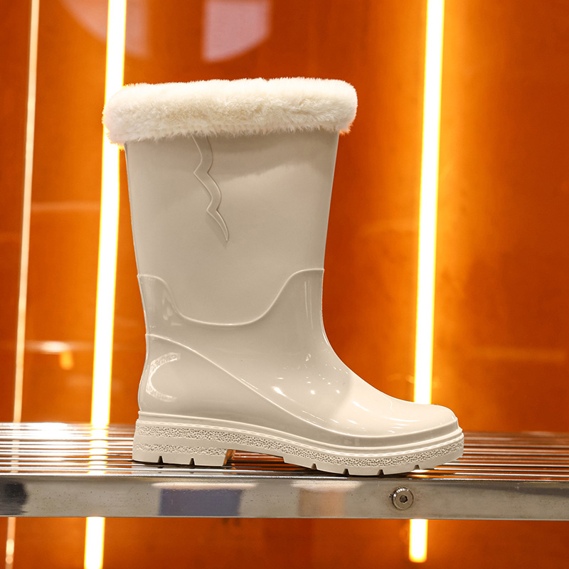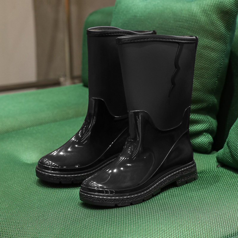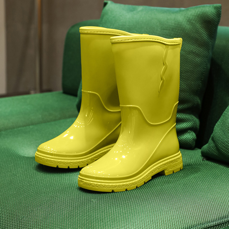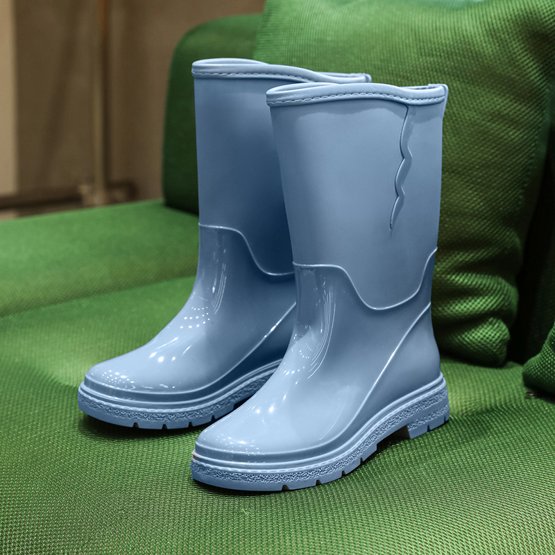 비 신발 여성용 미드 배럴 유행 의상 방수 장화 일본 미끄럼 방지 워터 신발 따뜻한 고무 신발 착용 방지 주방 워터 슈즈