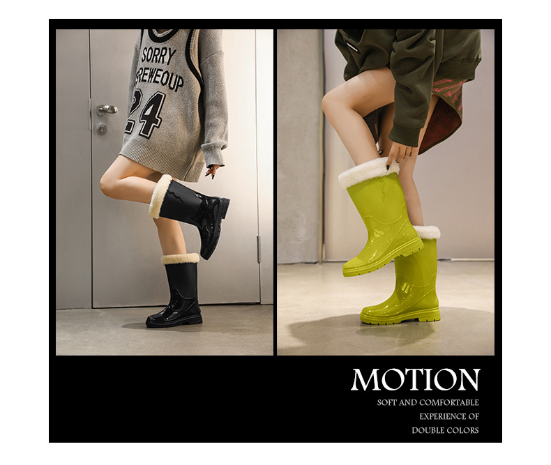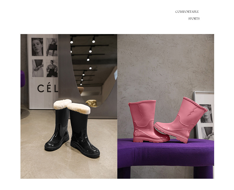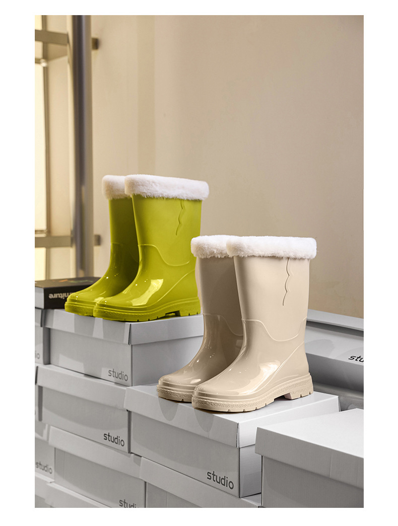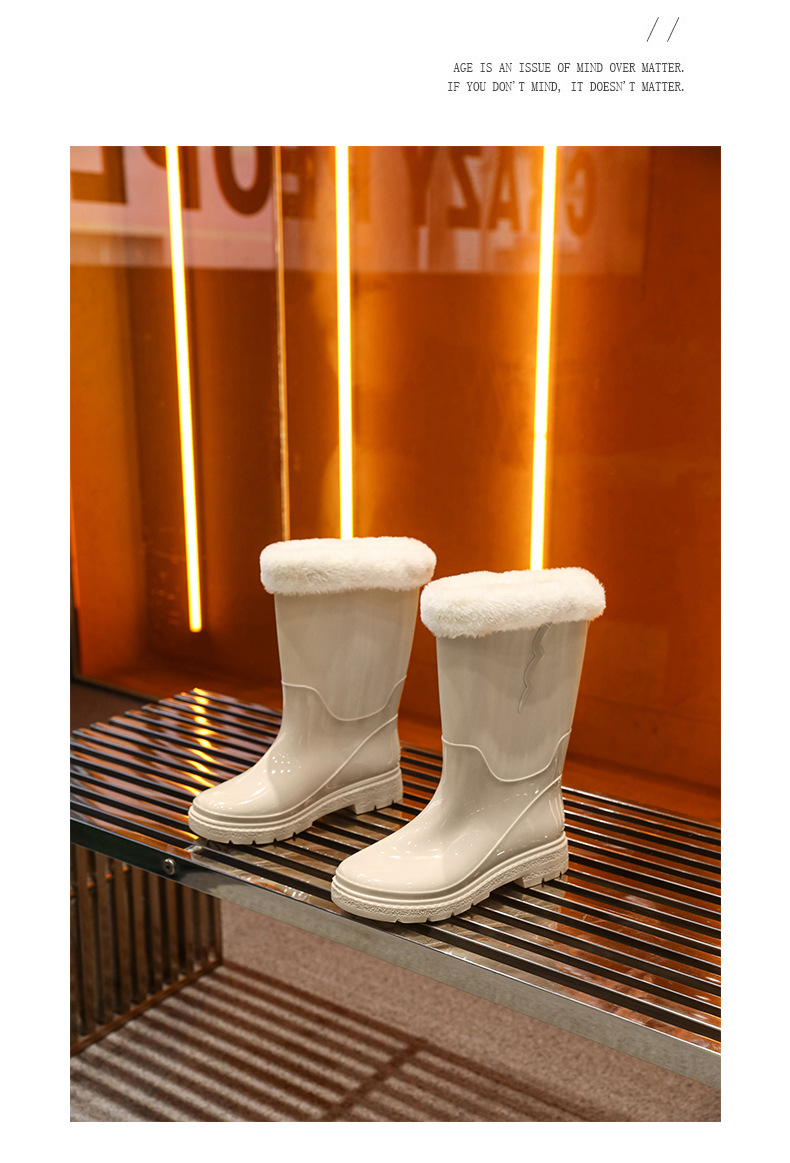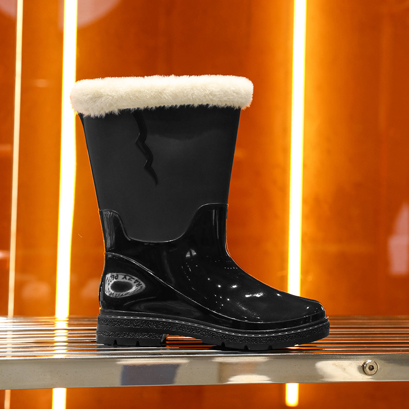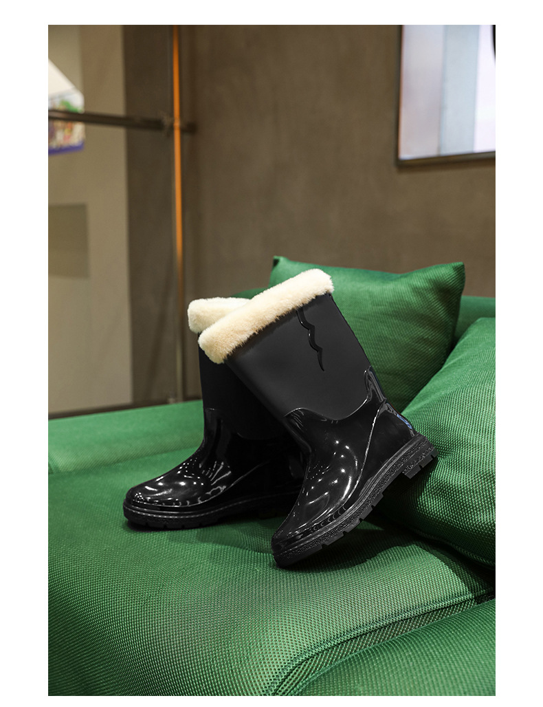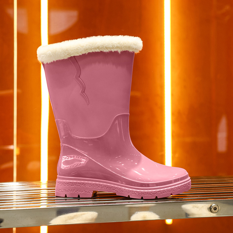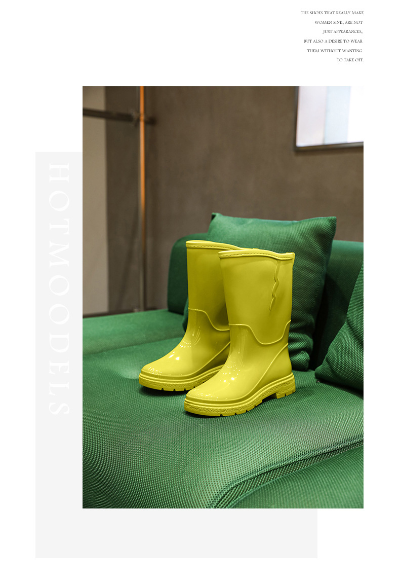 비 신발 여성용 미드 배럴 유행 의상 방수 장화 일본 미끄럼 방지 워터 신발 따뜻한 고무 신발 착용 방지 주방 워터 슈즈