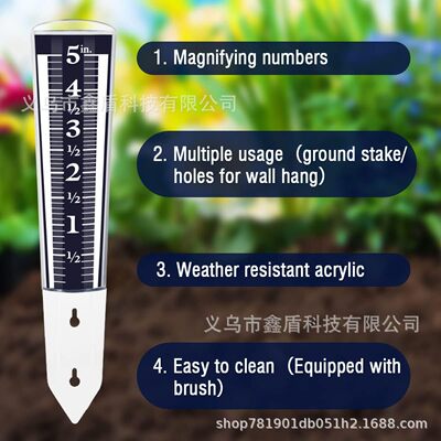 跨境专供立桩测雨表透明5英寸园林量雨器雨量计草坪降水量测量计