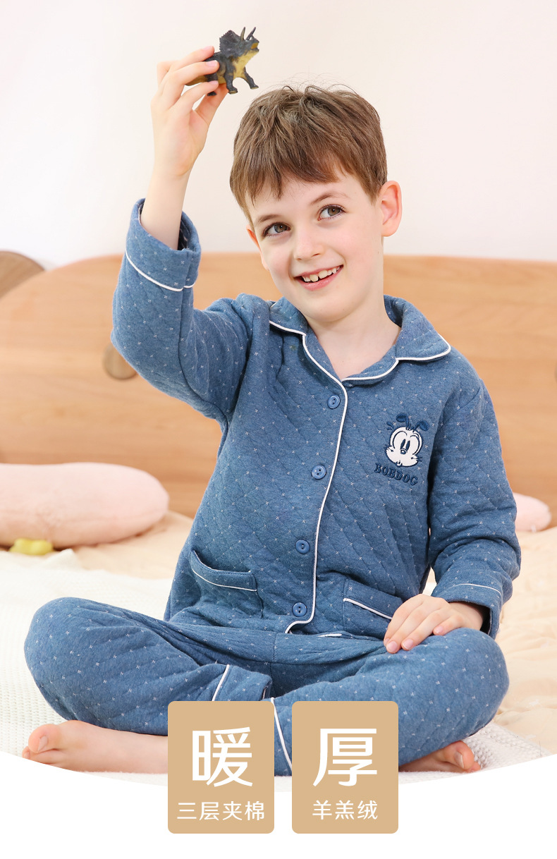 어린이 잠옷 2025 가을 겨울 두꺼운 따뜻한 긴팔 홈웨어 세트 남아 아기 중대형 어린이 의류 겨울용스토어 가기
