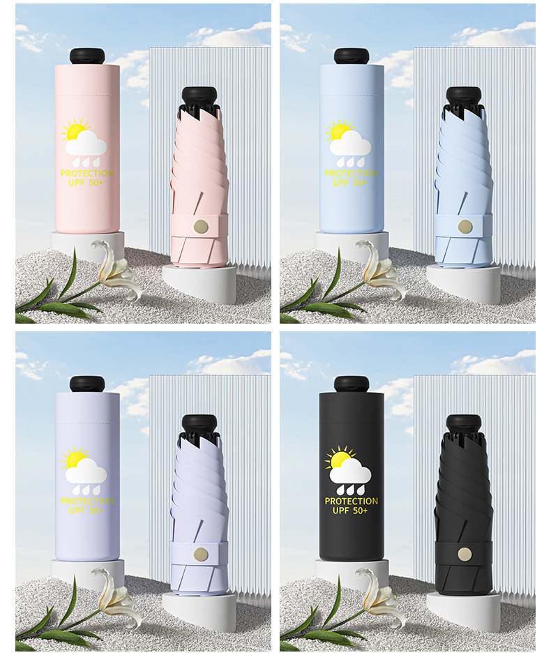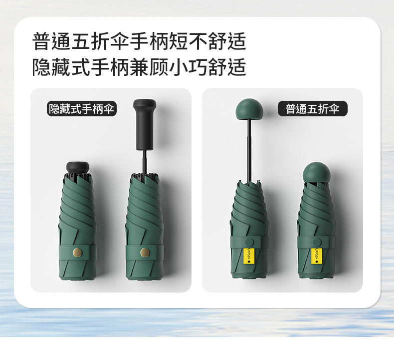 새로운 5 배 우산 맑고 비 이중 목적 우산 블랙 고무 우산 자외선 보호 울트라 라이트 휴대용 포켓 우산