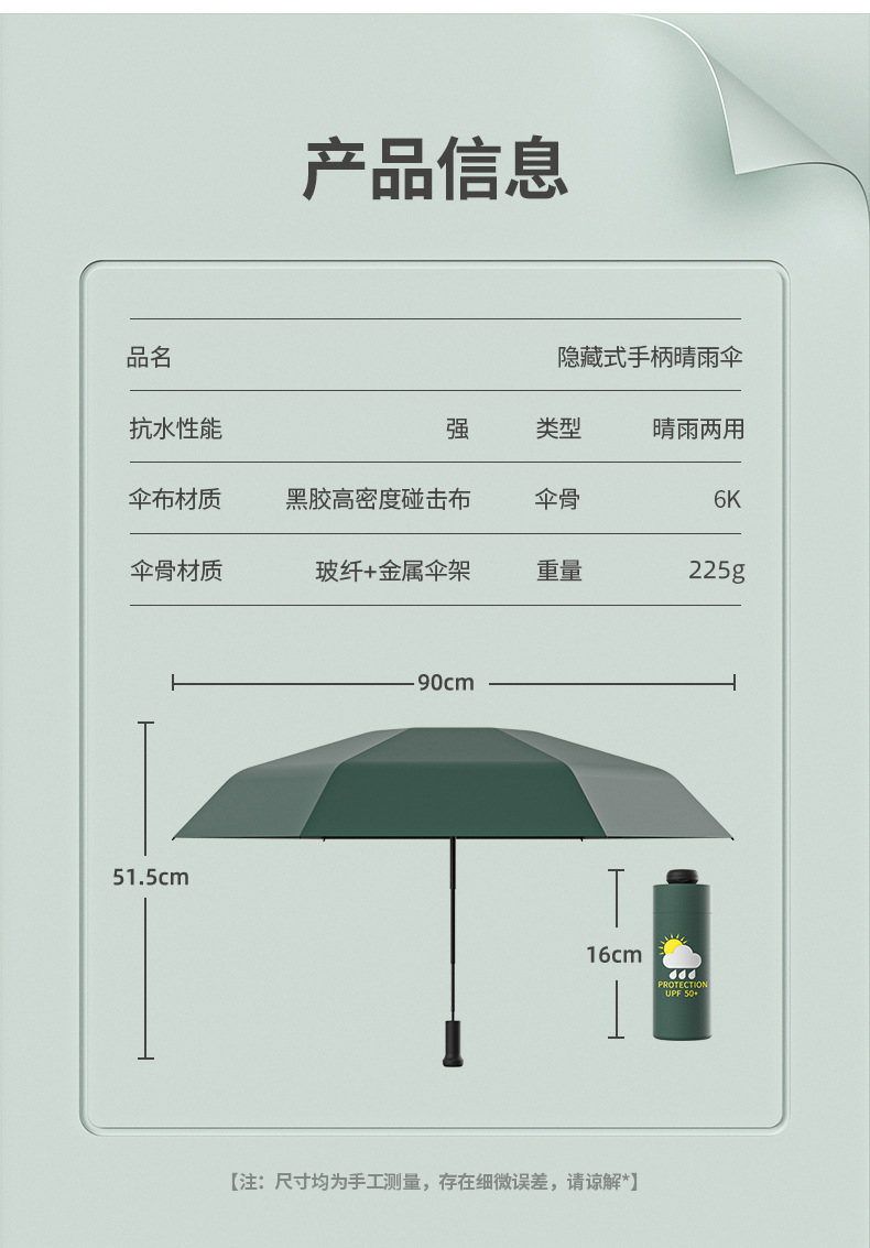 • 5 배 숨겨진 손잡이 upf50] 민트 그린