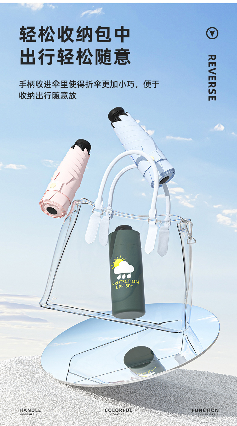 새로운 5 배 우산 맑고 비 이중 목적 우산 블랙 고무 우산 자외선 보호 울트라 라이트 휴대용 포켓 우산스토어 가기