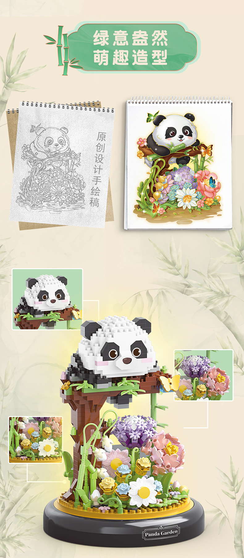 레고 텀블러 조립 퍼즐 데스크탑 장식품 장난감과 호환되는 Guochao 팬더 꽃 마이크로 입자스토어 가기