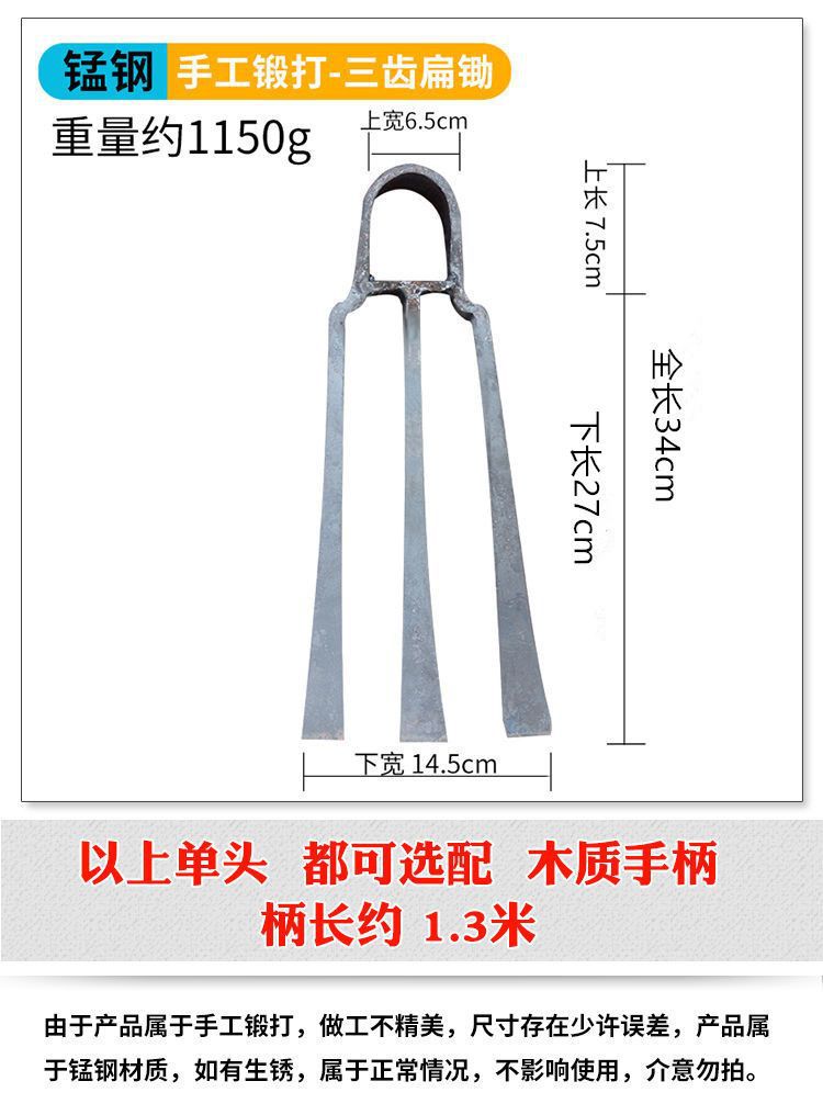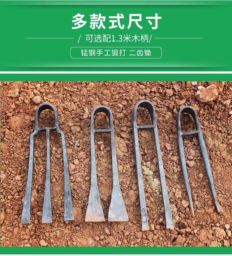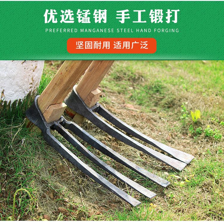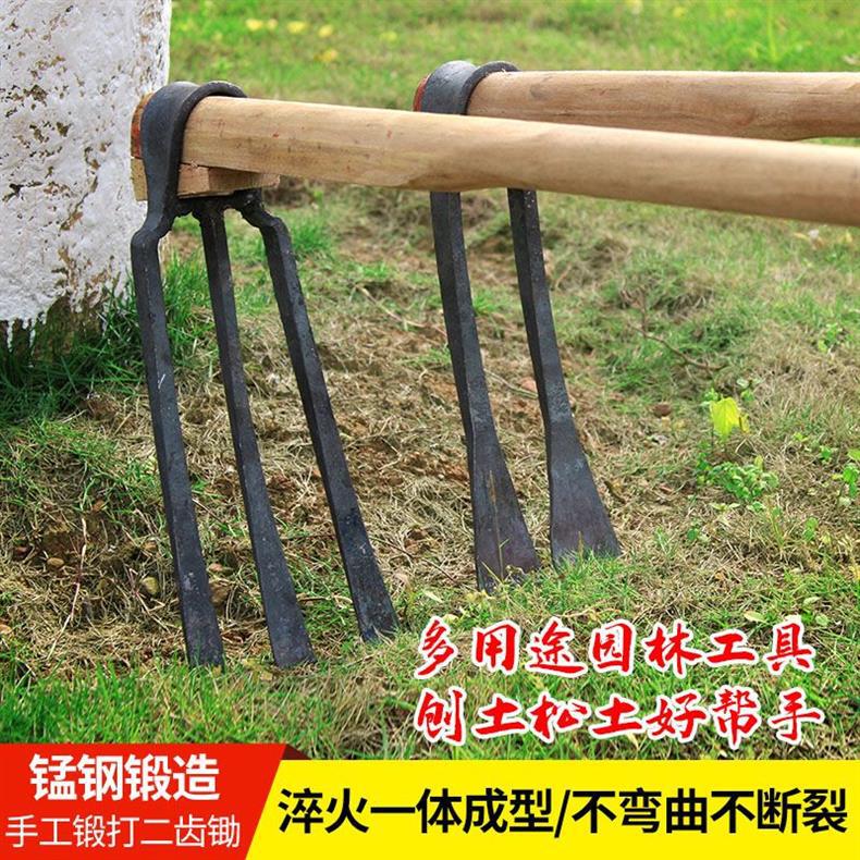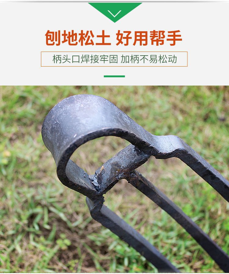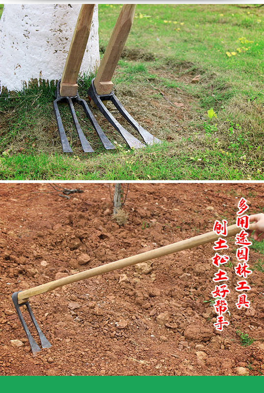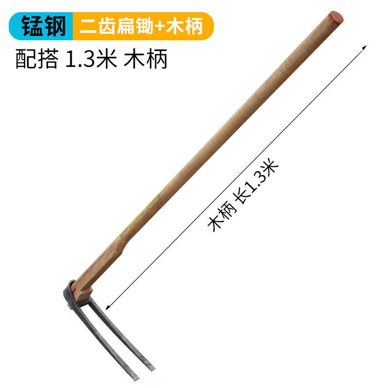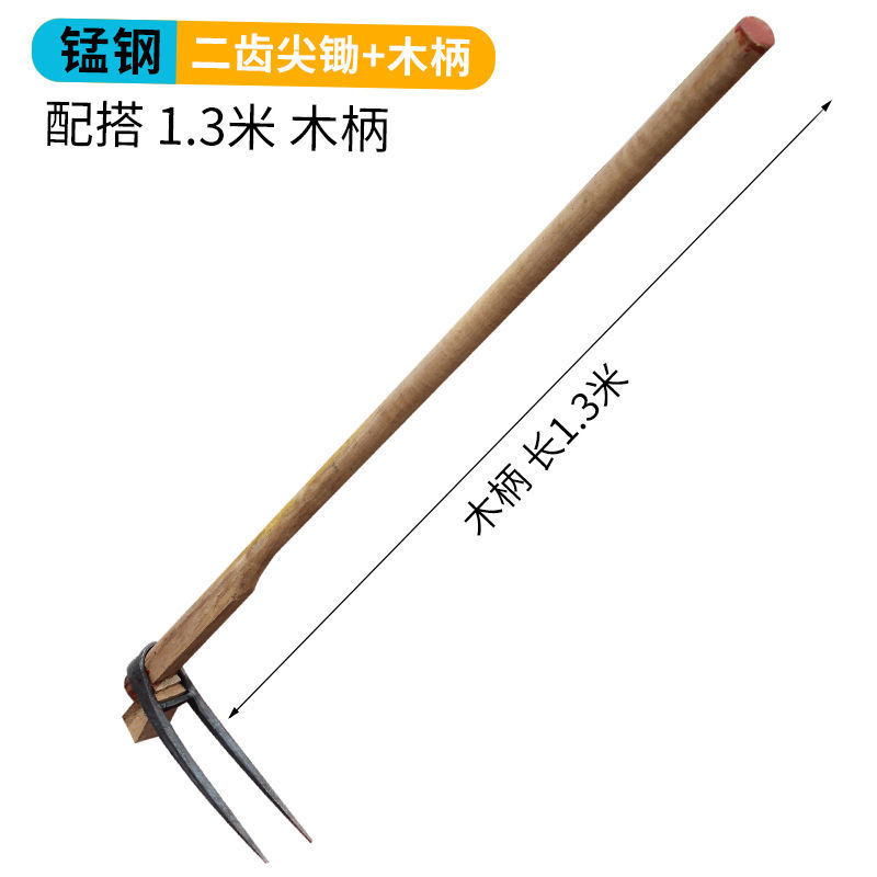 가정용 망간 강철 2-치아 Hoe 긴 나무 소나무 토양 및 야채 다기능 2-치아 Hoe 아티팩트 농업 레이크