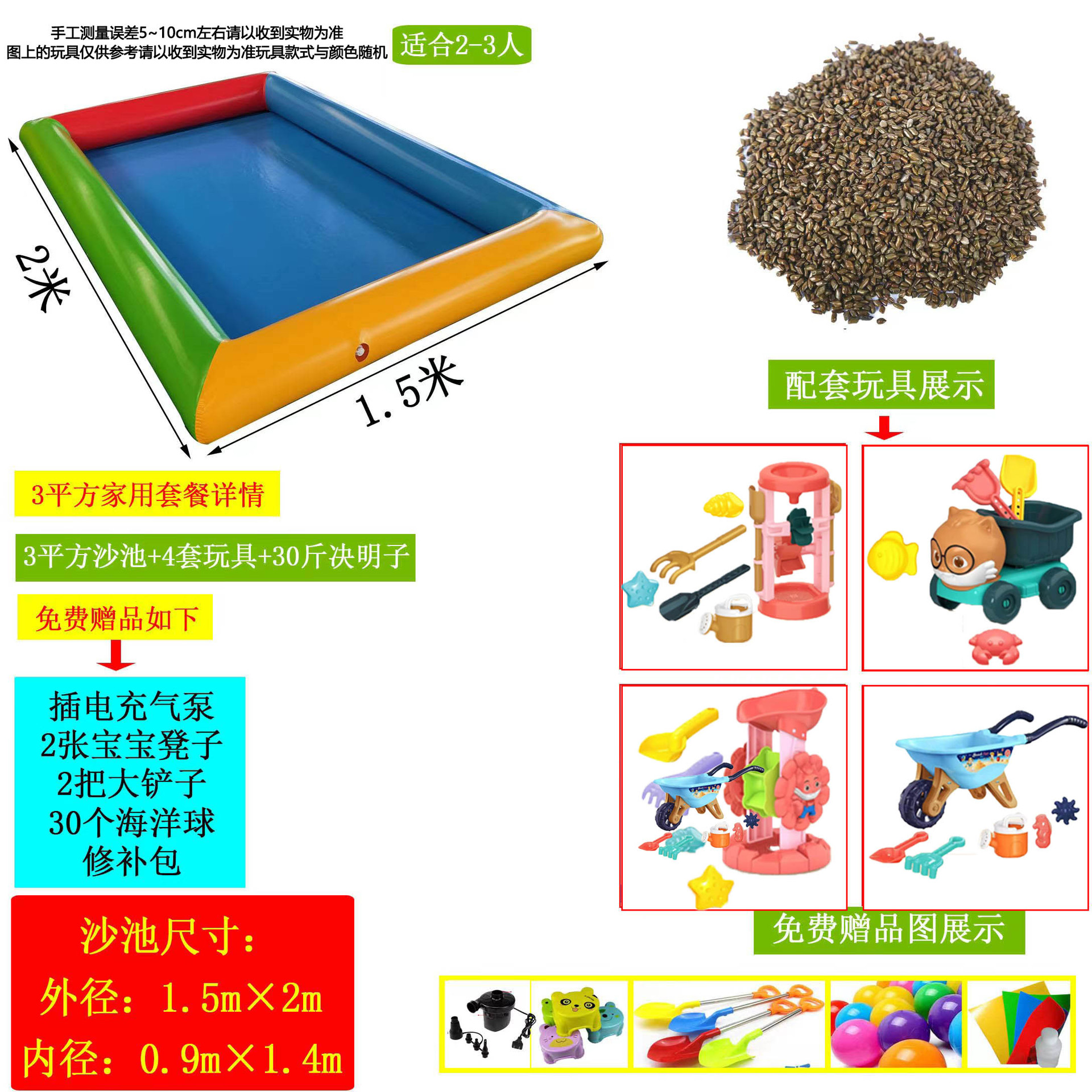 • 2.25 평방 미터 + 장난감 3 세트 + 10kg 계수나무 씨앗 가정용 1-2 어린이