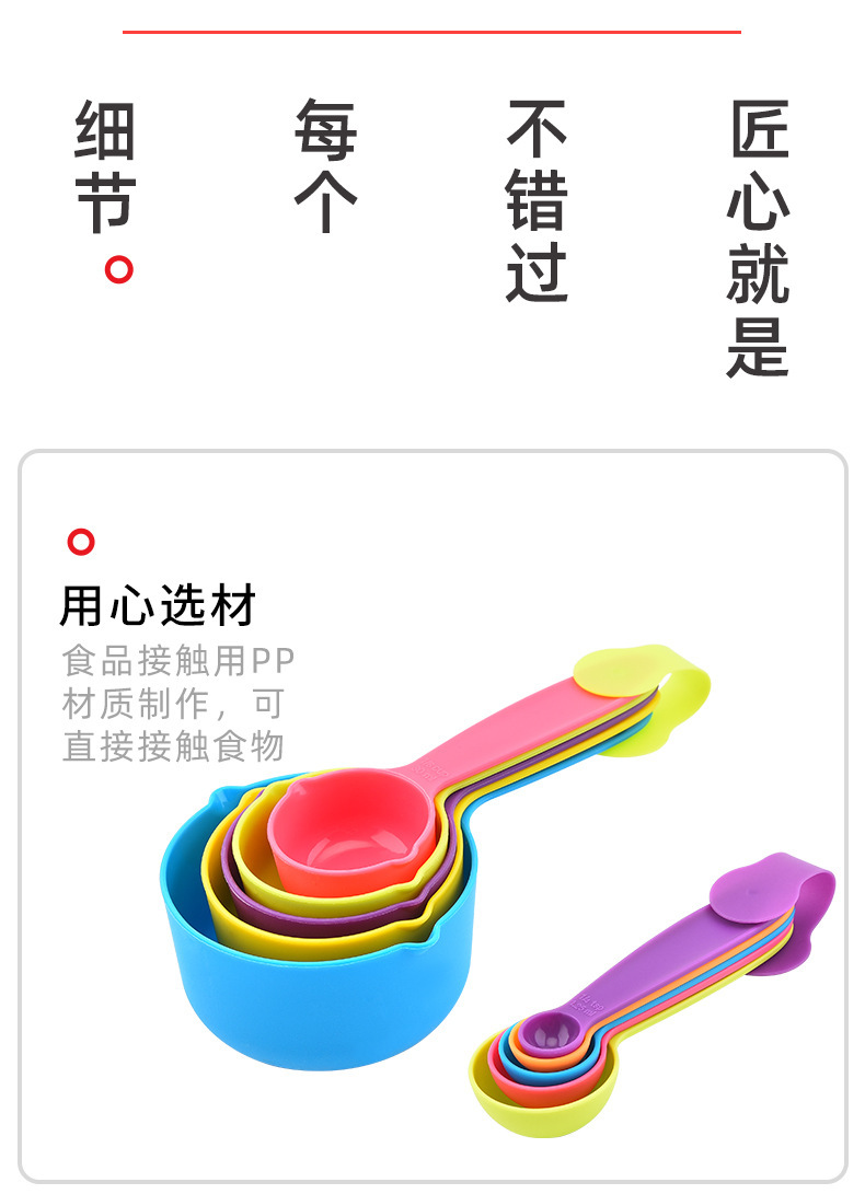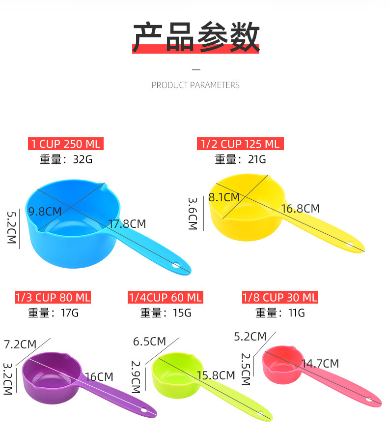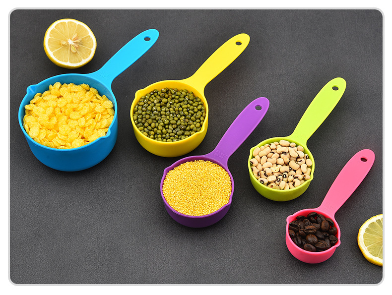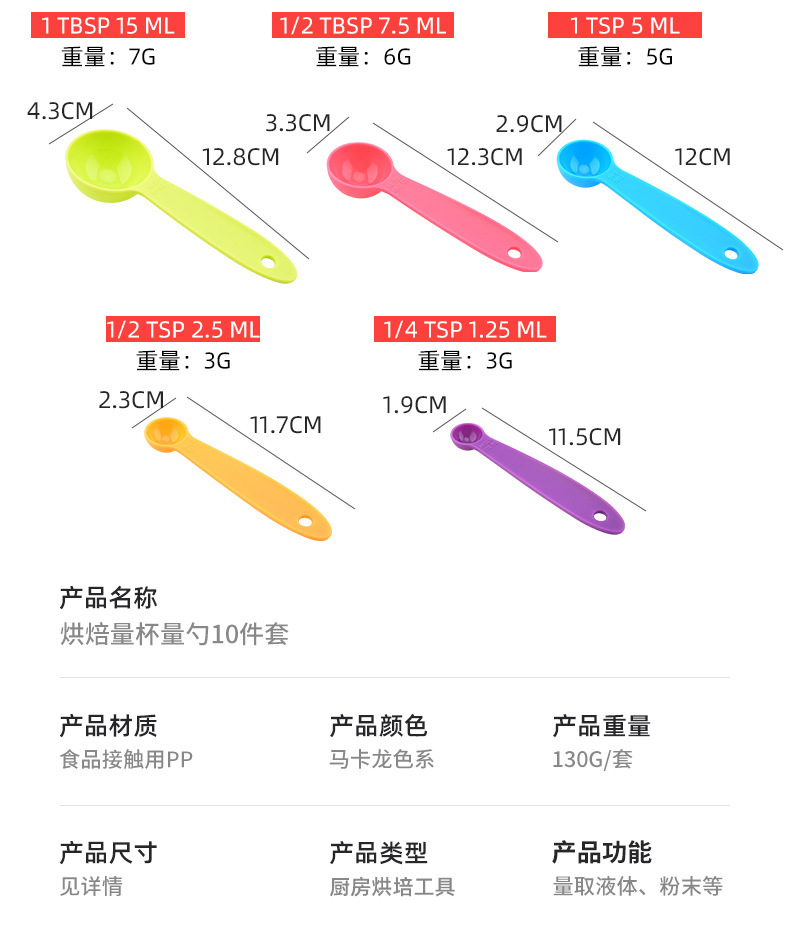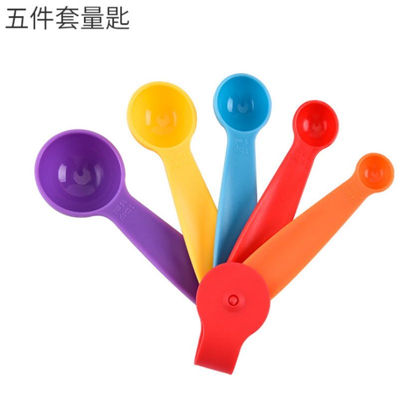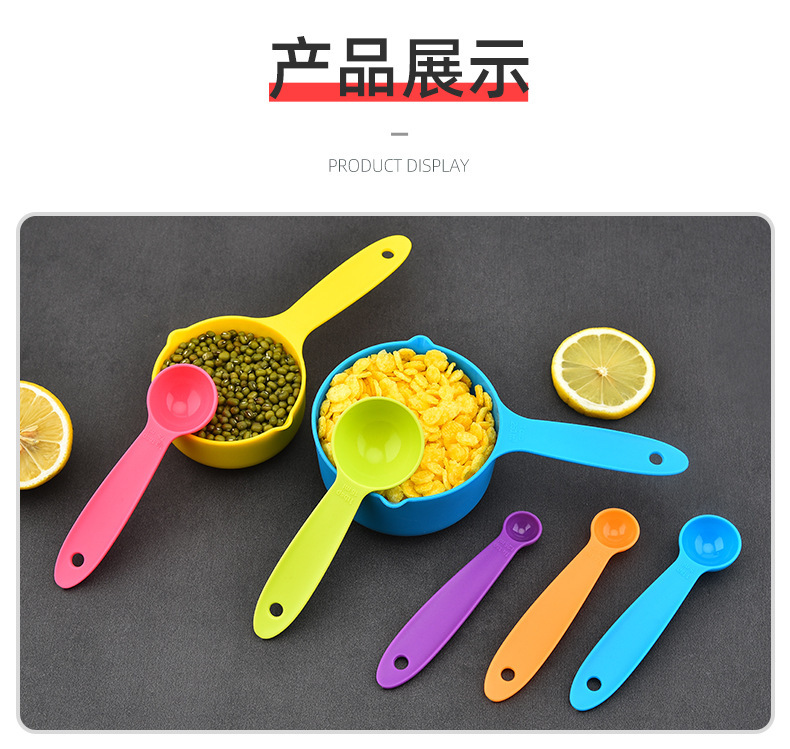 재고 컬러 플라스틱 측정 컵 측정 숟가락 10 개 세트 베이킹 조각 측정 숟가락 다기능 조절 측정 컵 측정 숟가락