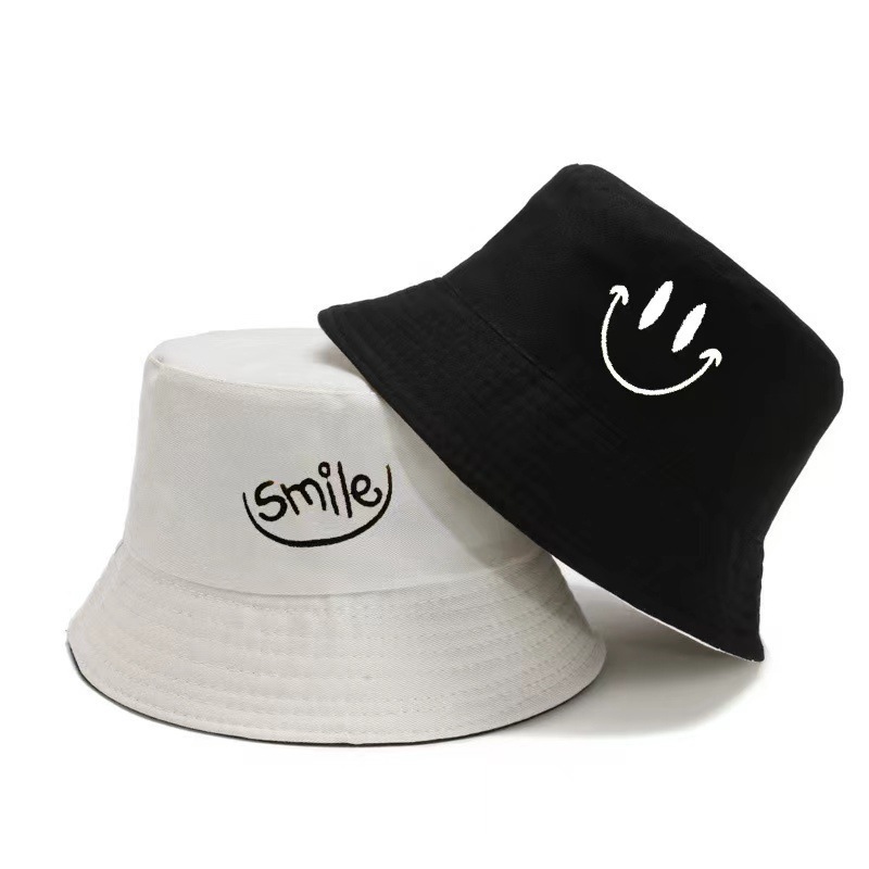 양면 어부 모자 여성 일본식 자수 스마일리 얼굴, 사계절 남성용 유니버설 문학 모자스토어 가기