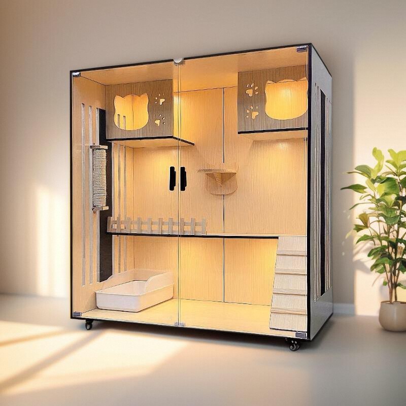 고양이 내각 빌라 단단한 나무 가정용 고양이 케이지 방수 실내 케이지 큰 고양이 집 고양이 집 대외 무역