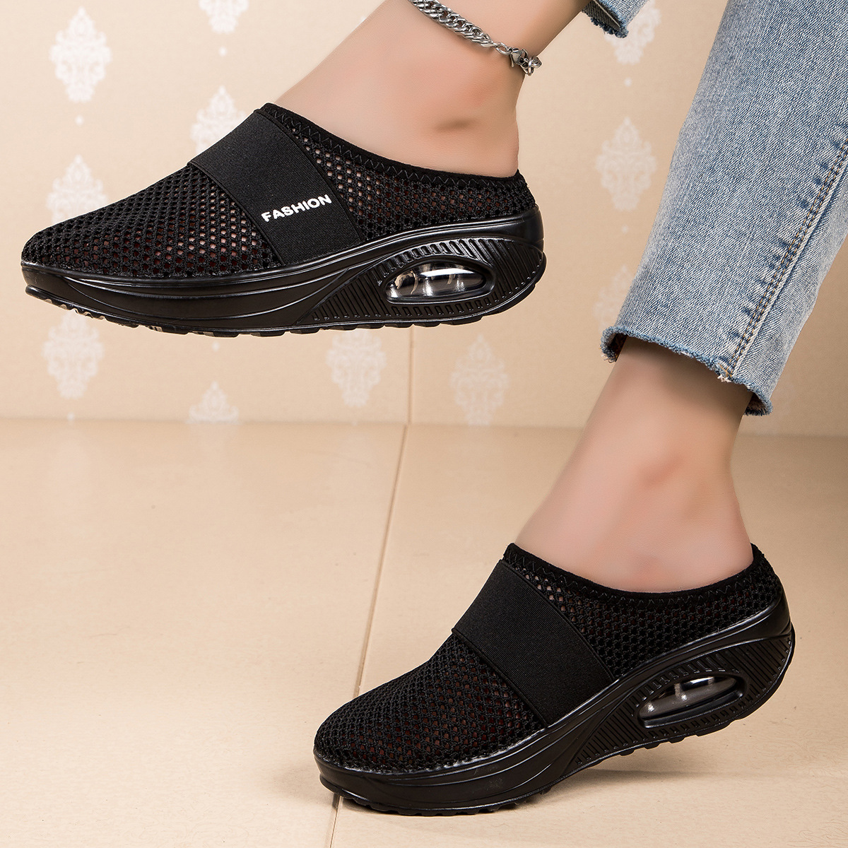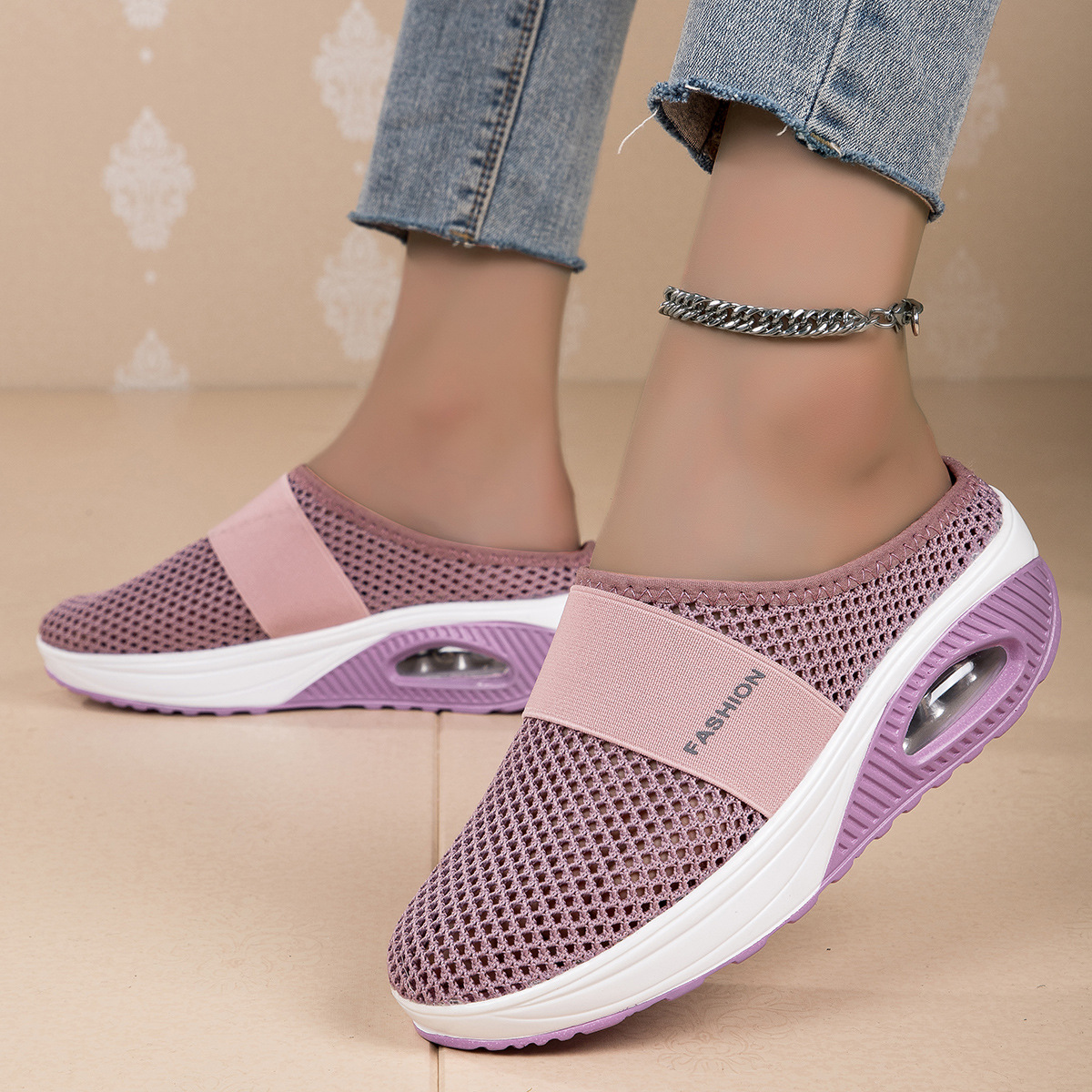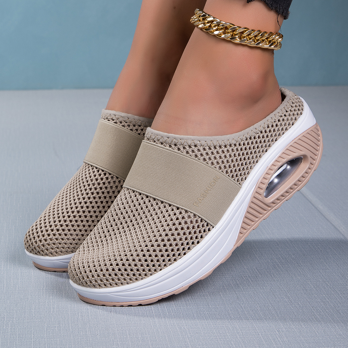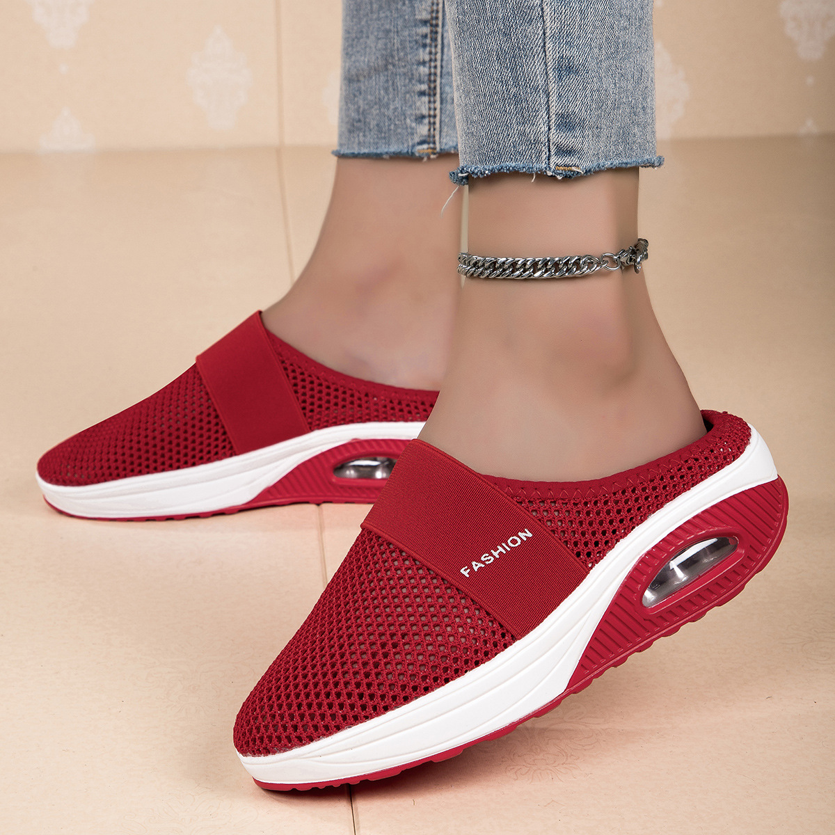 국경을 넘는 인기 상품, 진장 슈즈, 슬립온 반슬리퍼, 진짜 에어쿠션, 통기성 메쉬 소재, 여성용 신발, 페이치 캐주얼 초경량 신발스토어 가기