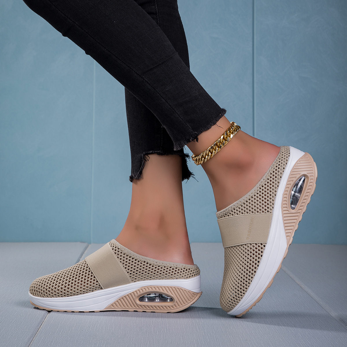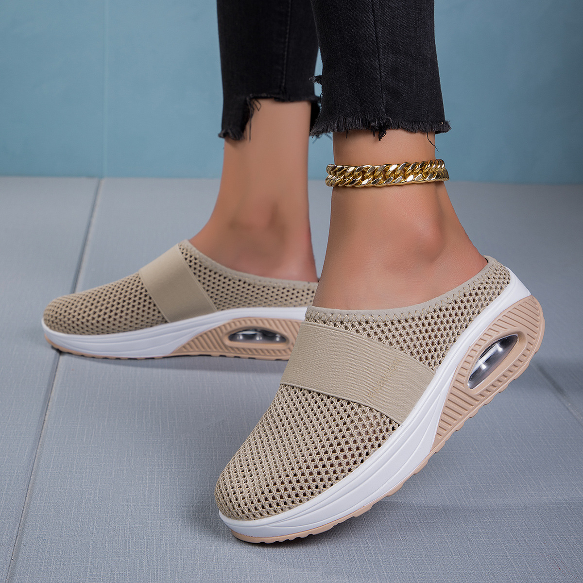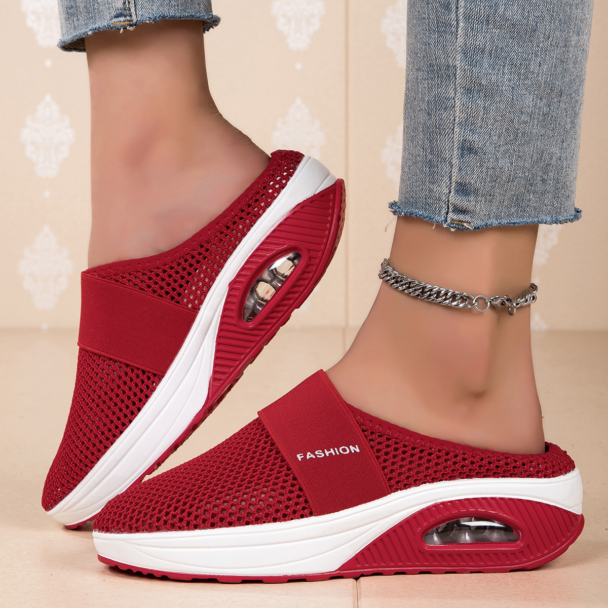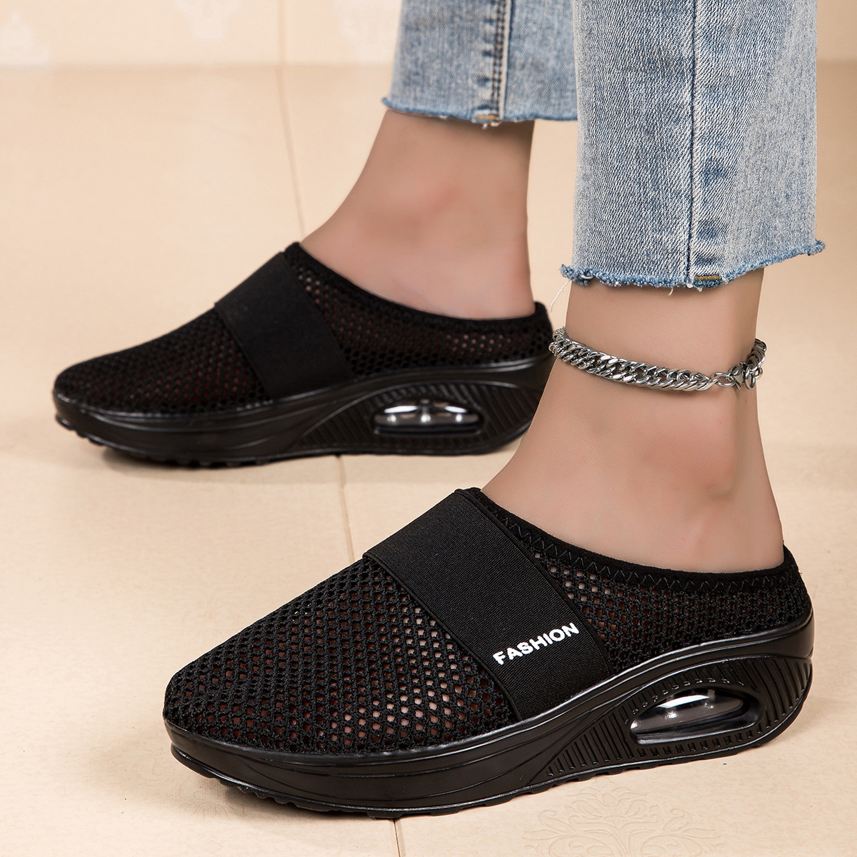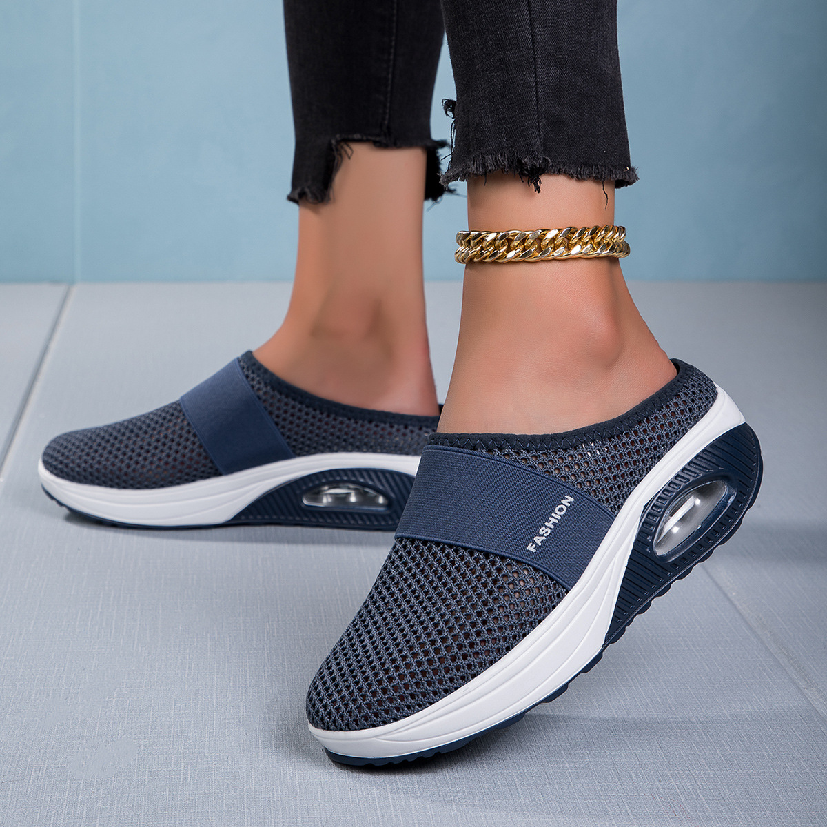 국경을 넘는 인기 상품, 진장 슈즈, 슬립온 반슬리퍼, 진짜 에어쿠션, 통기성 메쉬 소재, 여성용 신발, 페이치 캐주얼 초경량 신발스토어 가기