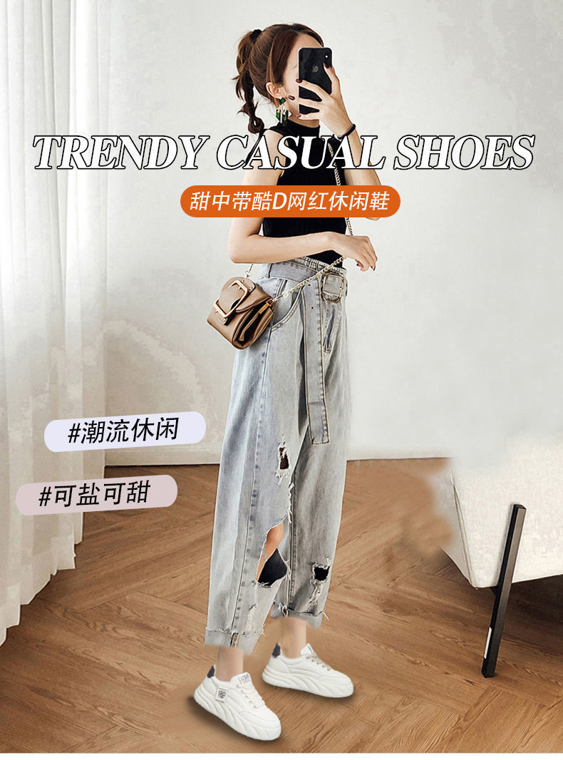 흰색 신발 여성 조커 틈새 봄 새로운 두꺼운 밑창 학생 스포츠 캐주얼 신발 여성 신발 한 세대 머리카락스토어 가기