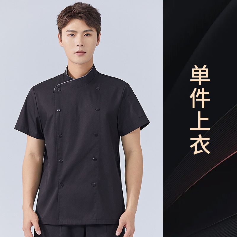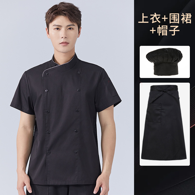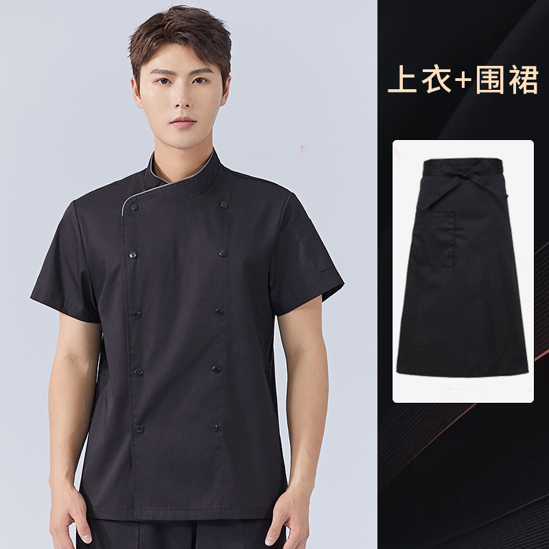 • HX307 블랙 [80/20 폴리 에스테르면] 짧은 소매 블랙 하프 앞치마 블랙 버섯 캡
