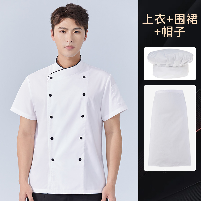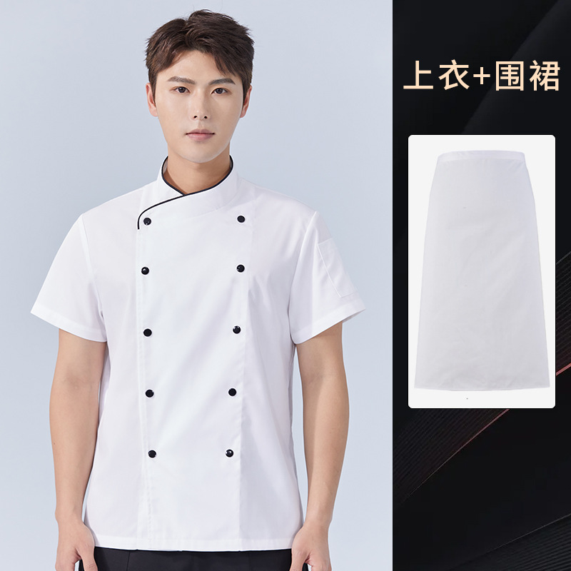 • HX307 흰색 [80/20 폴리 에스테르면] 짧은 소매 흰색 절반 앞치마 흰색 버섯 캡