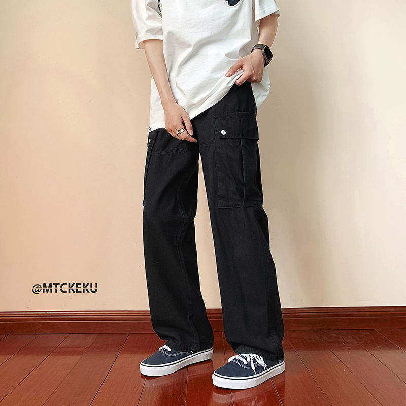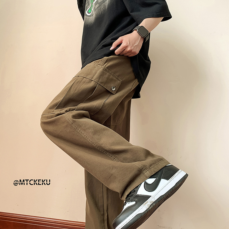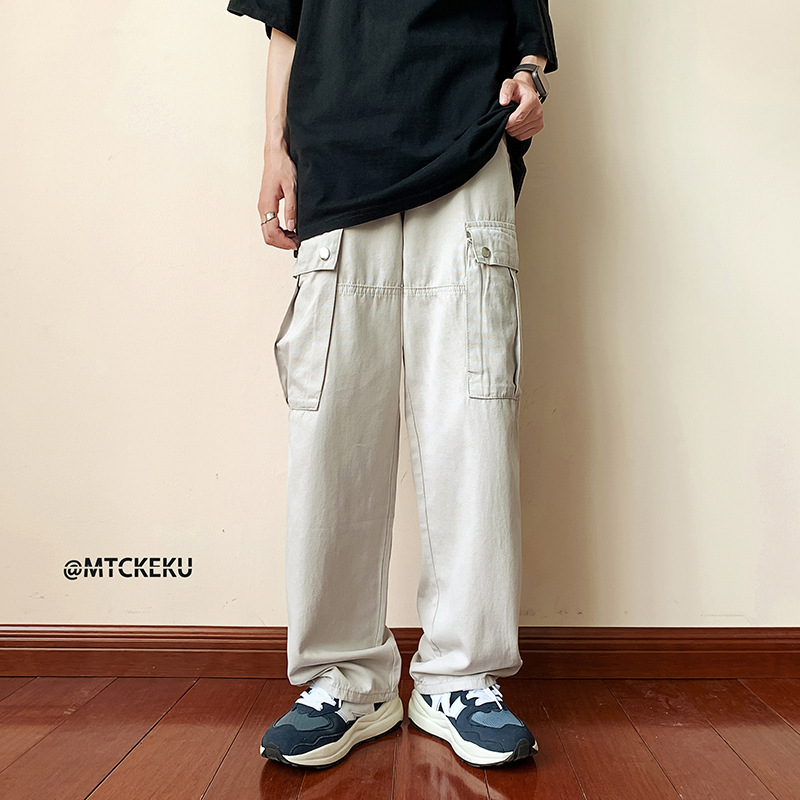 일본식 레트로 오버홀 남성 봄과 가을 새로운 도착 느슨한 넓은 다리 스트레이트 바지 홍콩 스타일 하이 스트리트 트렌디 브랜드 캐주얼 바지스토어 가기