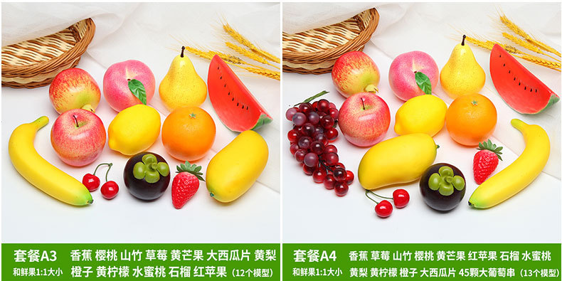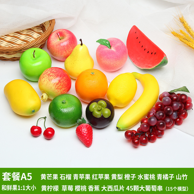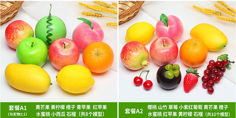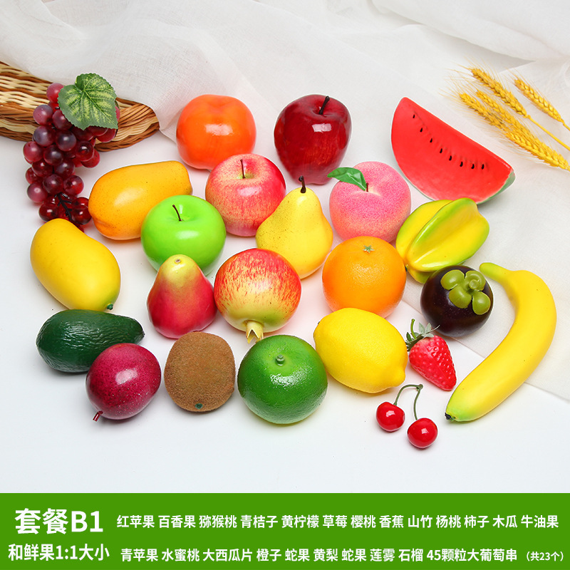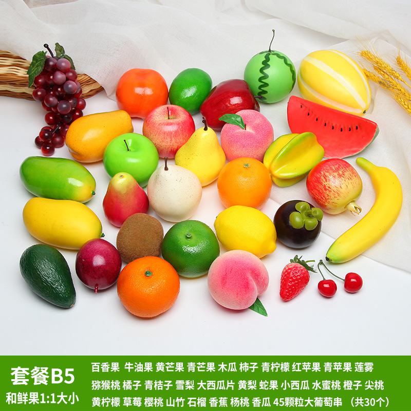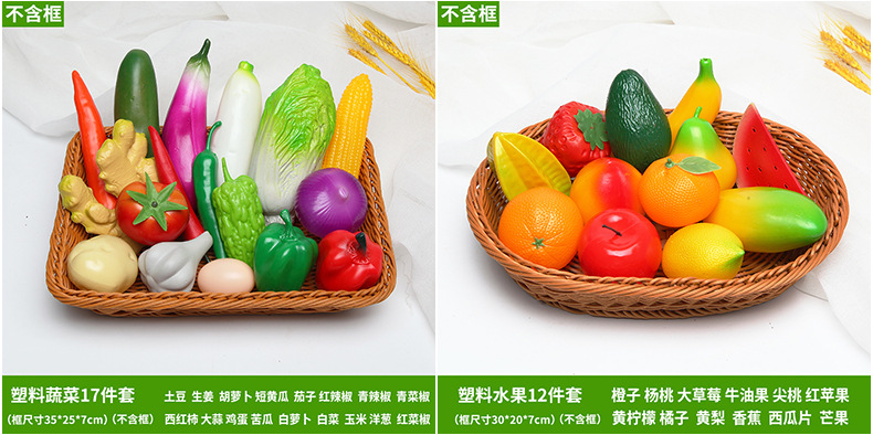 가짜 과일 시뮬레이션 야채 모델 세트 플라스틱 장식품 빵 장식 소품 어린이 조기 교육 인식 공장스토어 가기