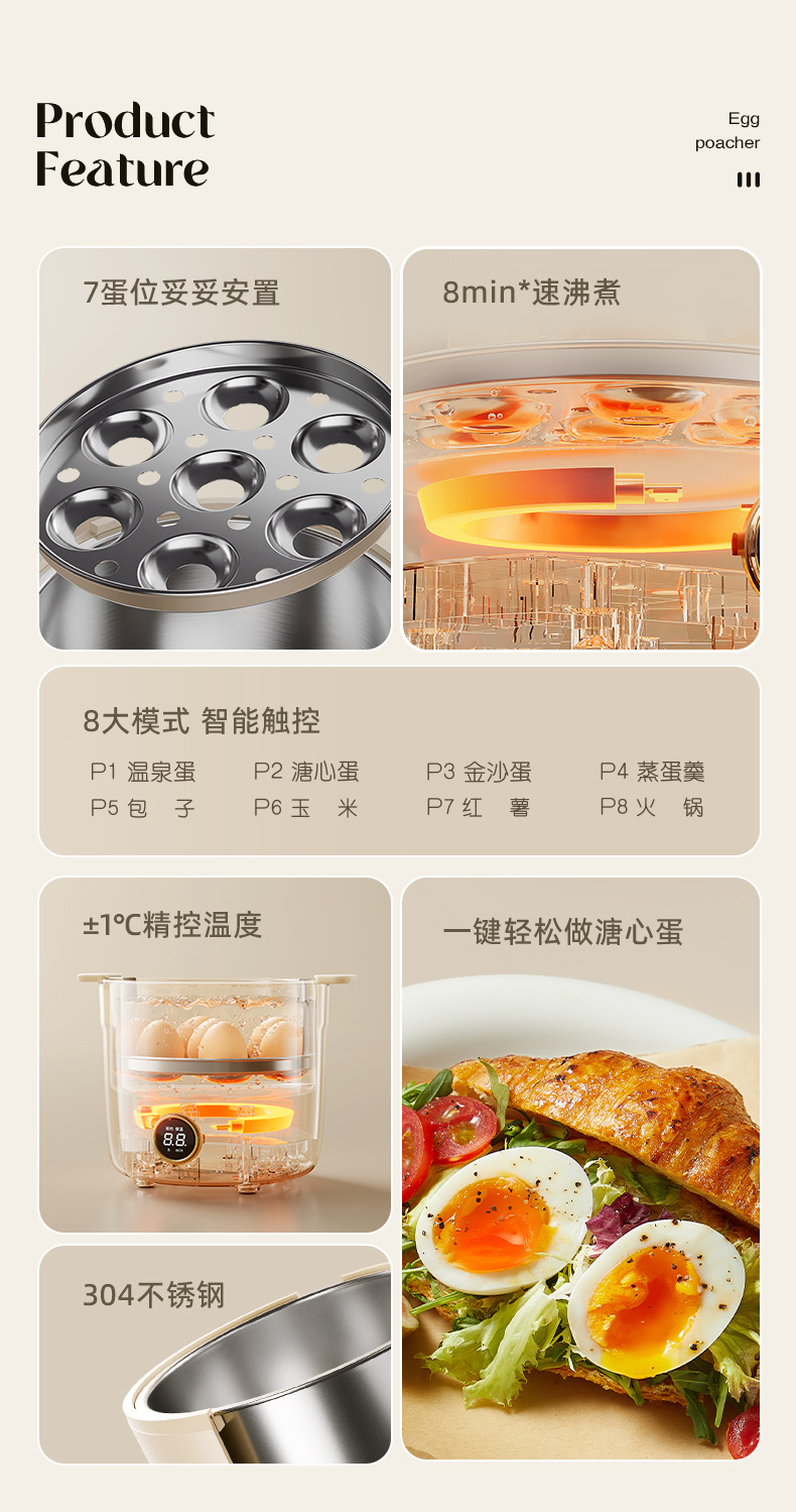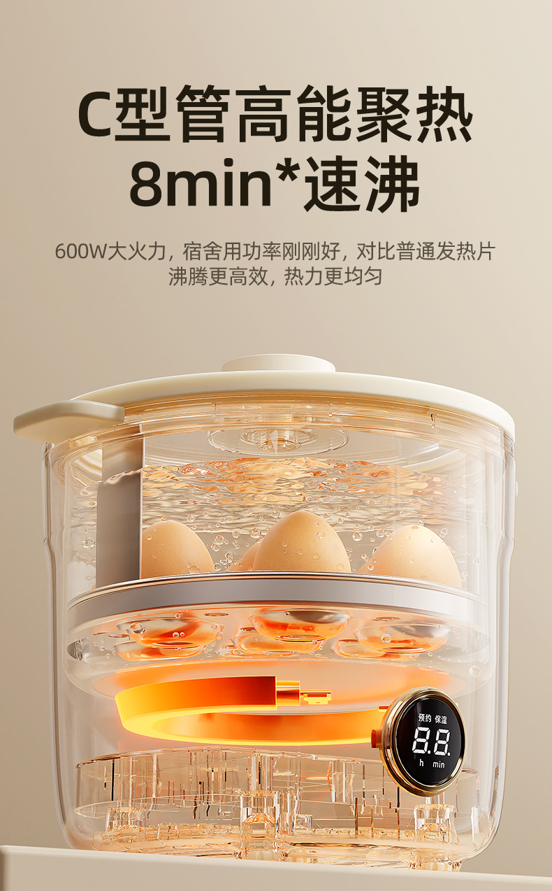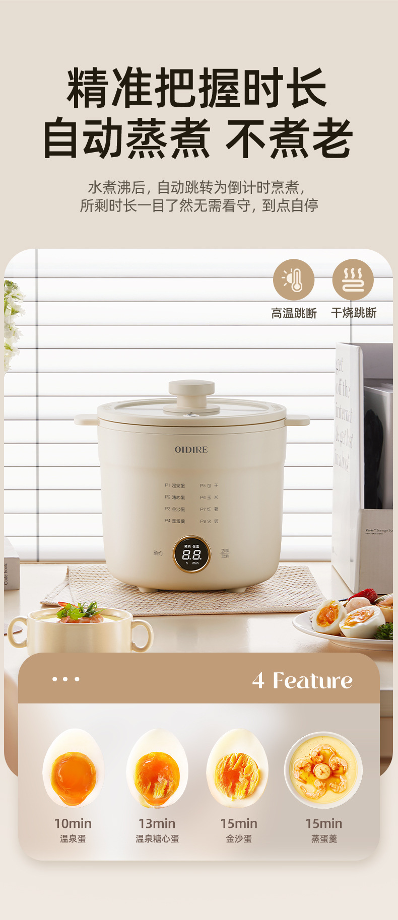 계란 밥솥, 계란 밥솥, 다기능 소형 온천 계란 밥솥, 계란 찜기, 건조 연소 방지, 시간 제한, 자동 전원 끄기