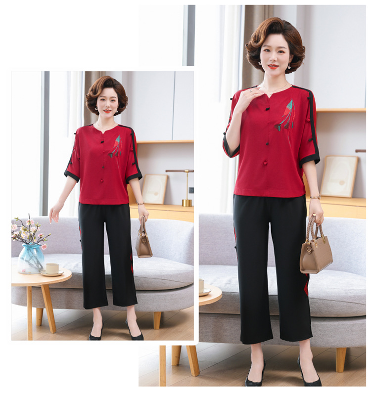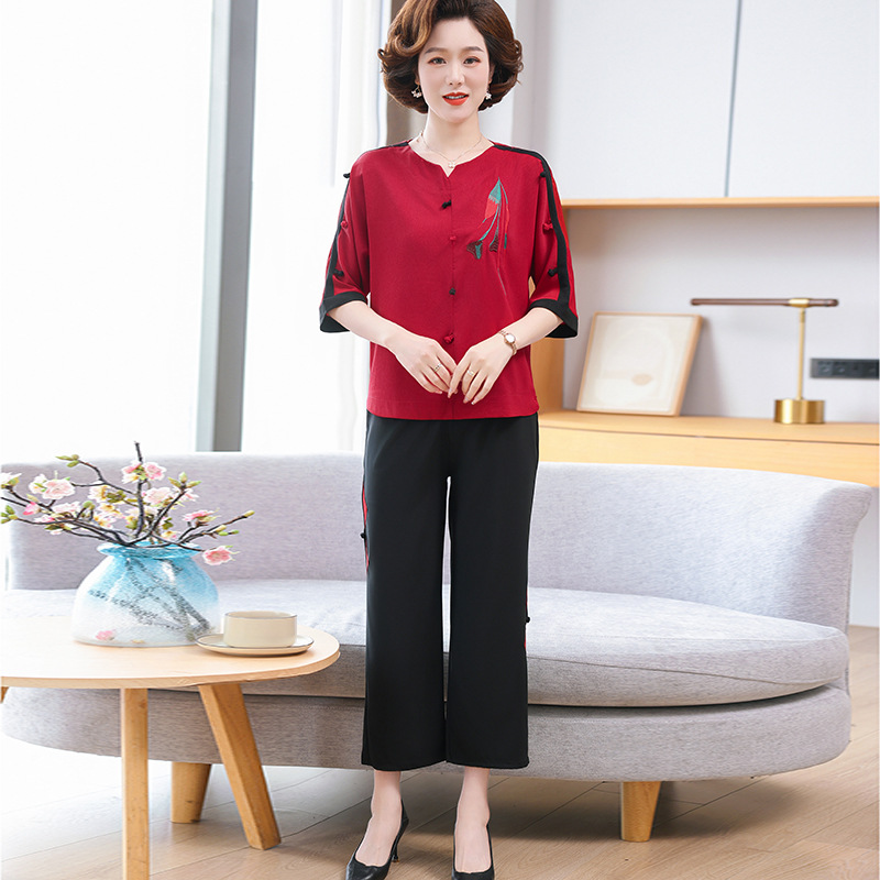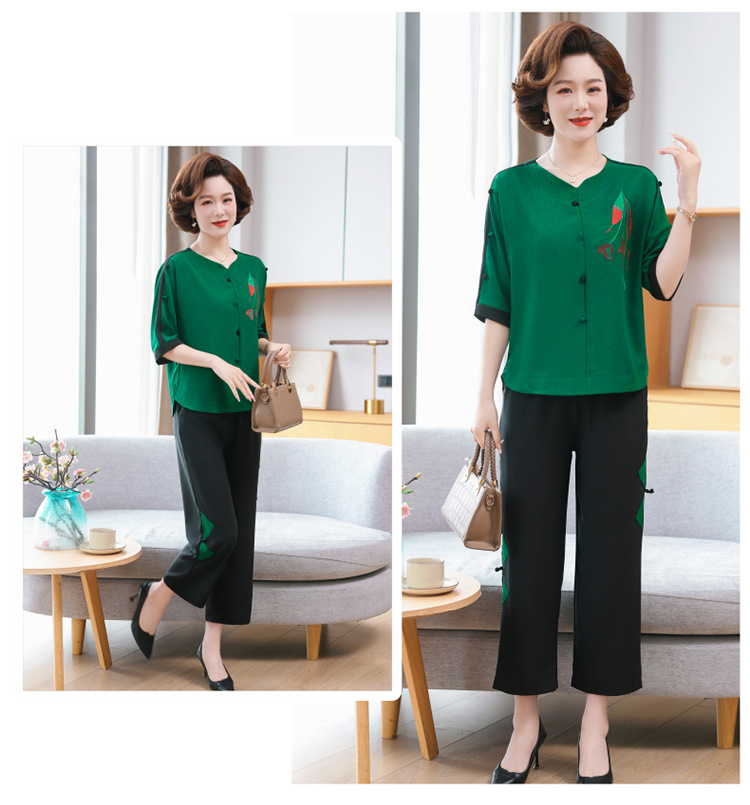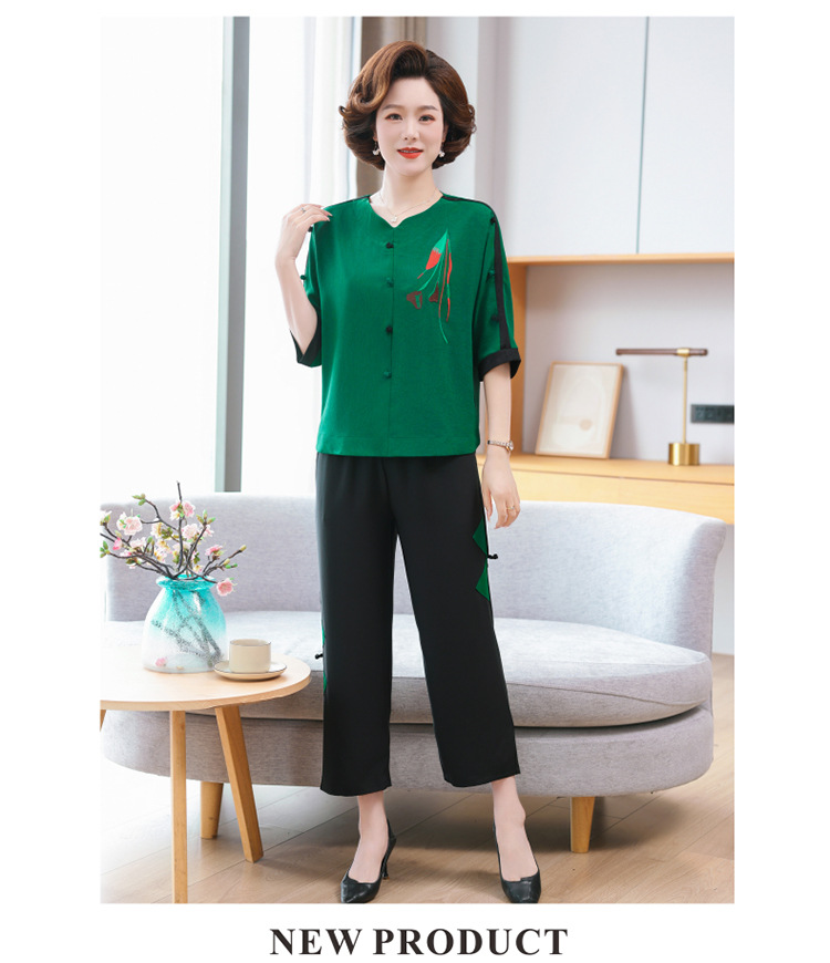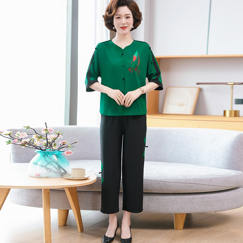 중년 · 노년층 여름옷 할머니 투피스 노부인복 60 세 70 세 어머니의 여름 세트