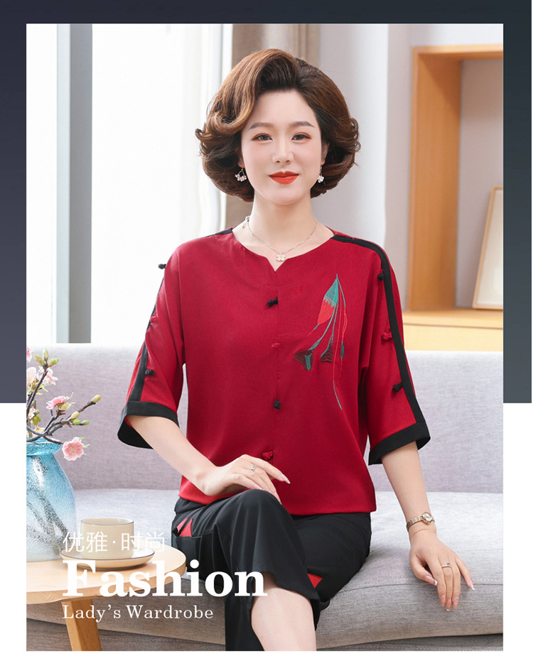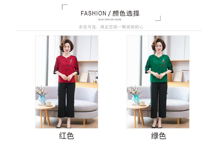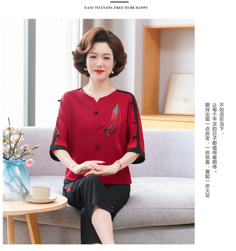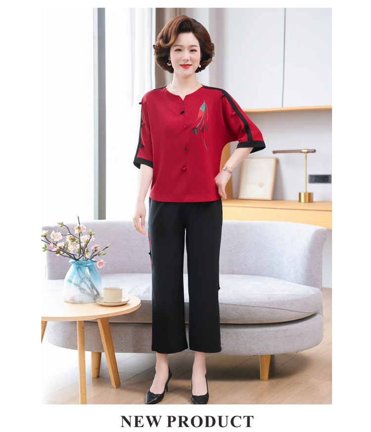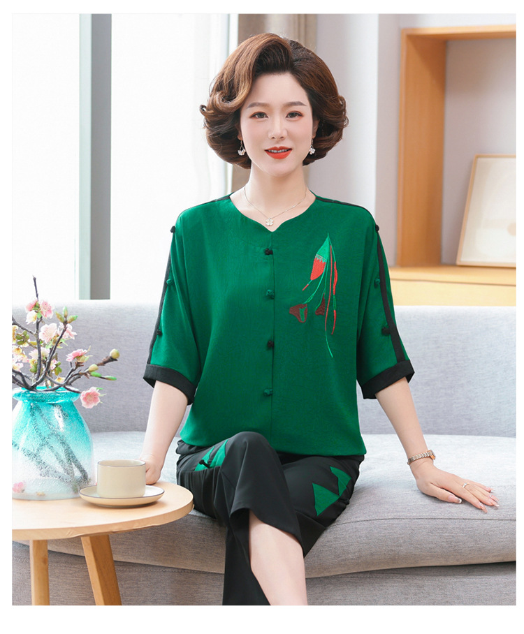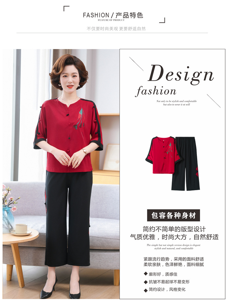 중년 · 노년층 여름옷 할머니 투피스 노부인복 60 세 70 세 어머니의 여름 세트