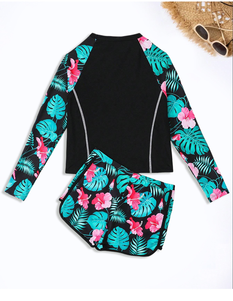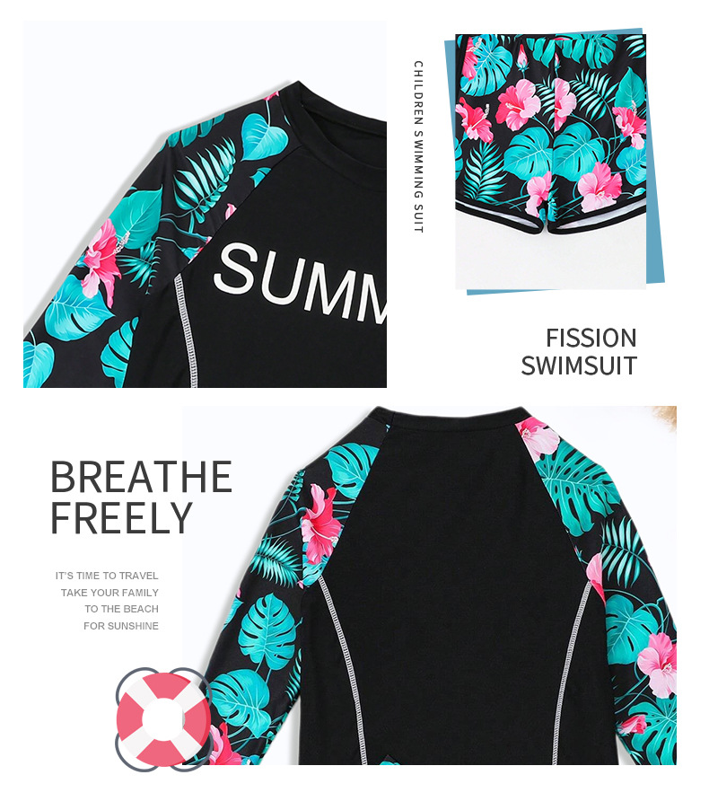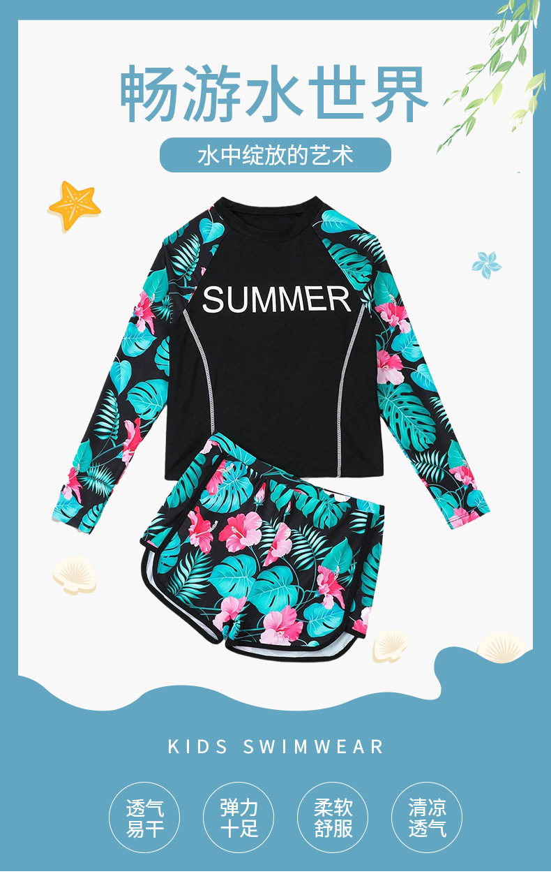 2024 새로운 여자 수영복 분할 어린이 수영복 긴 소매 반바지 세트 중대형 어린이를위한 2 피스 국경 수영복스토어 가기
