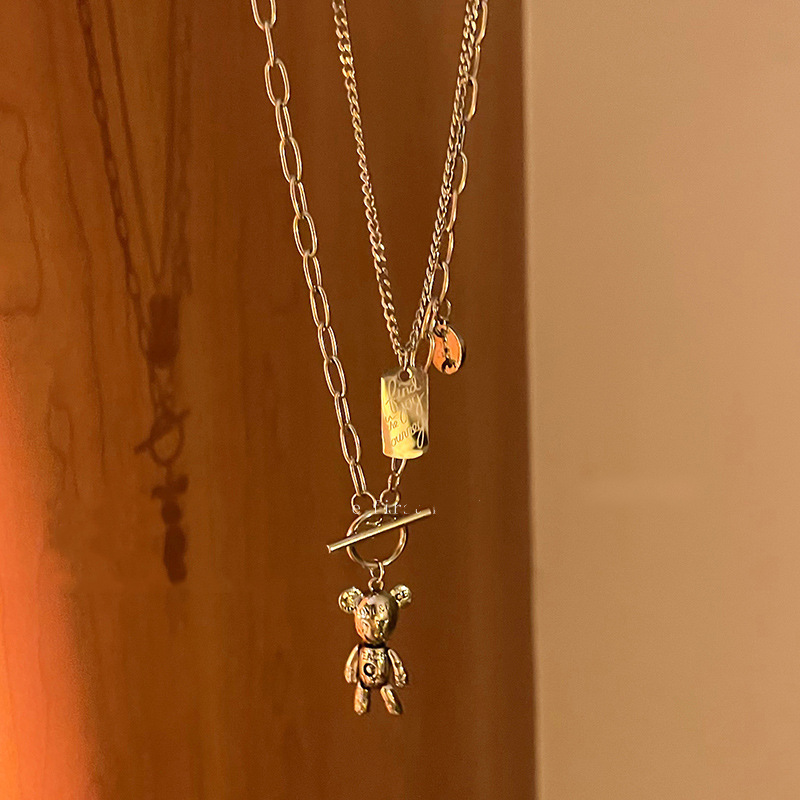 달콤한 쿨 베어 더블 레이어 올 매치 롱 스웨터 체인 여성 라이트 럭셔리 틈새 디자인 센스 하이 엔드 하이 스트리트 패션 남성용 목걸이스토어 가기