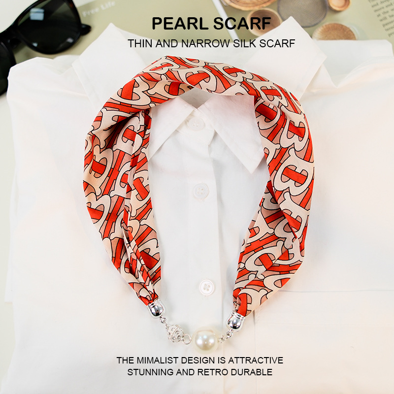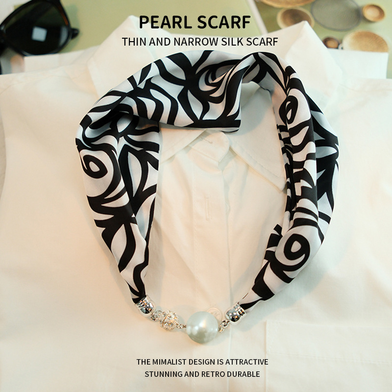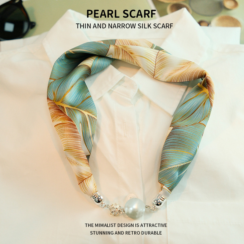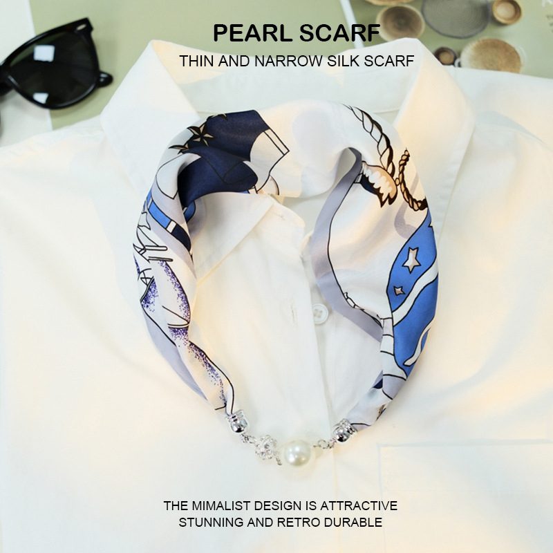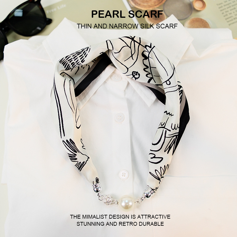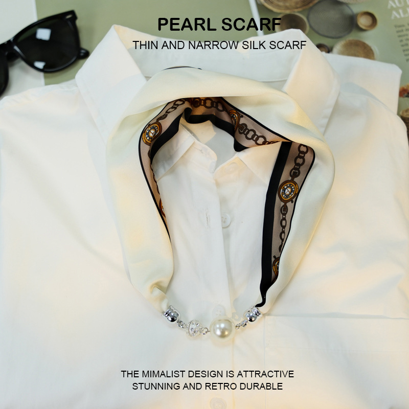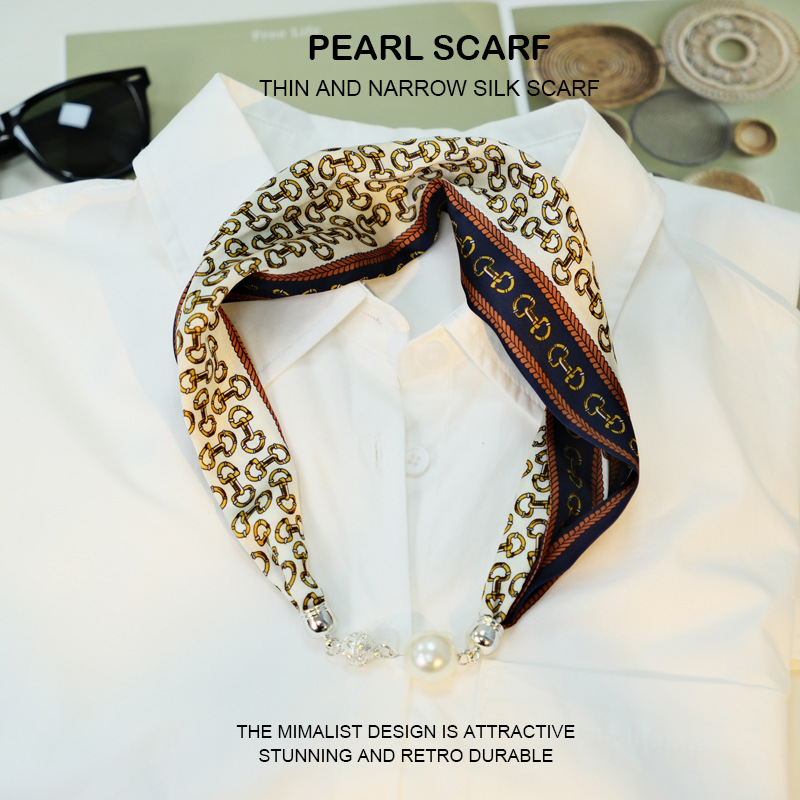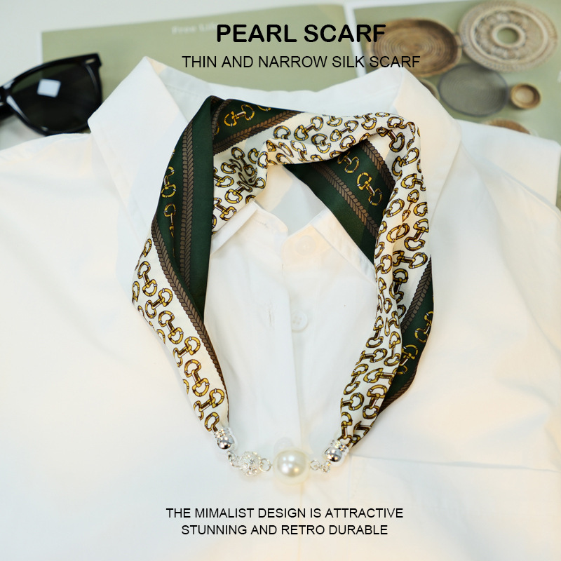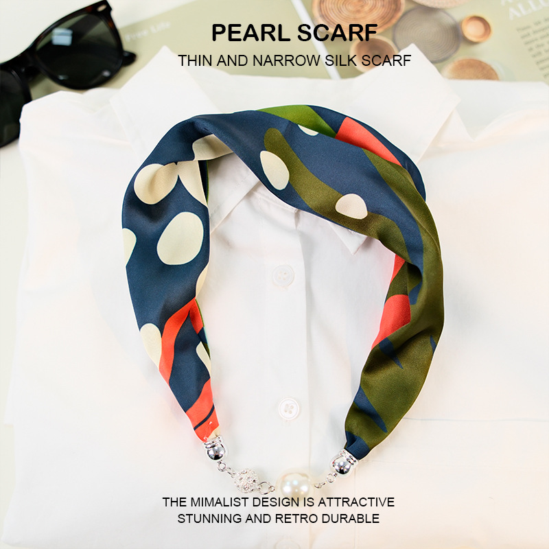 새로운 게으른 자기 버클 실크 스카프 고급 쇄골 체인 여성용 스카프 올 매치 스카프 목 진주 목걸이 도매