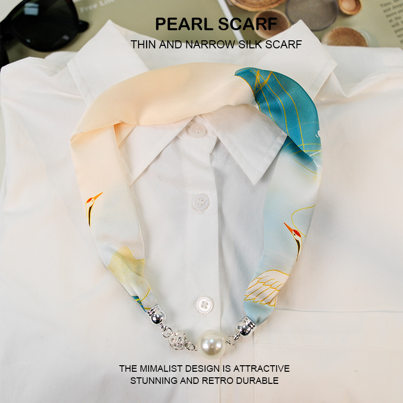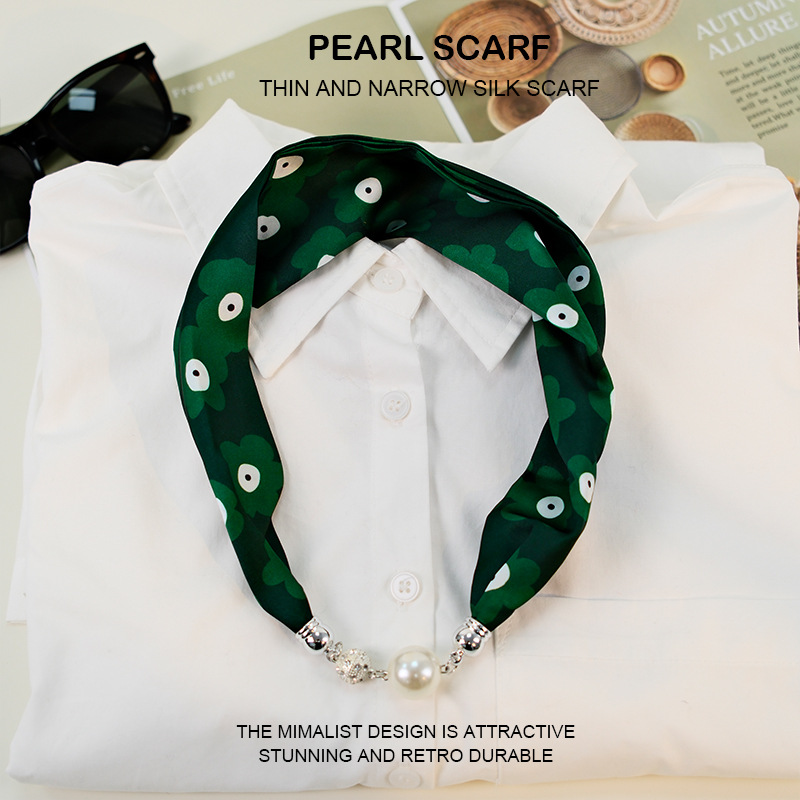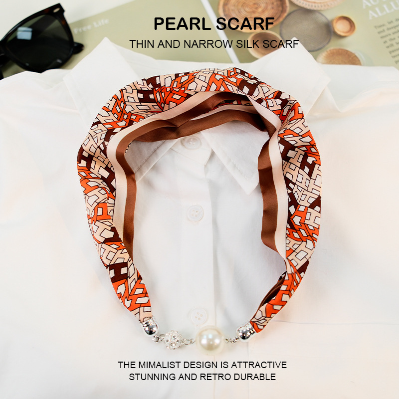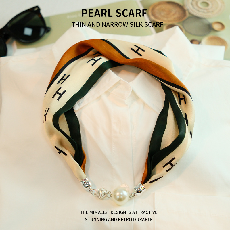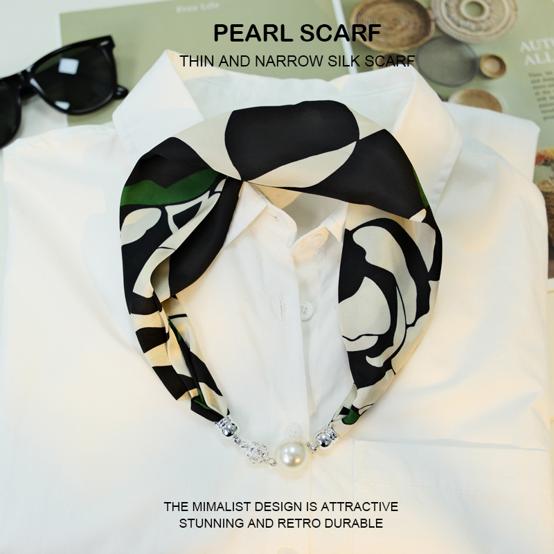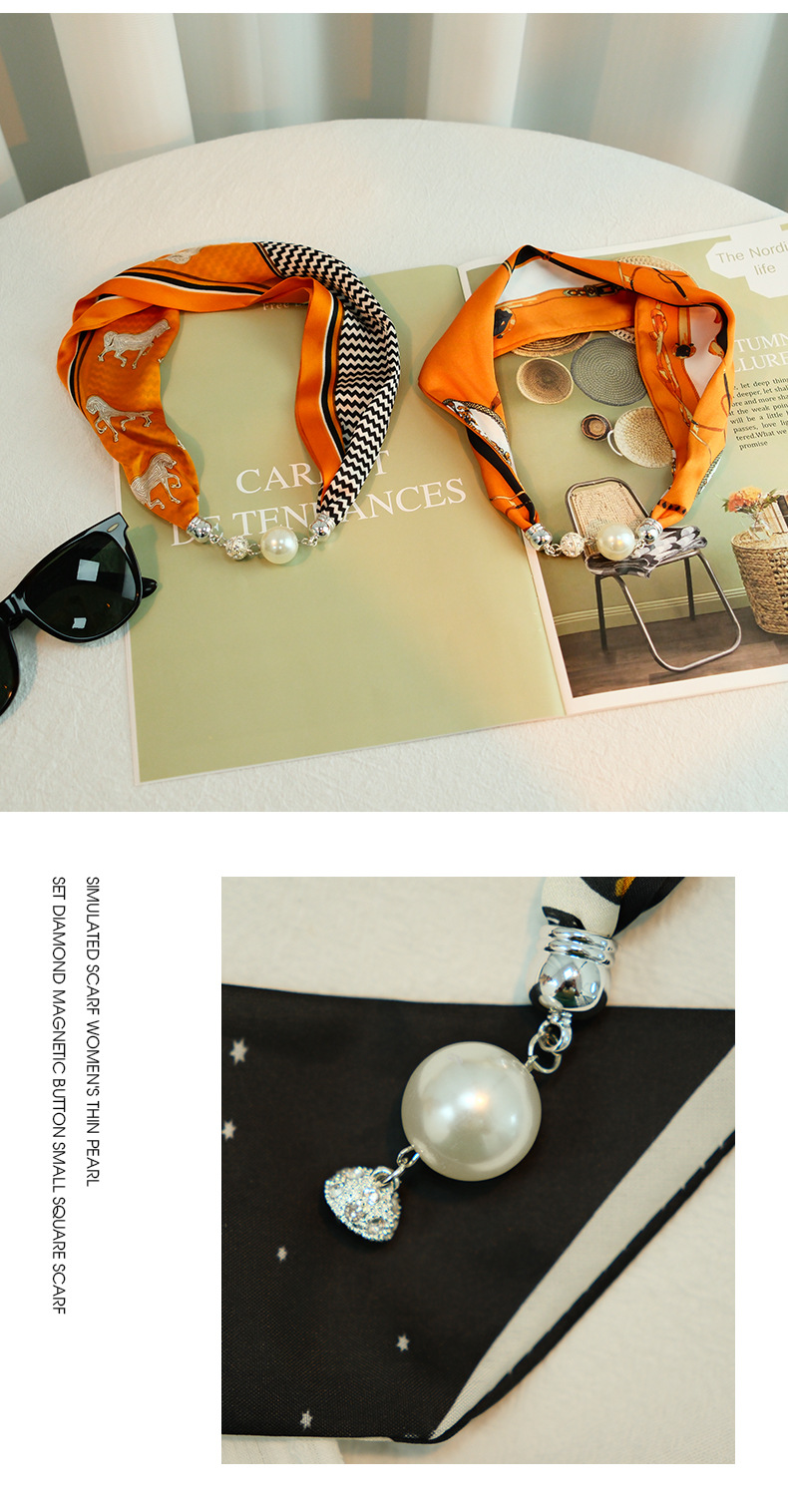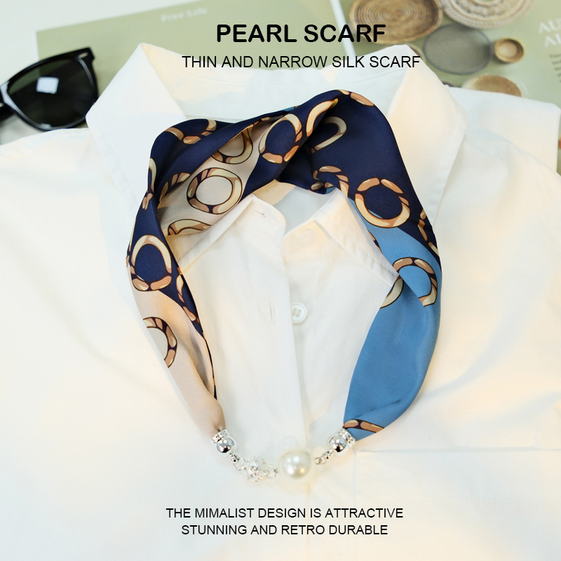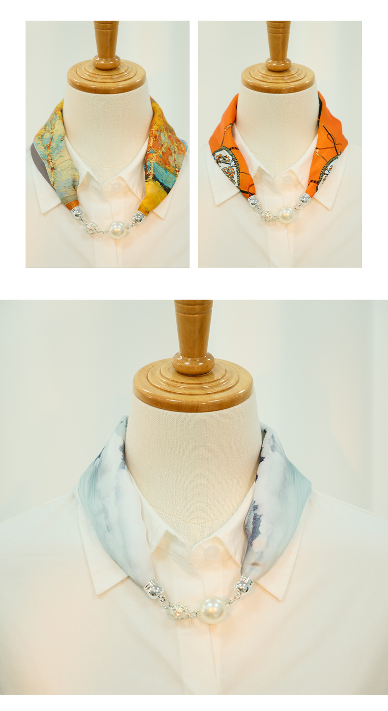 새로운 게으른 자기 버클 실크 스카프 고급 쇄골 체인 여성용 스카프 올 매치 스카프 목 진주 목걸이 도매
