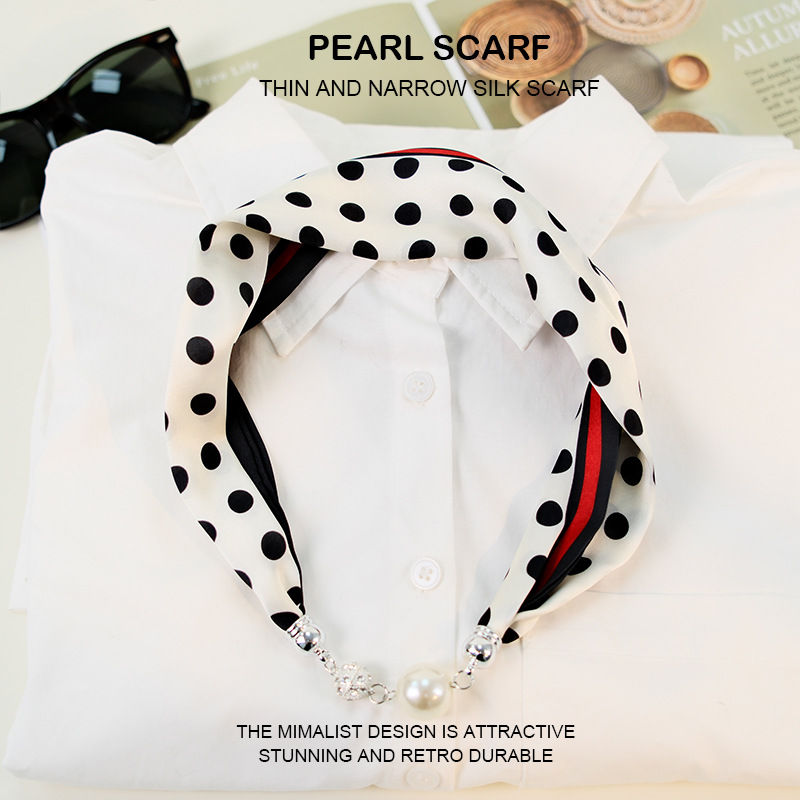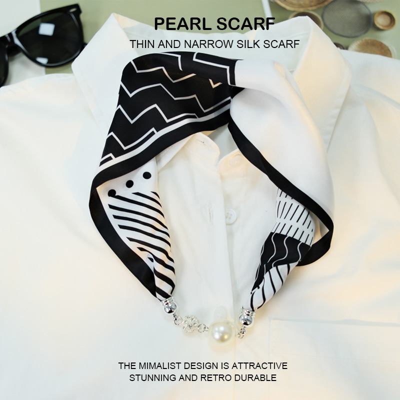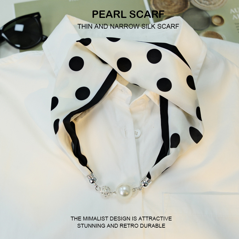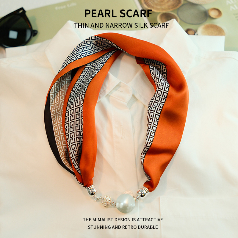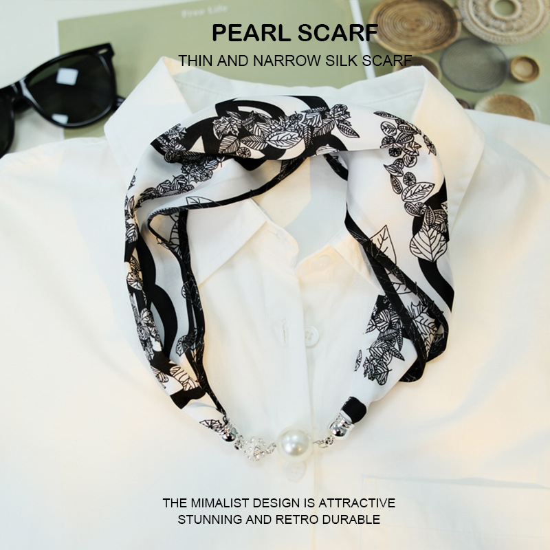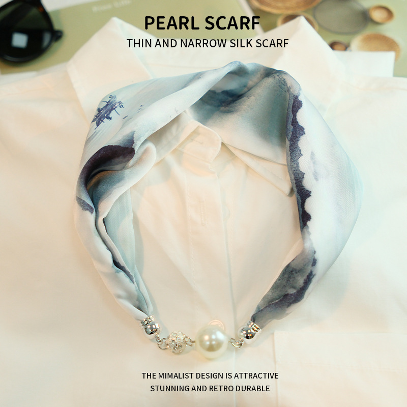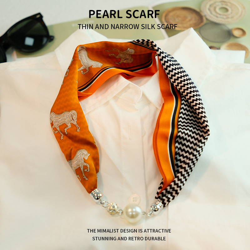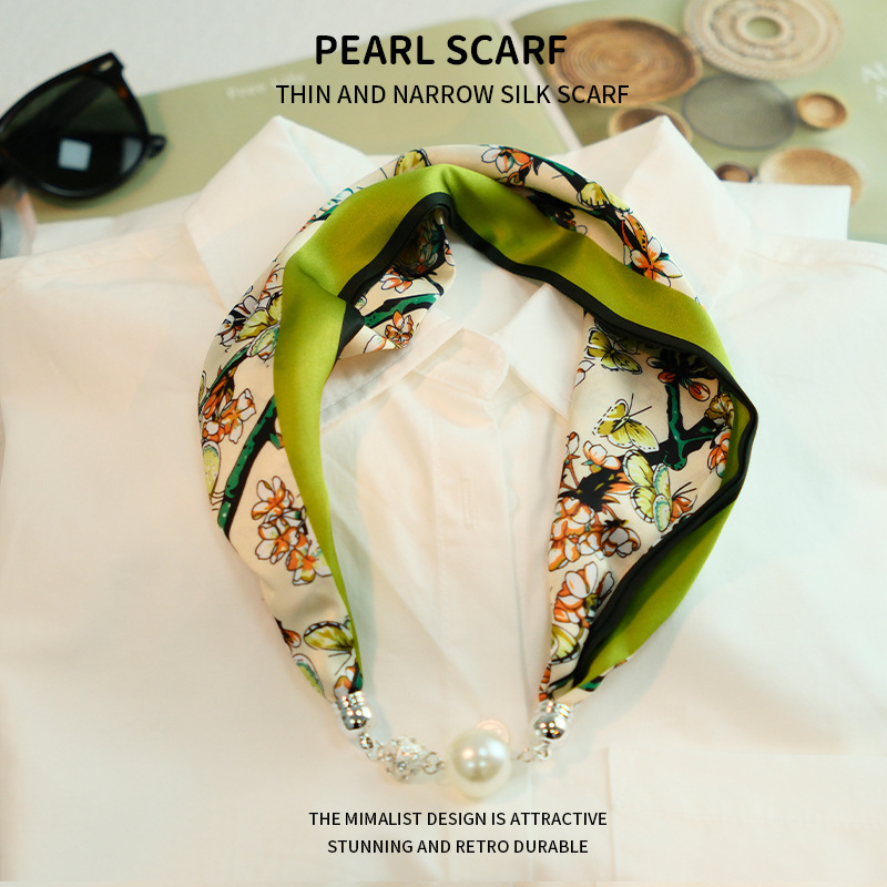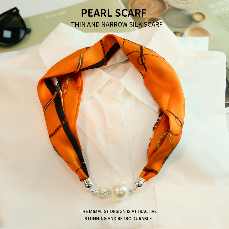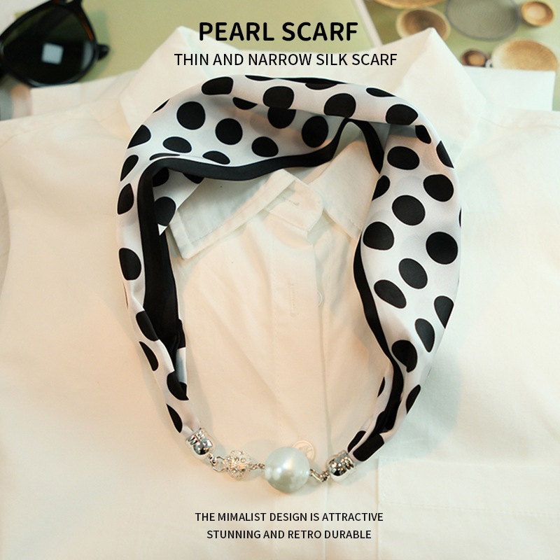 새로운 게으른 자기 버클 실크 스카프 고급 쇄골 체인 여성용 스카프 올 매치 스카프 목 진주 목걸이 도매