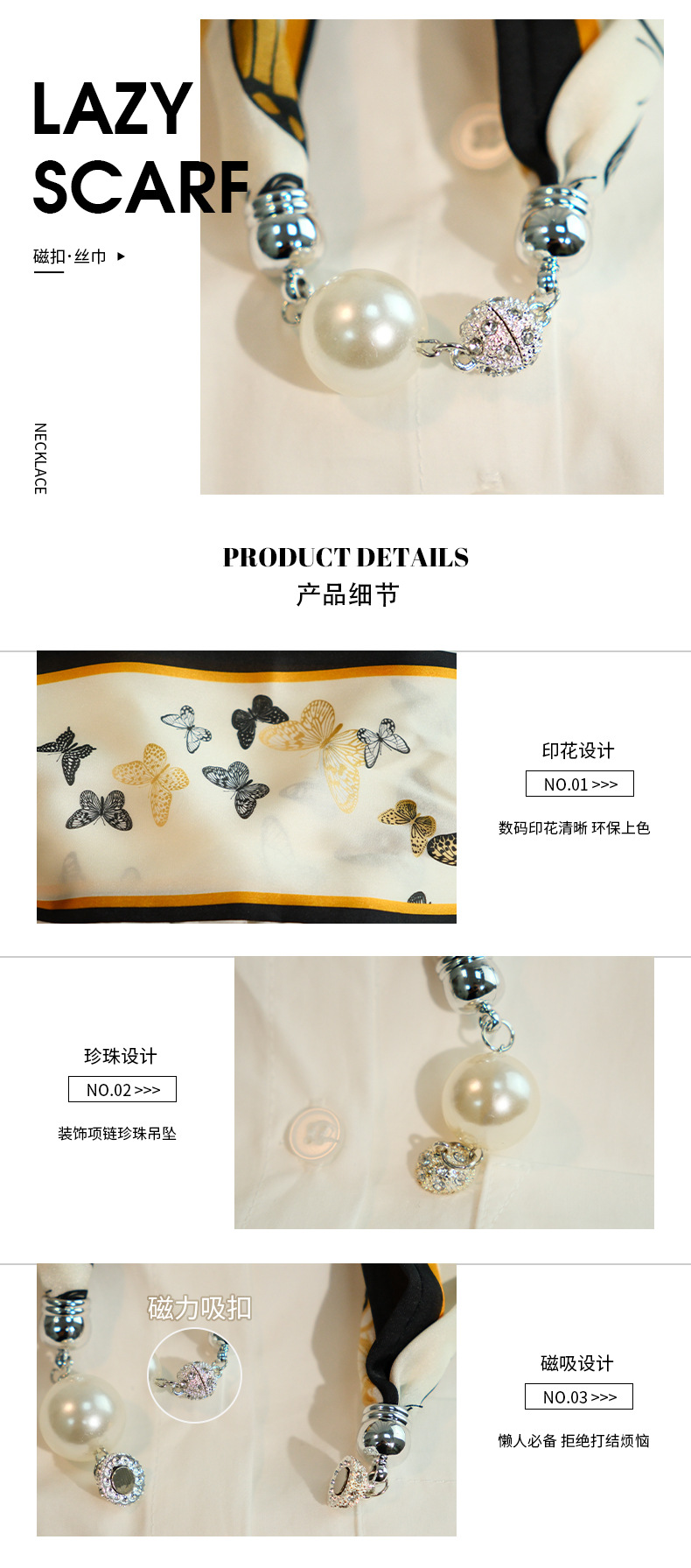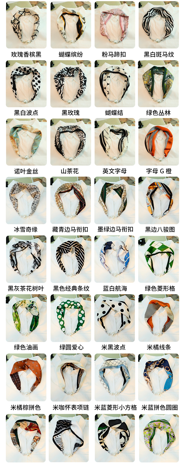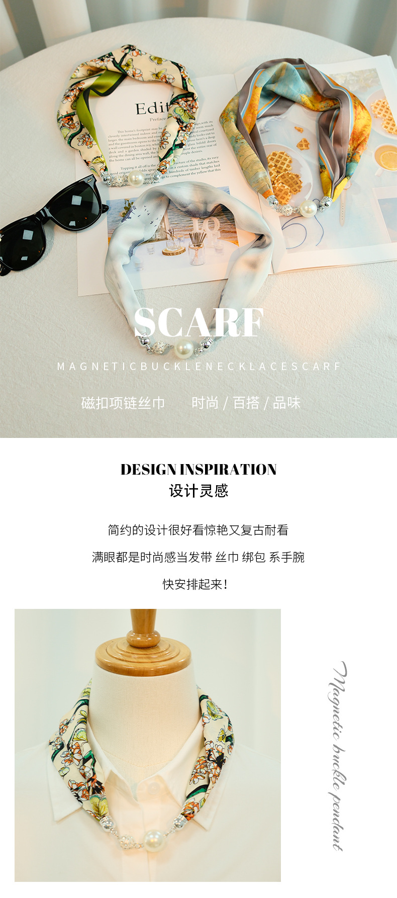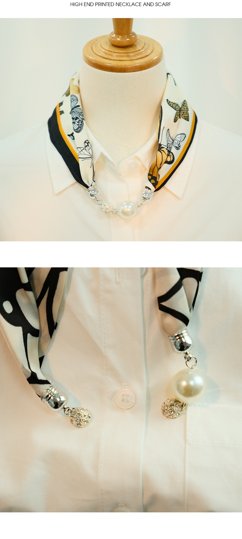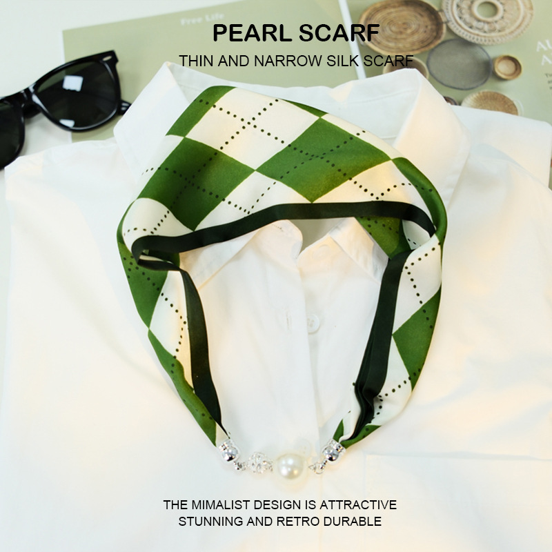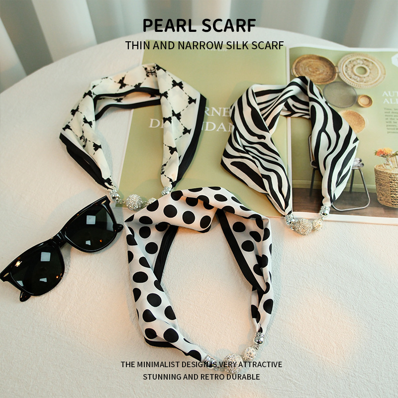 새로운 게으른 자기 버클 실크 스카프 고급 쇄골 체인 여성용 스카프 올 매치 스카프 목 진주 목걸이 도매