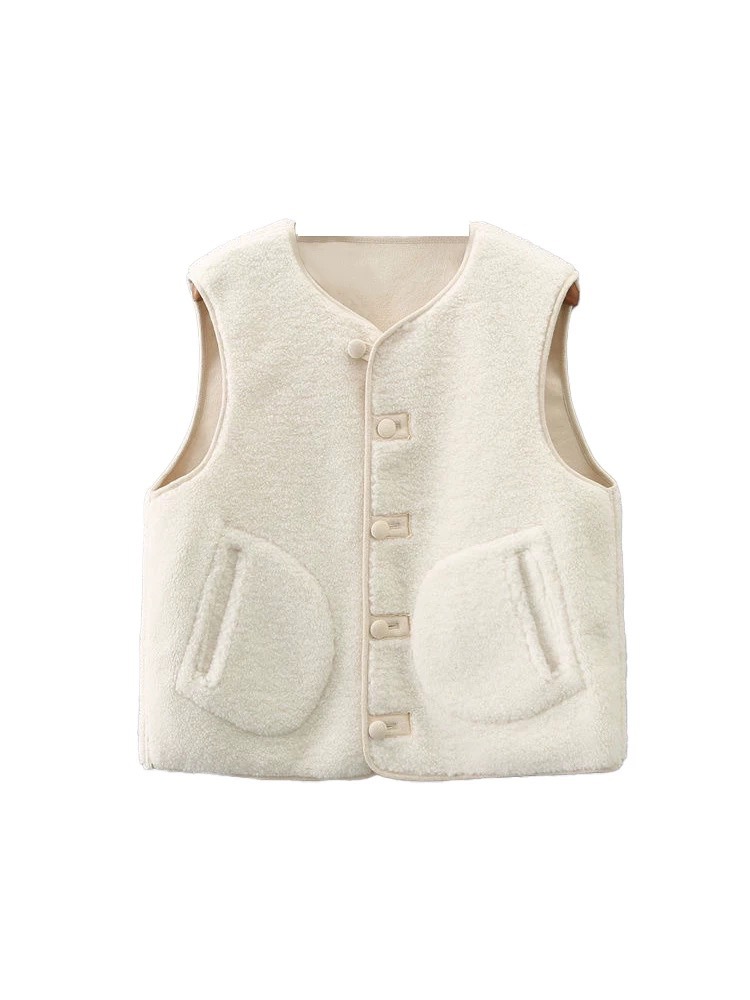 2025 가을 대형 여성복 패션 버튼 V넥 싱글 브레스티드 양면 착용 가능한 골드 벨벳 조끼 양털 재킷스토어 가기