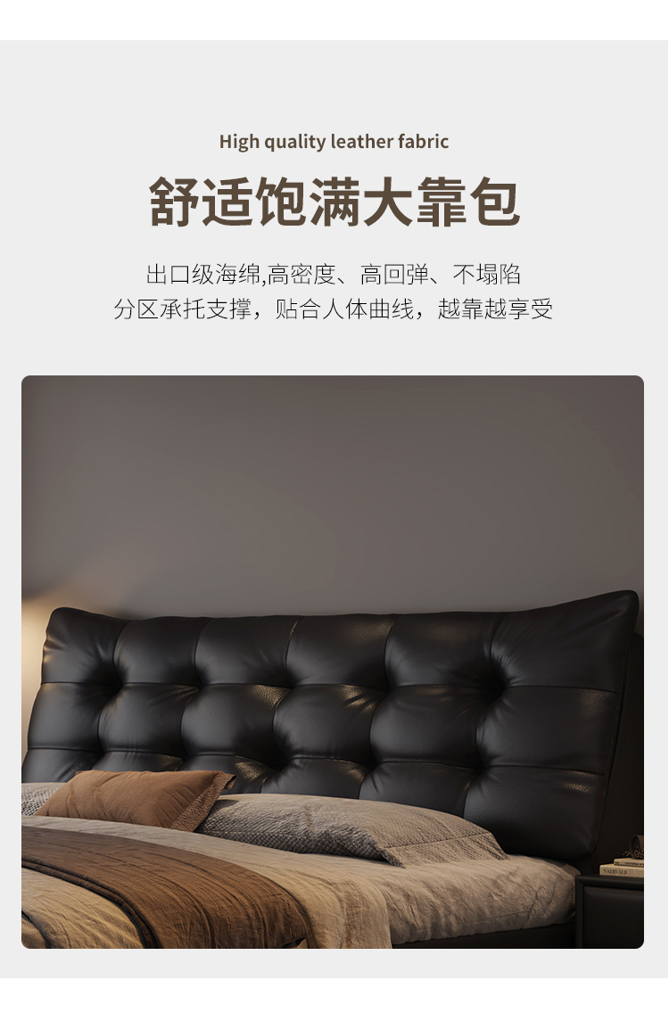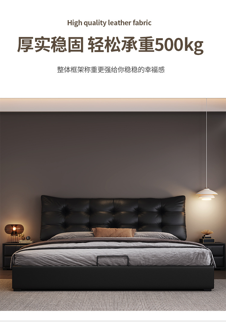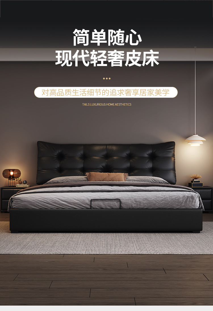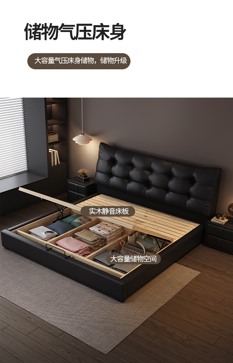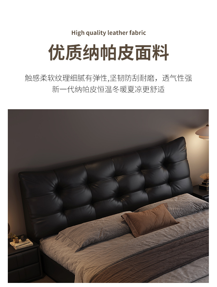 현대 조명 럭셔리 더블 침대 1.8m 나파 가죽 침대 1.5m 작은 아파트 마스터 침실 이탈리아 미니멀리스트 스토리지 소프트 베드