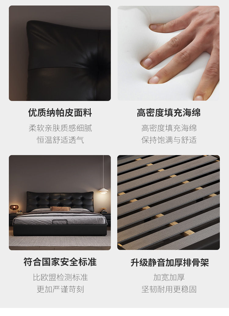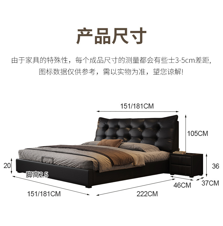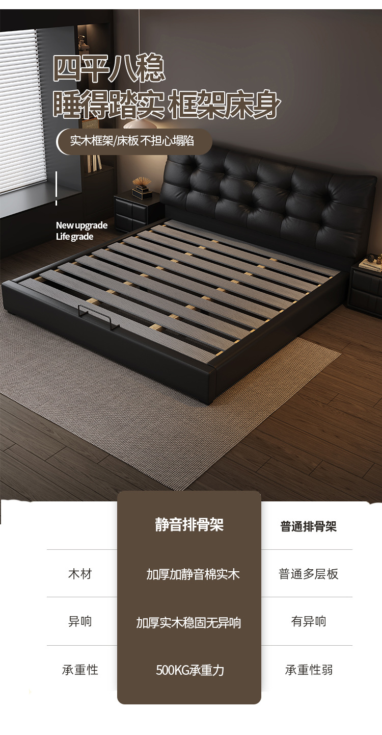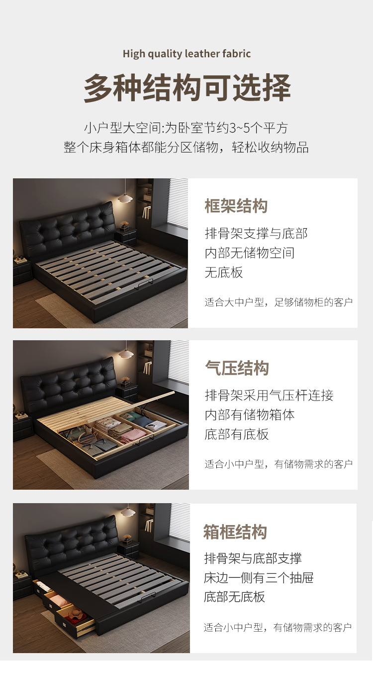 현대 조명 럭셔리 더블 침대 1.8m 나파 가죽 침대 1.5m 작은 아파트 마스터 침실 이탈리아 미니멀리스트 스토리지 소프트 베드