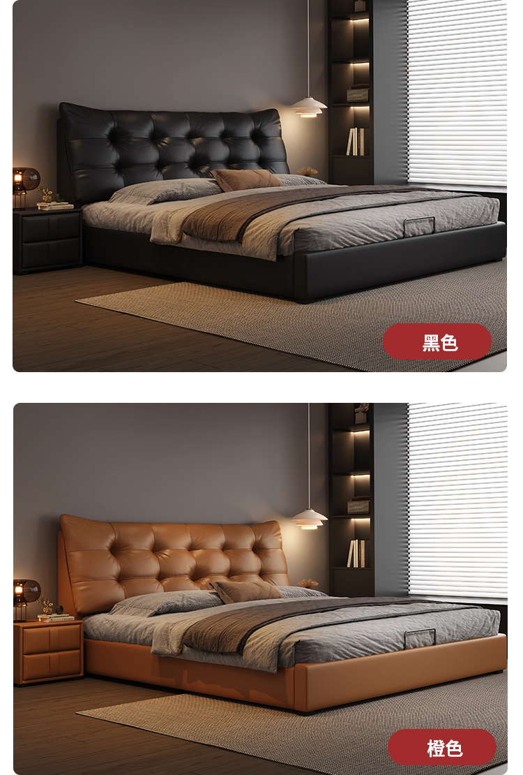 • 가죽 침대 2 캐비닛