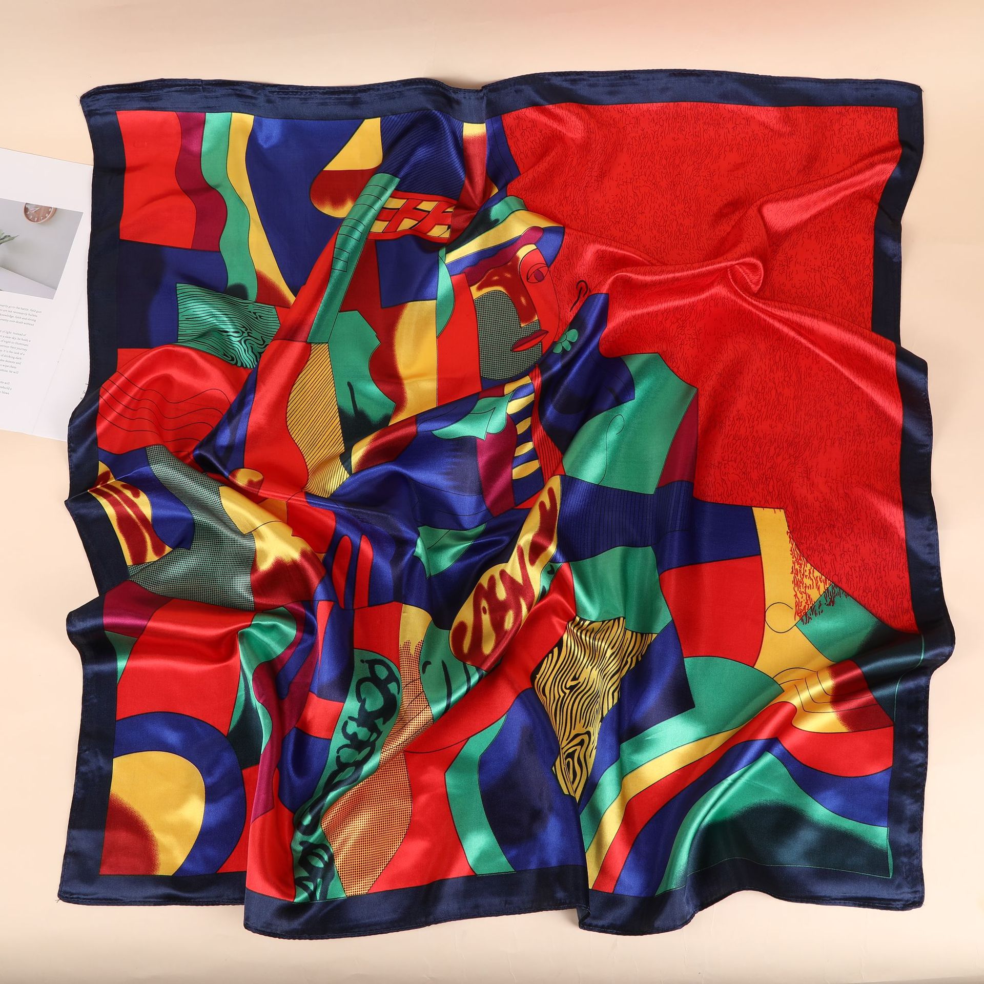 피카소 유화 인쇄 실크 스카프 고급 작은 꽃 무늬 새틴 사각형 스카프 소녀 캐주얼 얇은 스카프