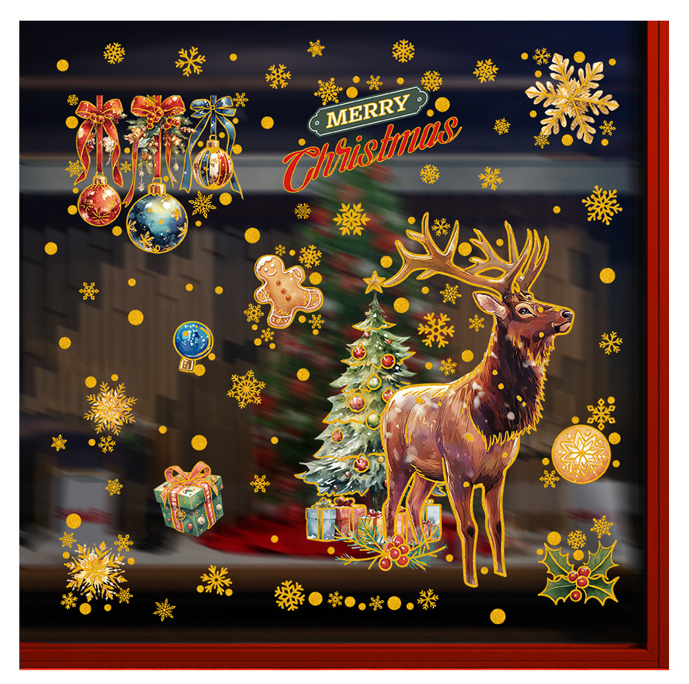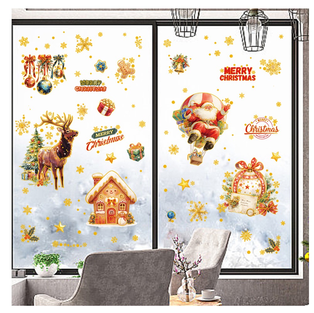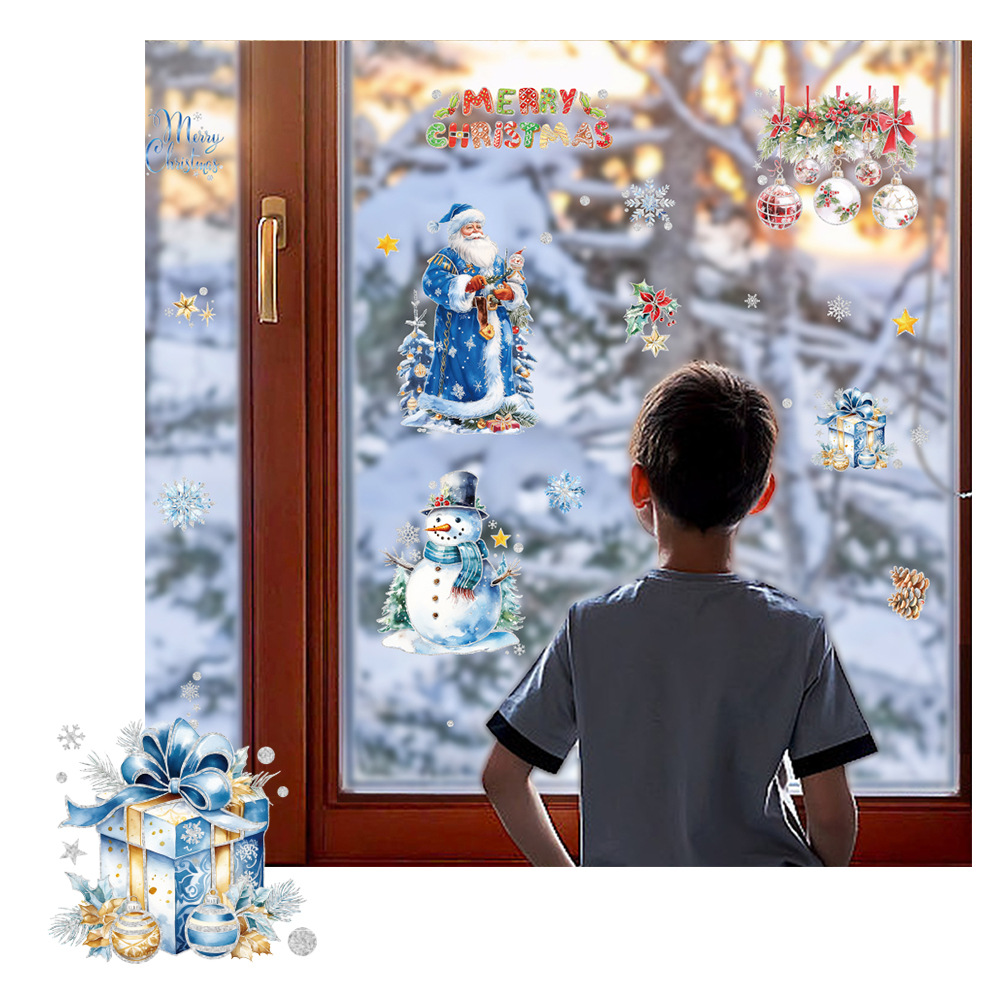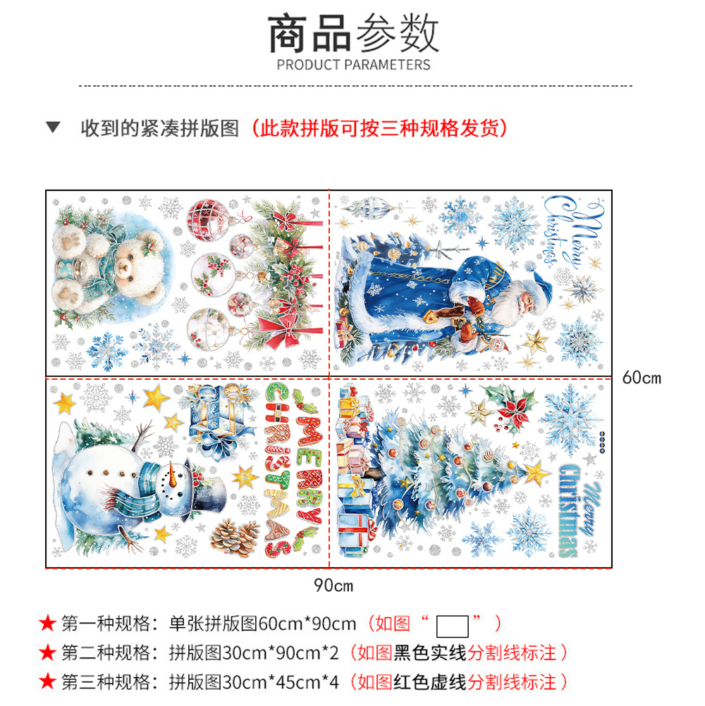 새로운 산타클로스 유리창 스티커, 은가루 장식 스티커, 눈사람, 곰, 크리스마스 트리, 탈부착 가능한 정전기 스티커