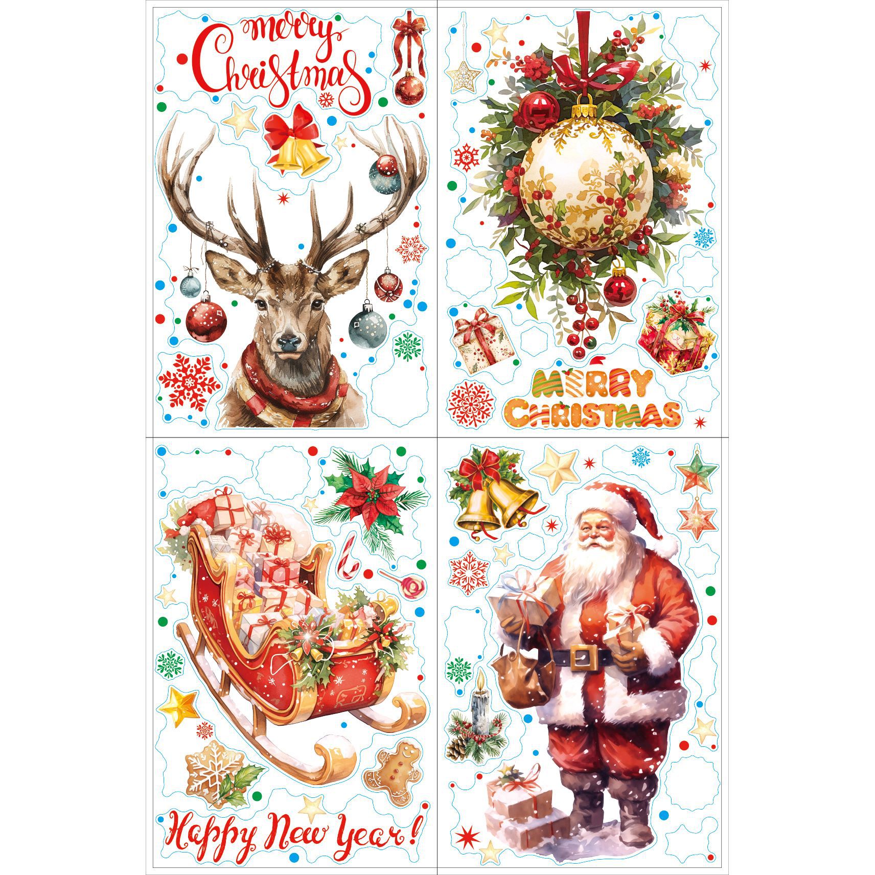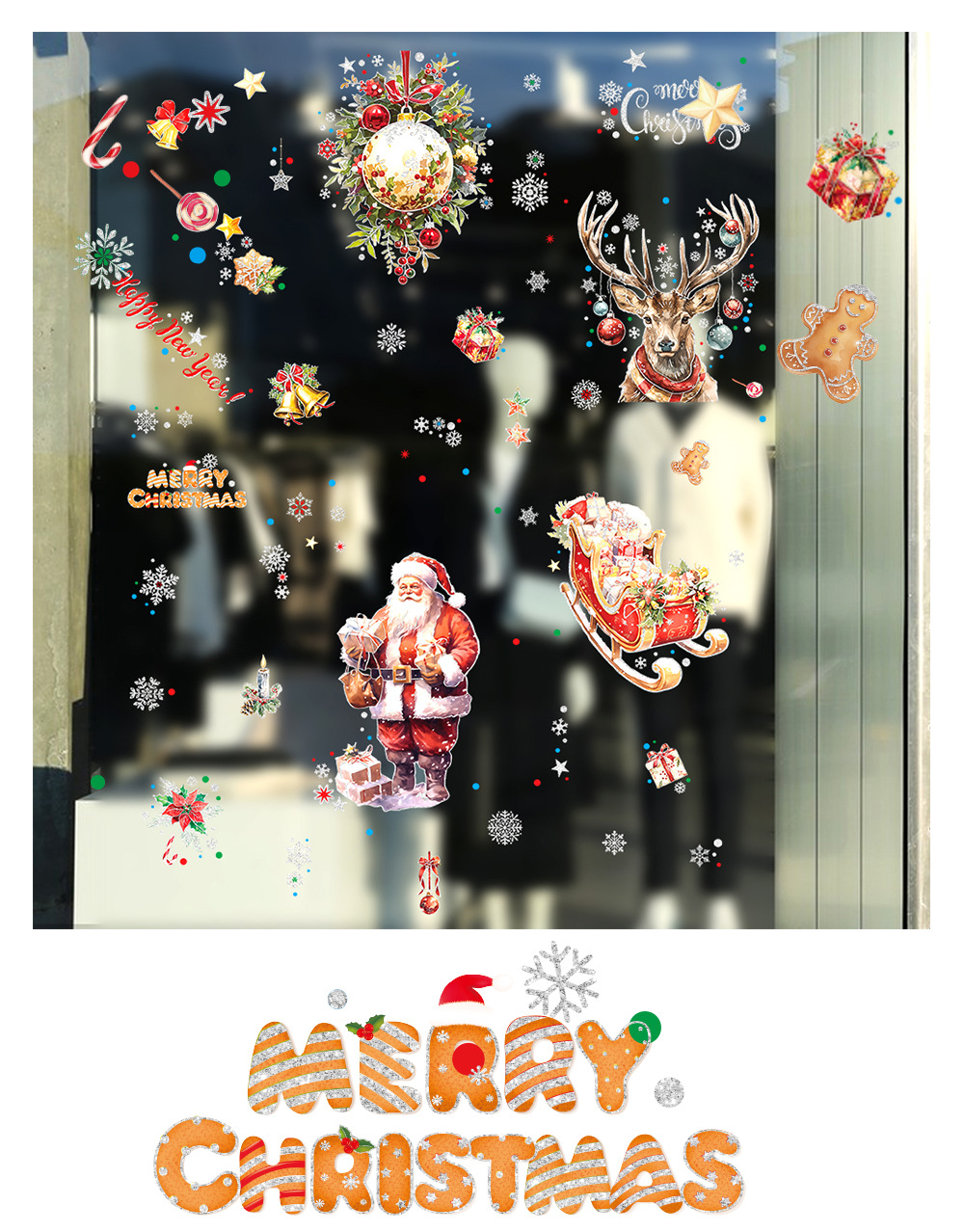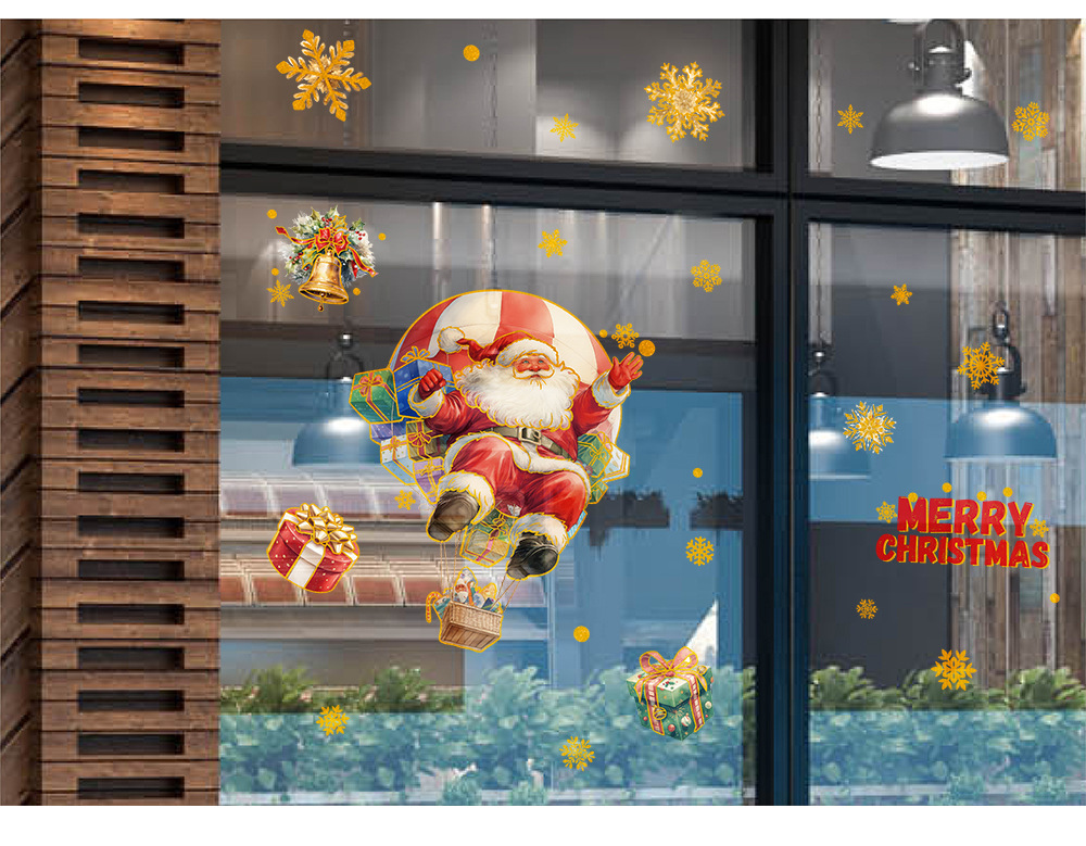 새로운 산타클로스 유리창 스티커, 은가루 장식 스티커, 눈사람, 곰, 크리스마스 트리, 탈부착 가능한 정전기 스티커