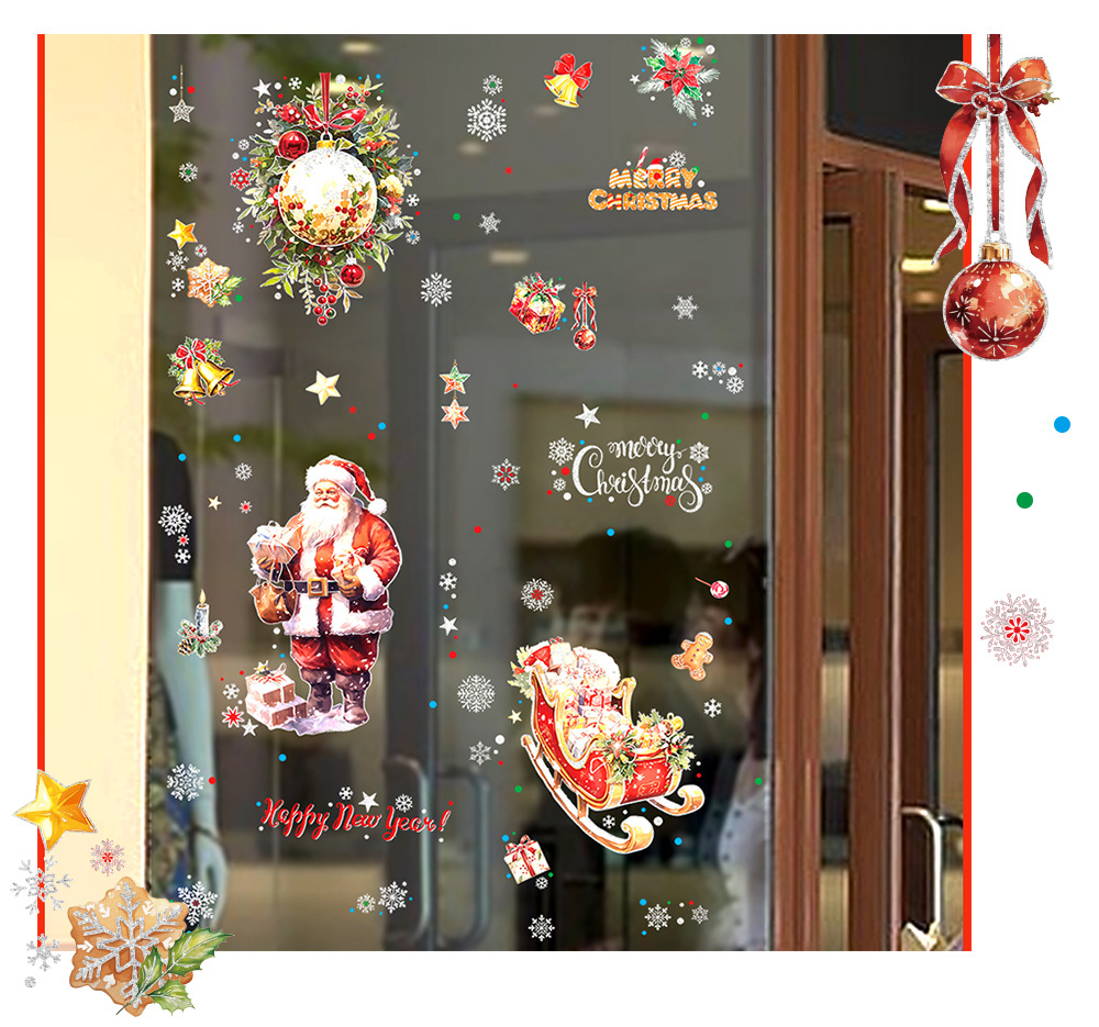 새로운 산타클로스 유리창 스티커, 은가루 장식 스티커, 눈사람, 곰, 크리스마스 트리, 탈부착 가능한 정전기 스티커스토어 가기