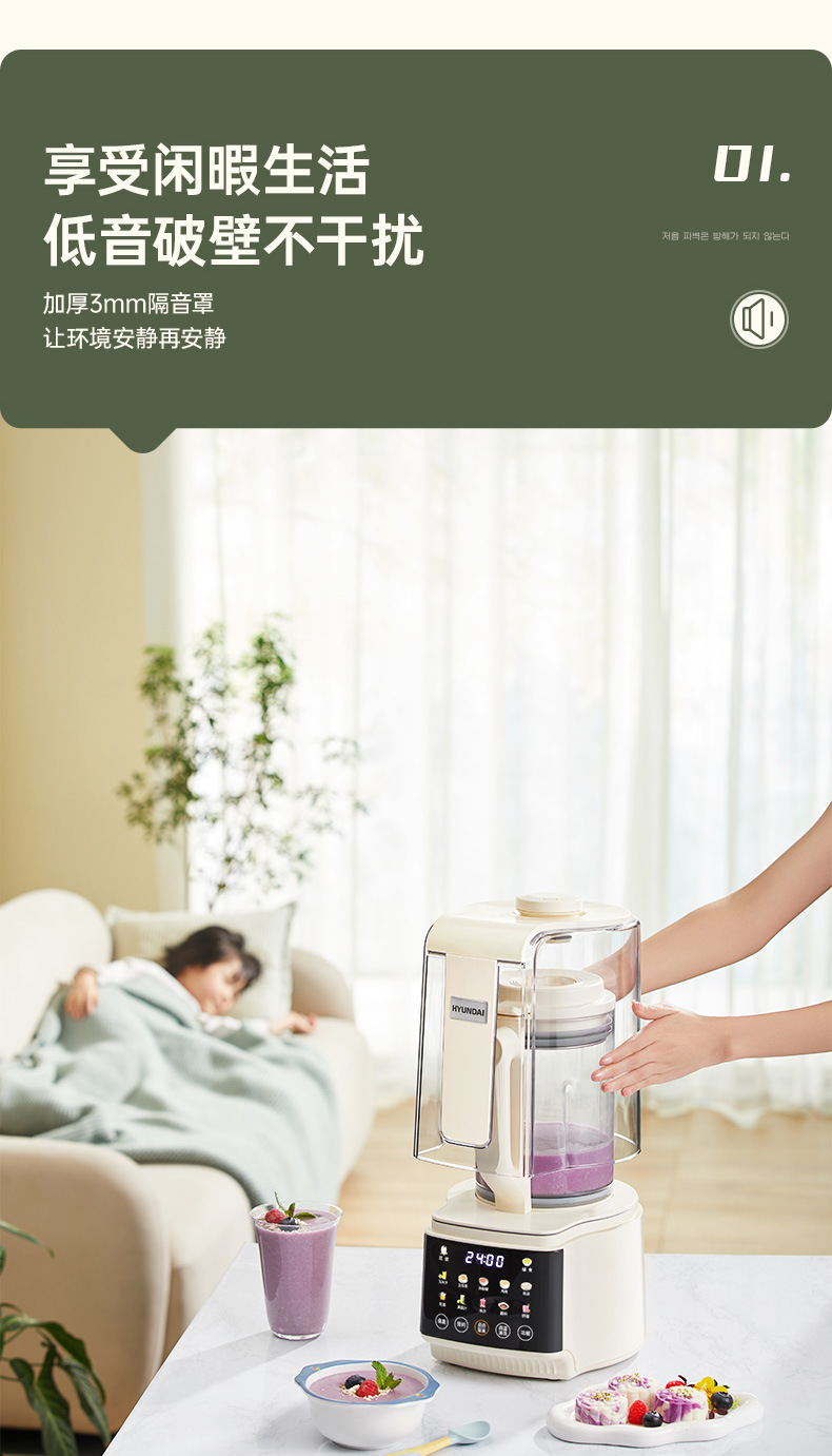 한국 현대 벽 깨는 기계 커버 라이트 사운드 소프트 사운드 콩 우유 요리 기계 벽 깨는 기계 빛 소리 대두유를 가진 대용량스토어 가기