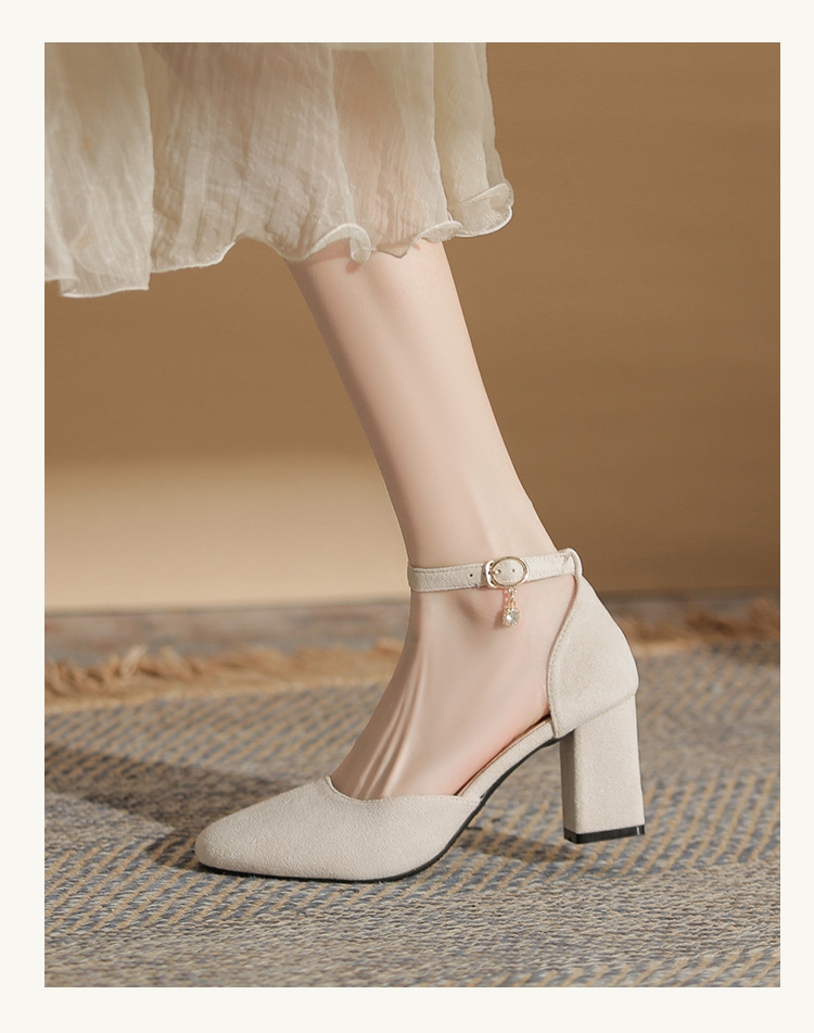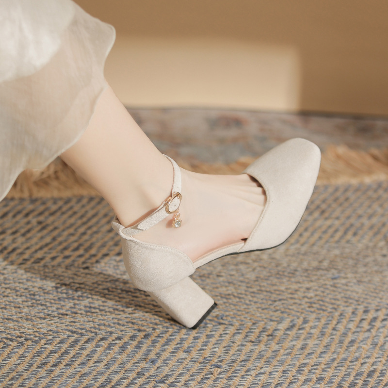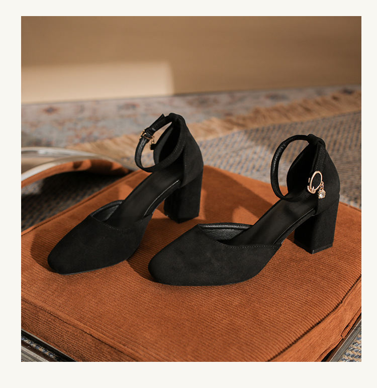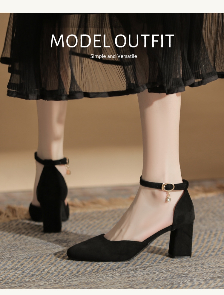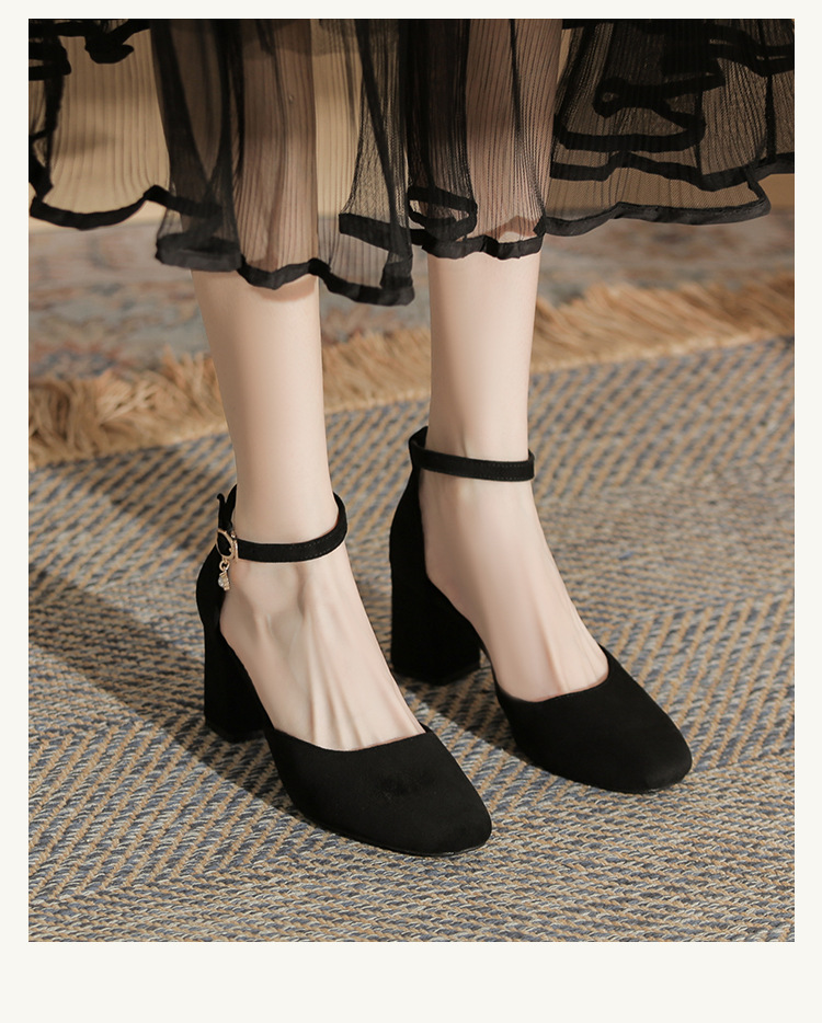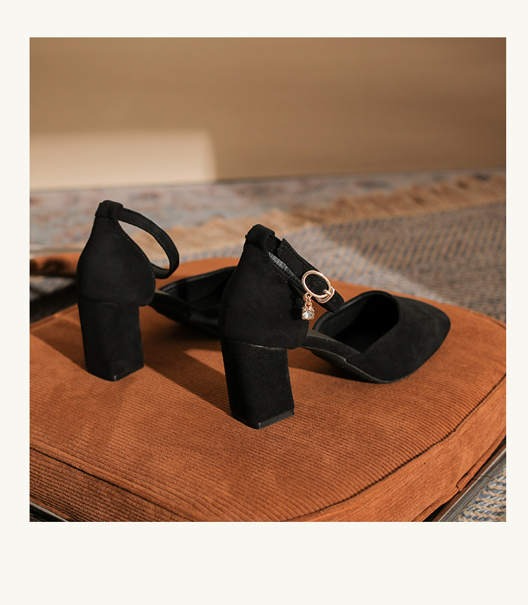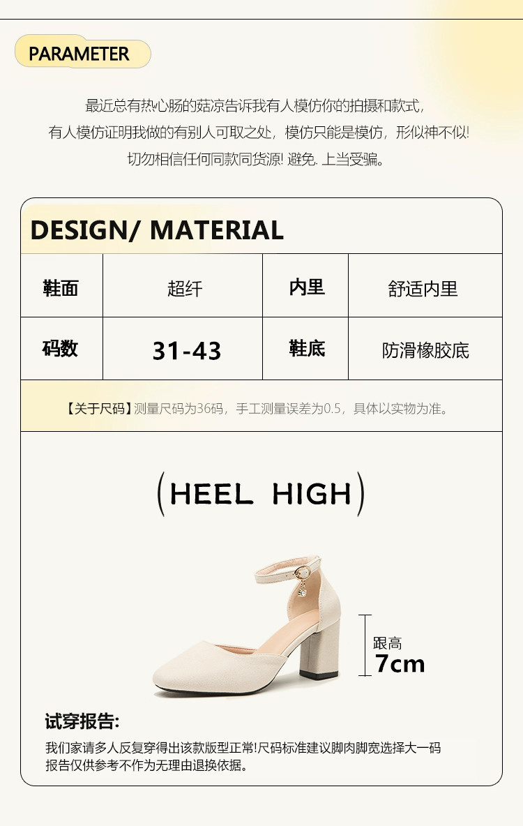 2024 새로운 스퀘어 헤드 두꺼운 힐 하이힐 플러스 사이즈 플러스 뚱뚱한 얕은 입 버클 여성 싱글 슈즈 올매치 편안한스토어 가기