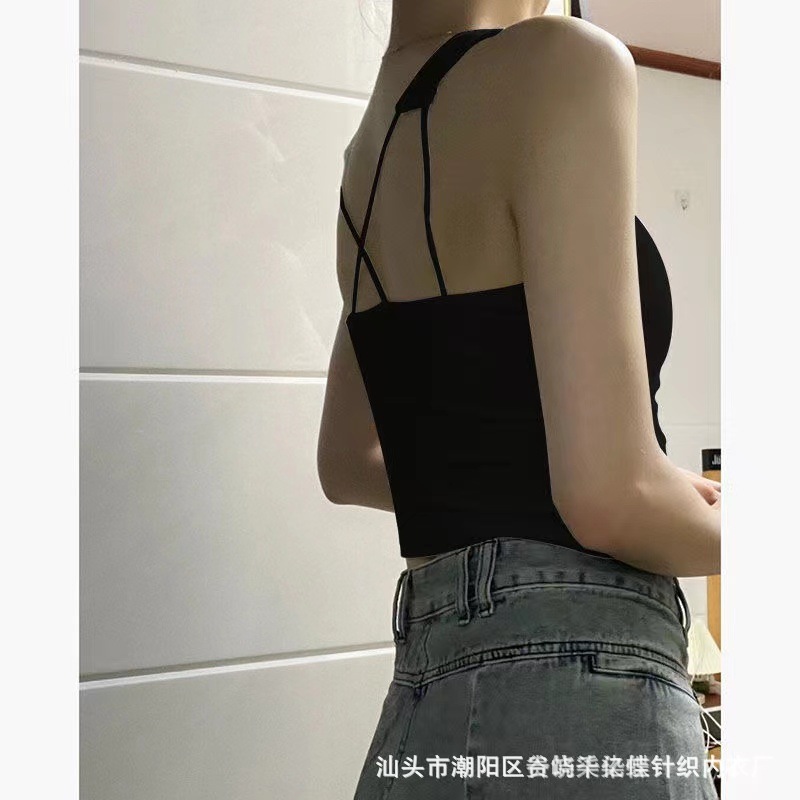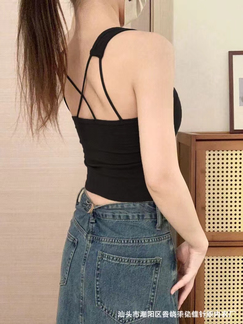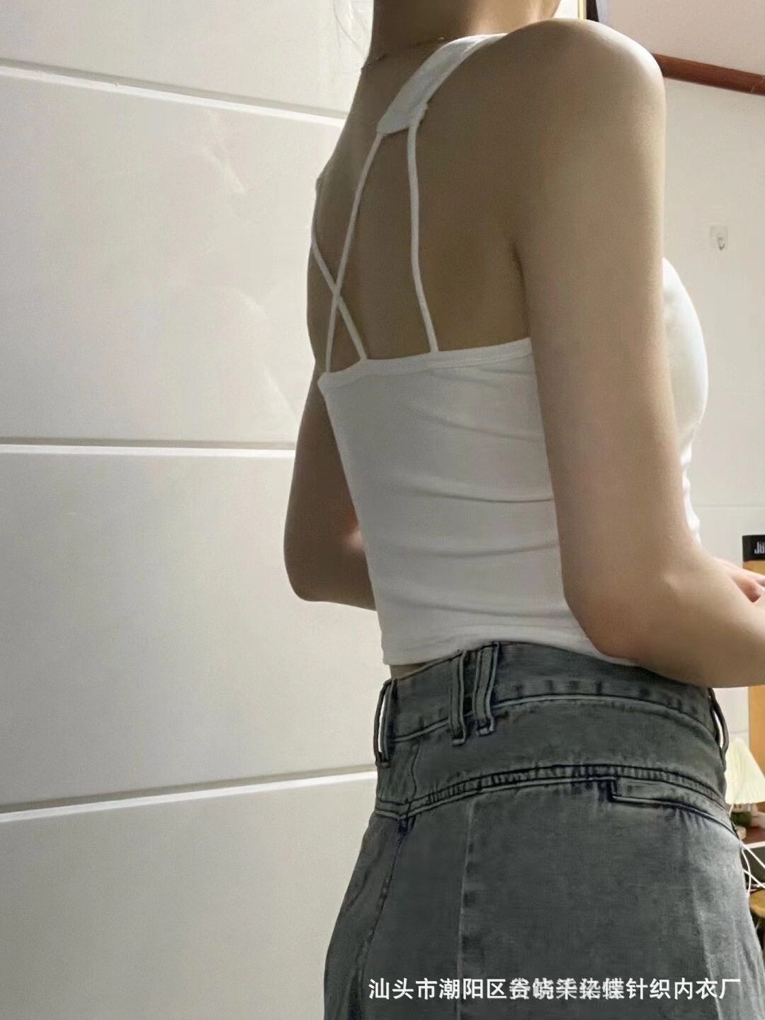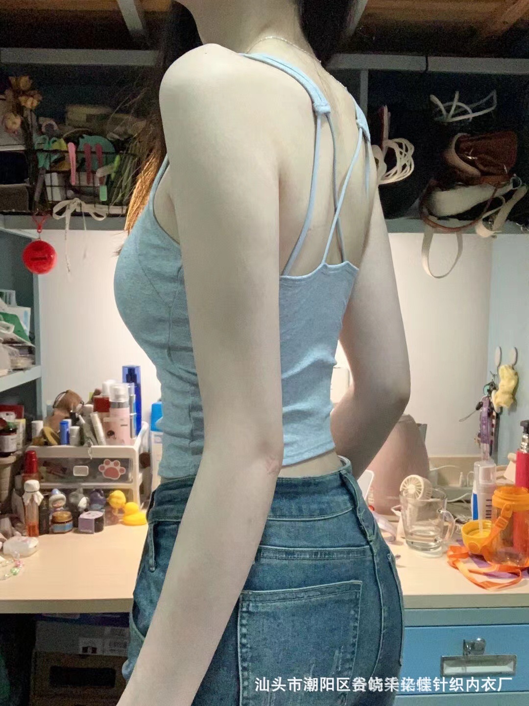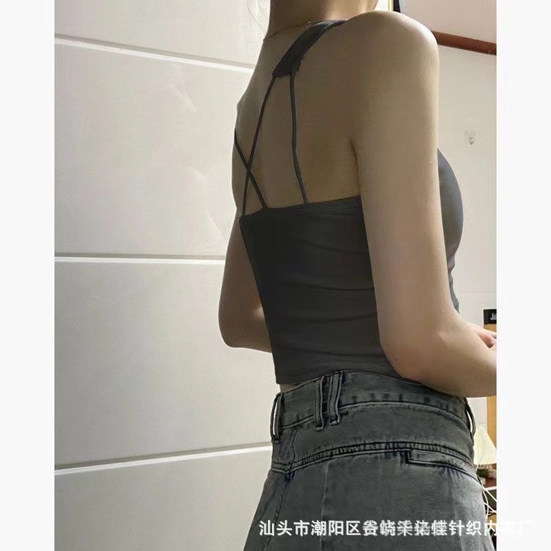 배꼽 짧은면 탑 여성을 착용하기 위해 외부 액세서리 가슴을 덮기 위해 내부 빛을 방지하기 위해 가슴 패드가있는 아름다운 다시 작은 조끼 여성스토어 가기