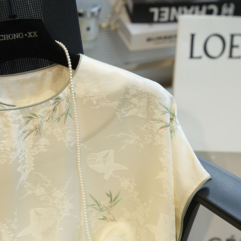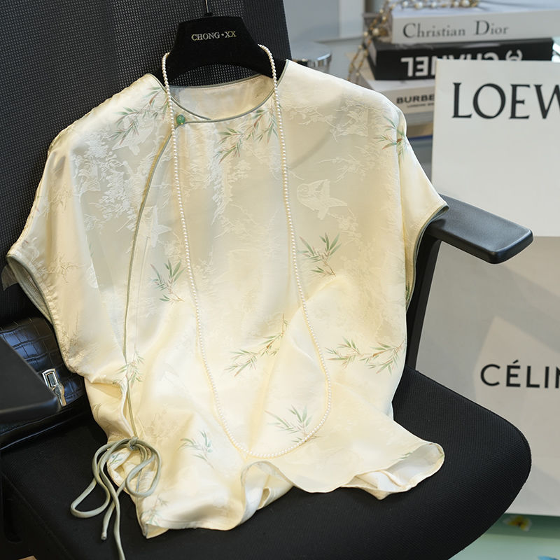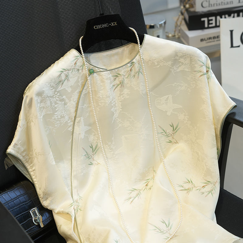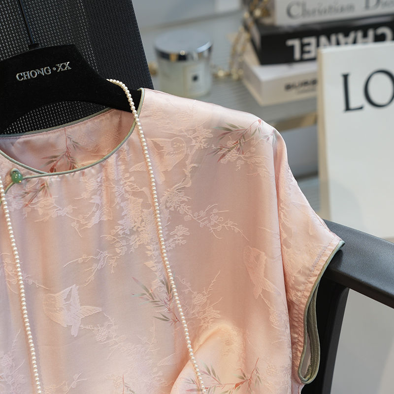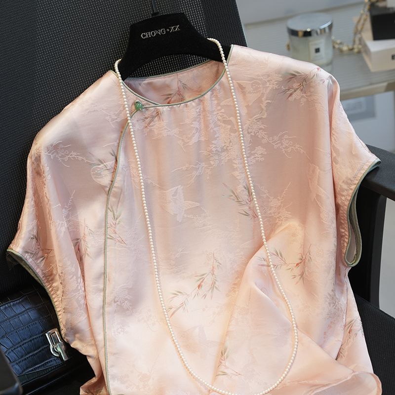 새로운 중국 스타일 국가 스타일 하이 엔드 반팔 소매 셔츠 여자의 2024 여름 새로운 도착 버튼 라운드 넥 티셔츠 탑