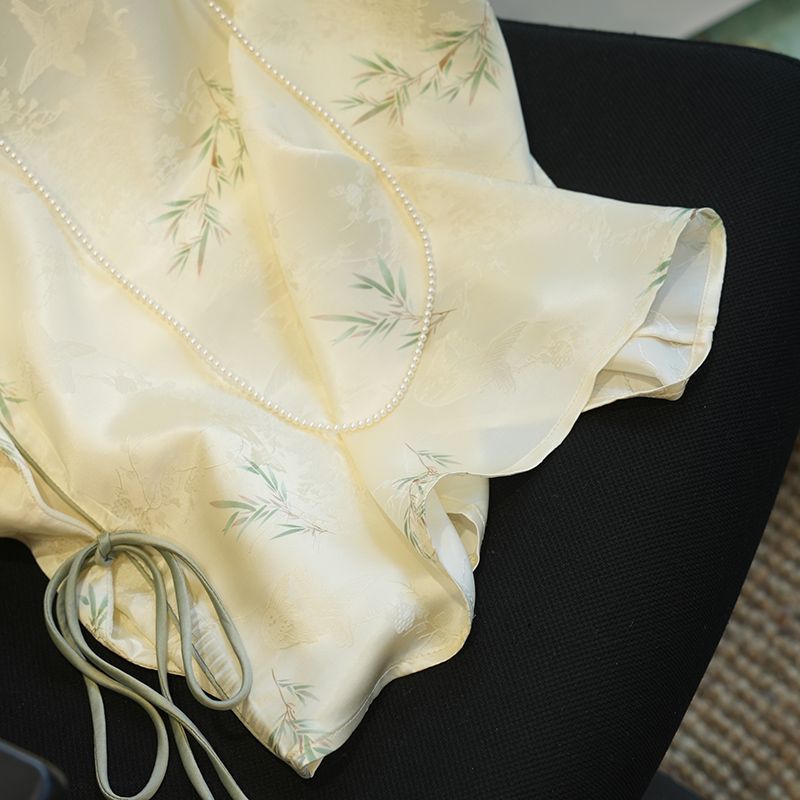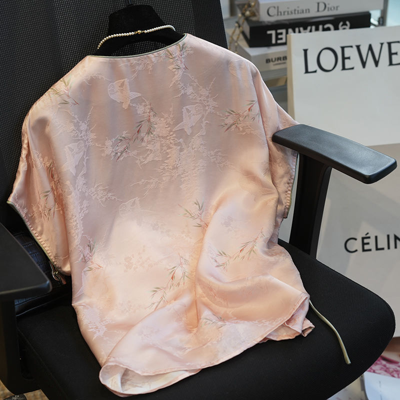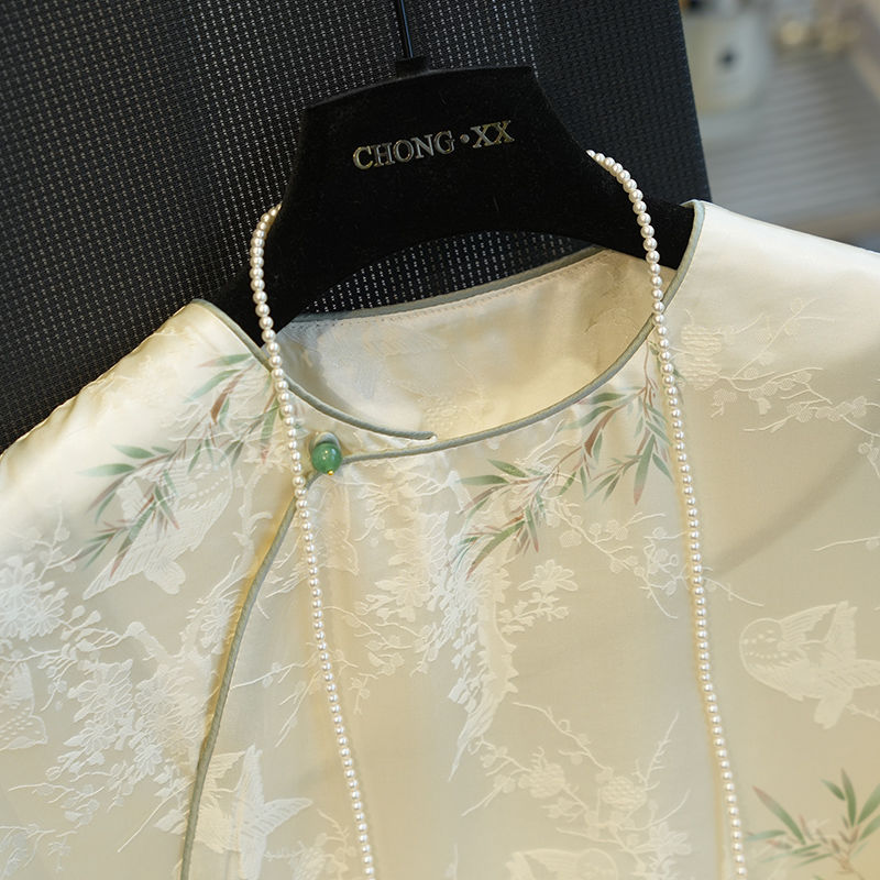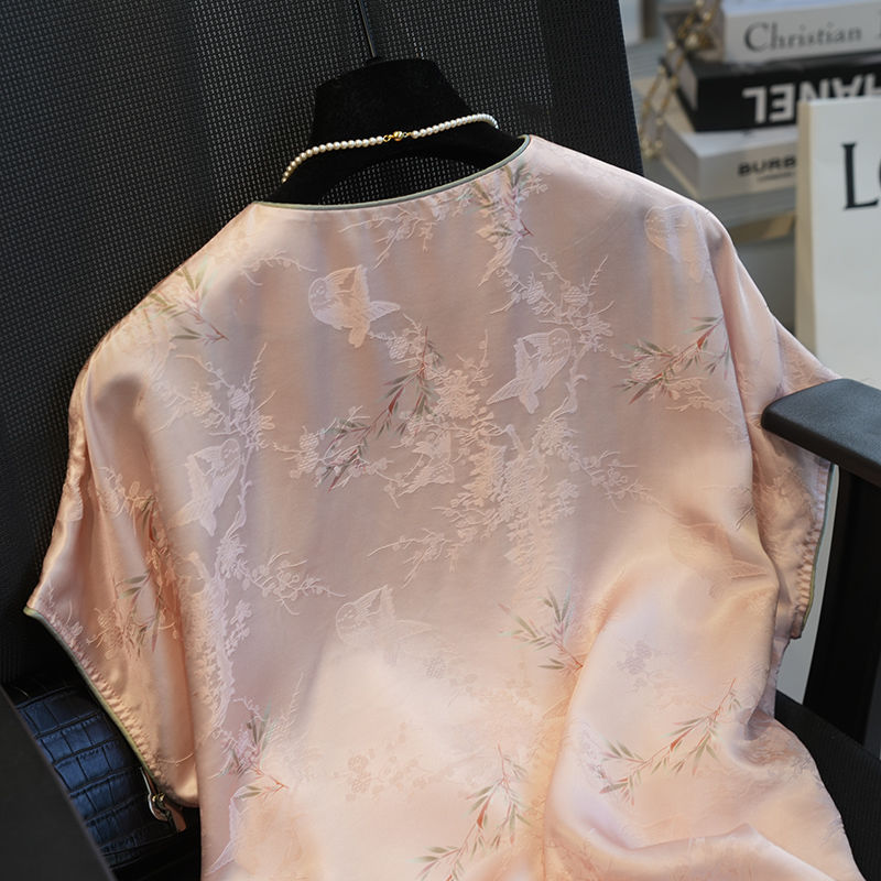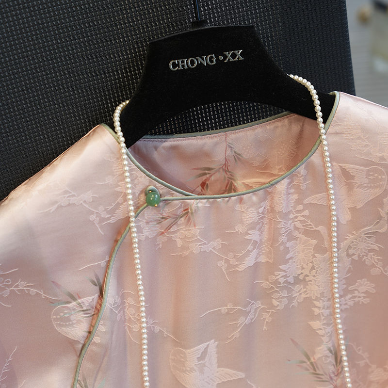 새로운 중국 스타일 국가 스타일 하이 엔드 반팔 소매 셔츠 여자의 2024 여름 새로운 도착 버튼 라운드 넥 티셔츠 탑