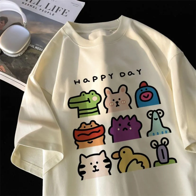 헤비 코튼 홍콩 스타일 트렌디 한 재미 인쇄 반팔 티셔츠 여성의 새로운 여름 Ins 느슨한 올 매치 유행 의류스토어 가기