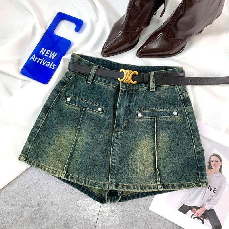 섹시한 스파이스 걸스 울트라 짧은 높은 허리 데님 반바지 여성 여름 2024 레트로 블루 A 라인 스커트 바지 핫 바지스토어 가기